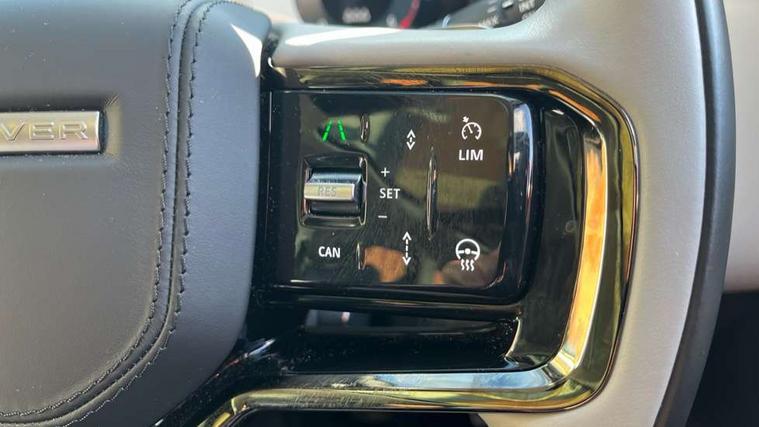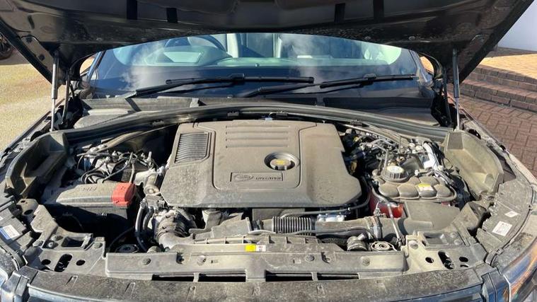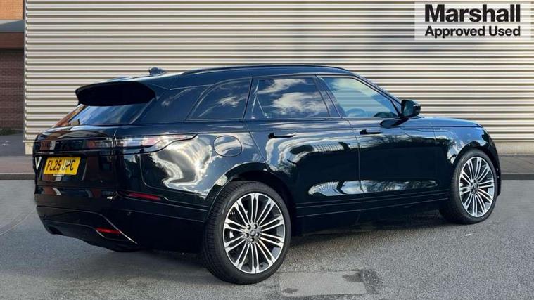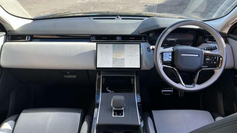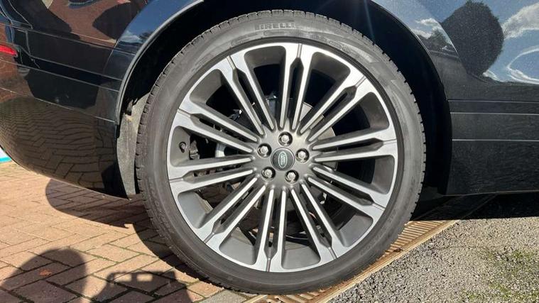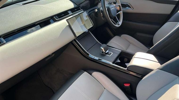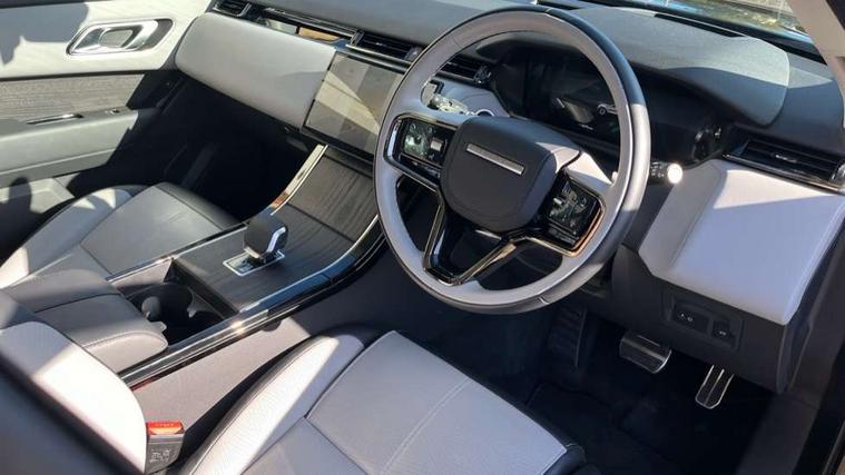 Adaptive cruise control with steering assist, Android Auto, Apple CarPlay, Blind spot assist, Bluetooth connectivity, Brake pad wear indicator warning light, Driver condition monitor, eCall emergency call system, Front and rear parking aid, InControl remote, Land Rover InControl apps, Lane keep assist, Pivi pro with connected navigation, Rear collision monitor, Rear traffic monitor, Service indicator, Speed proportional electronic power assisted steering (EPAS), Traffic sign recognition with adaptive speed limiter, Trip computer, Voice control system, Wireless device charging, 8 speed automatic transmission, Adaptive dynamics, All terrain progress control, Electronic air suspension, Open differential with torque vectoring by braking, Single speed transfer box, DAB radio, Steering wheel mounted controls, 3rd brake light, Acoustic laminated windscreen, Auto dimming interior rear view mirror, Automatic headlamp levelling, Automatic headlights, Body coloured bumpers, Boot protection plate, Electric windows with one touch open/close and anti trap, Flush deployable exterior door handles, Follow me home headlights, Heated rear window with timer, Heated washer jets, Heated windscreen, Metal front tread plates, Metal load space scuff plates, Pixel LED headlights with signature DRL, Power fold, auto-dimming, heated door mirrors with memory and approach lights, Rain sensor windscreen wipers, Rear animated directional indicators, Rear fog lights, Rear side wing doors, Rear wash/wipe, Tailgate/boot lid spoiler, Trailer stability assist, Velar badge, 3 seat bench in 2nd row, Ambient lighting, Bright metal pedals, Carpet mats, Driver/passenger sunvisors with illuminated vanity mirrors, Ebony morzine headlining, Electrically adjustable steering column, Extended leather upgrade, Heated steering wheel, Isofix system on outer rear seats, Loadspace cover, Overhead lighting console, Overhead stowage for sunglasses, Passive front headrests, Rear air vents, Rear centre headrest, Single front passenger seat, Twin front cupholders, Twin sliding front centre armrest, Online pack with data plan - Velar, Power socket pack 2 - Velar, 355mm Front and 325mm Rear brakes, 3x3 point rear seatbelts, Anti-lock braking system (ABS), Cornering brake control, Curtain airbags, Customer configurable autolock, Door side intrusion beams, Driver airbag, DSC - Dynamic Stability Control, Electronic brake force distribution, Electronic parking brake, Electronic traction control, Emergency braking, Front and rear seatbelt reminder, Hill descent control, Hill launch assist, Low traction launch, Passenger airbag, Power operated child locks, Rear airbags, Roll stability control, Side airbags, Tyre pressure monitoring system (TPMS), Global lock and unlock switch on driver door, Immobiliser, Intrusion sensor, Keyless entry, Lock only switch on front passenger door, Locking wheel nuts, Perimetric alarm, Remote central locking, All season tyres,