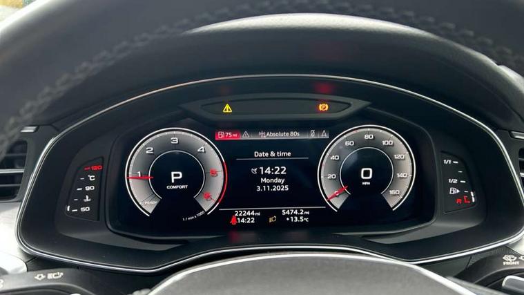 7" high resolution colour driver information display system, Audi connect safety and service (e-call), Audi drive select, Audi parking system plus - acoustic and visual park assist system for front and rear, Audi smartphone interface, Automatic start/stop system with coasting functionality, Bluetooth interface, Electric boot lid release, Lane departure warning system, MMI navigation with MMI touch + twin touch screens 8.8" and 8.6" with haptic and acoustic feedback, Progressive steering, Rear view camera, Service interval indicator, Voice control system, 12V Mild hybrid, 24 litre AdBlue tank, Diesel particulate filter, Quattro on demand, Sports suspension, Audi music interface, Audi sound system, Auxiliary input socket, DAB Digital radio, USB connection, Body coloured door mirrors, Electric front/rear windows, Frameless auto dimming interior rear view mirror, Headlight washers, Heat insulating darkened glass in side and rear windows, Heat insulating glass in windshield, LED rear lights, LED signature front daytime running light, Matrix LED headlights with dynamic rear indicators, Matt black side air intake grille with inlay in matt aluminium, Privacy glass, Radiator grille in titanium black matt, single frame in chrome and horizontal struts in matt aluminium silver, Rain and light sensors, S line air inlet design with inlay in matt aluminium, S Line badge on front fender, S Line front and rear bumpers, S line rear diffuser and grille in matt black with matt aluminium tailpipes, S Line side skirts, Signature rear LED light design, 2 zone deluxe electronic climate control, 4 way electric lumbar support for driver and front passenger, 40/20/40 split folding 3 rear seat bench in 3 parts with rear centre armrest, Black cloth headlining, Electrically adjustable front seats with driver memory, Front centre armrest, Front head restraints, Heated front seats, Height/reach adjust steering wheel, Illuminated door sill trims with S logo, Illuminated sun visors with vanity mirrors, ISOFIX child seat mounting and Top Tether with front passenger airbag deactivation, Leather gear knob, Rear headrests, S line front and rear floor mats with contrast stitching, Stainless steel pedals and foot rest, Tool kit and car jack, LED Interior Ambient Lighting Pack - A6, Non smoking pack - A6, 3 point seatbelts on all seats, Airbags - Front side, front and rear including head, Audi pre-sense front, Black seatbelts, EBD - Electronic brakeforce distribution, Electromechanical parking brake, Electronic Stability Control (ESC) including ABS, ASR and EDL, Extended pedestrian protection measures, Seatbelt monitoring, Tyre pressure warning light, Warning triangle and first aid kit, Anti theft alarm with tow away protection, Anti-theft wheel bolts and wheel loosening detection, Immobiliser, Keyless Go, Remote central locking, Matt brushed aluminium dark inlays,