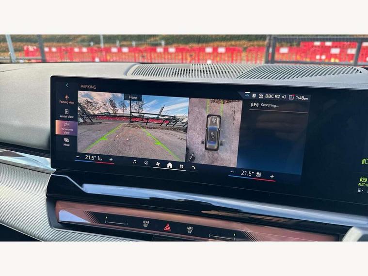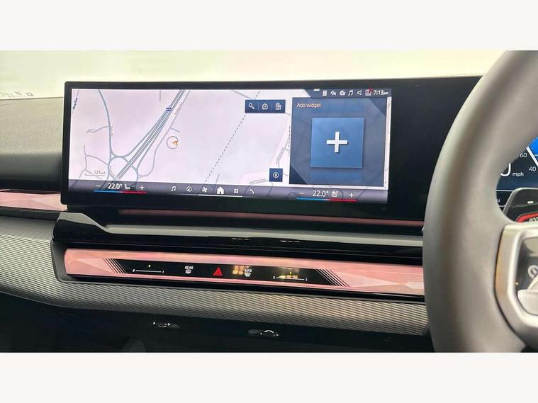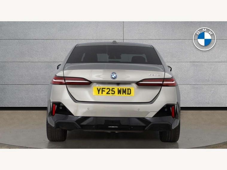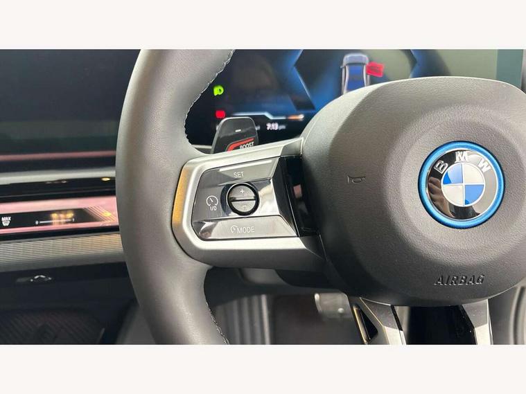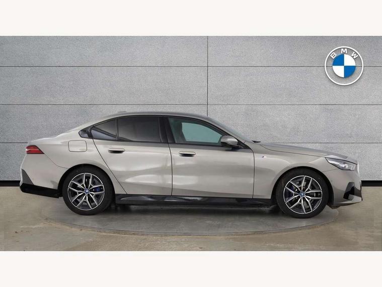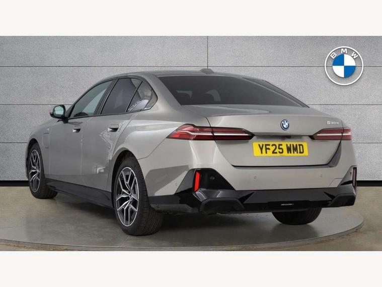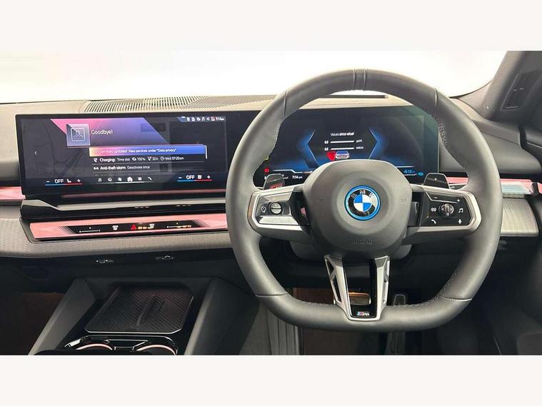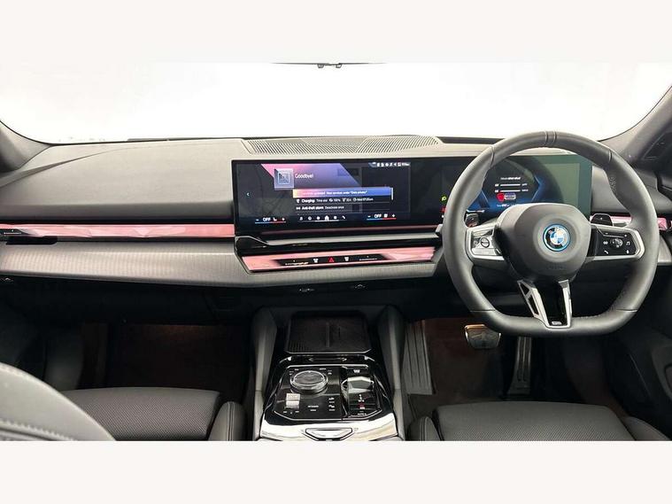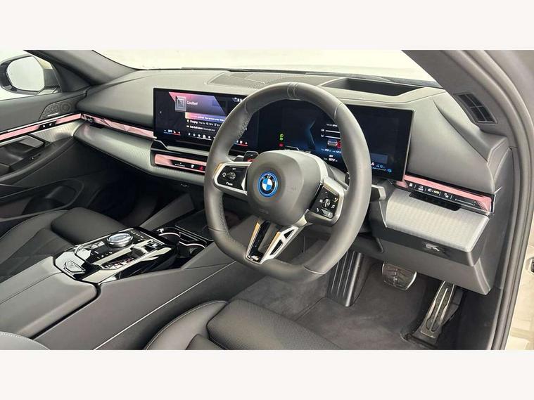 BMW ConnectedDrive online services, BMW Iconic sounds electric, BMW legal emergency call, BMW Teleservices, Brake pad wear indicator, Cruise control with brake assist, Driving Assistant Plus Preparation, Front collision warning with brake intervention, Lane departure warning with active return, Left turn warning with brake function, Multifunctional instrument panel, Oil sensor for level and grade, On board computer inc. average speed, fuel consumption, liquid crystal Info display, journey computer, outside temperature display, personal profile, On-board diagnosis - OBD, PAS, Personal e-SIM, Powered by Operating System 7.0, Run flat indicator, Service interval indicator, Speed limit Info with manual speed limit assist, Stop/start button, 8 speed automatic steptronic transmission with gearshift paddles, AC charging cable professional (mode 3) for public charging, DAB tuner, Acoustic glazing, Adaptive LED Headlights, Automatic cornering lights, Automatic windscreen wipers and automatic headlight, BMW selective beam, Body colour door handles, Body coloured bumpers, Dynamic brake lights with LED technology, Electric adjustable door mirrors, Electric front and rear windows with fingertip open/close + anti-trap facility and comfort closing function, Follow me home headlight function, Headlight elements in blue, Heated windscreen washer jets, LED daytime running lights, LED third brake light, Light colour close to that of ordinary daylight, Optimum, homogeneous illumination of the road, Rear boot, Rear side wing doors, 2 zone automatic air conditioning, 3 seat bench in 2nd row, 3 spoke leather M steering wheel in BMW M specific design with M badge, Armrest - front and rear integrated door trim, centre console includes storage compartment, rear centre includes 2 cupholders, Child seat ISOFIX attachment with rear outer seats includes top tether, Electric adjustable front sports seats, Electric adjustable steering column, Electrically adjustable lumbar support for driver and front passenger, Heated driver and front passenger seats, High-gloss black door switch cluster, power window switch and tailgate button on first and second row seat, M Anthracite headlining, M Sport pedal covers in stainless steel, Rear headrests, Single front passenger seat, Through loading system with 40/20/40 rear seat backrest split, Velour floormats, Wireless charging tray, Ambient lighting pack - 5 Series/I5, Connected package professional - 5 Series/I5, Driving assistance pack - 5 Series/I5, Expanded exterior mirror package - 5 series/I5, M high gloss shadow line pack - 5 Series/ I5, M Sport exterior styling pack - 5 Series/I5, 3 rear three point seatbelts, Active protection, Airbag deployment is controlled with respect to the intensity and scope, Anti-lock braking system (ABS), Brake assist, Brake energy regeneration, Cornering brake control (CBC), Crash sensor activating central locking release, hazard warning lights, fuel cut off and interior lighting, Driver and front passenger airbags, Driver central airbag, Driver/front passenger side airbags, DSC - Dynamic Stability Control, Dynamic brake control, Dynamic Traction Control - DTC, Electromechanical parking brake with automatic drive away release and auto hold function, Electronic brake force distribution, Engine drag torque control, Front and rear brake discs with interior ventilation, Front and rear curtain airbags, Front head restraints with anti-whiplash, Head airbags for first and second row seats, Hill start assist, Locking of doors after driving off, M Sport brakes in dark blue metallic painted brake callipers with M designation, Mechanical child proof lock on rear doors, PC iBrake PostCrash approach control warning with light braking function, Side impact protection, Trailer stability control, Two tone horn, Tyre pressure monitoring system, Warning triangle and first aid kit, Alarm system, Locking wheel bolts including wheel bolt adapter, Tyre repair kit plus,