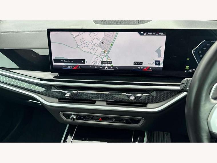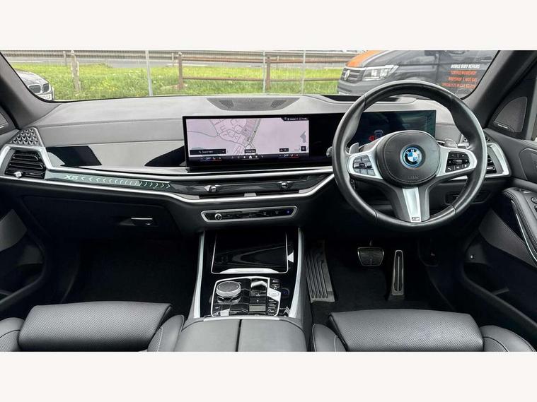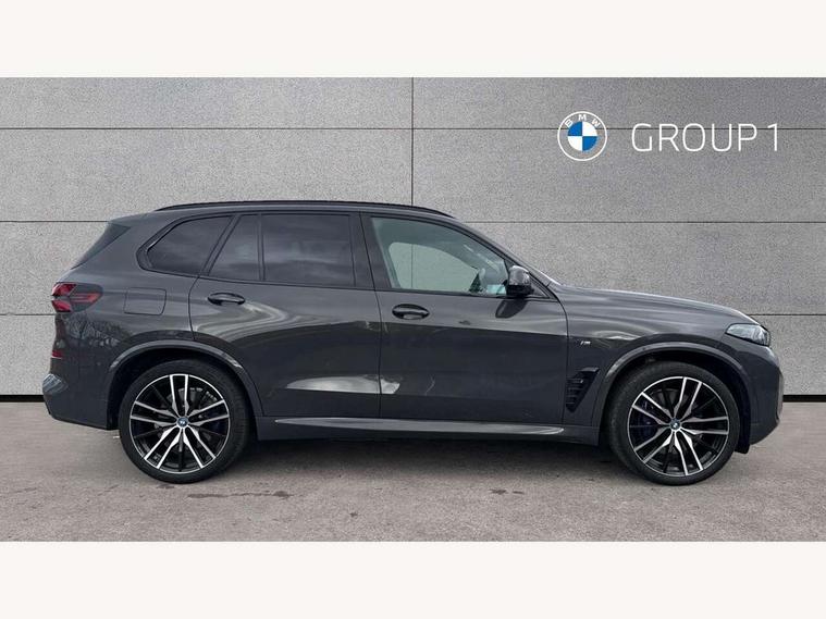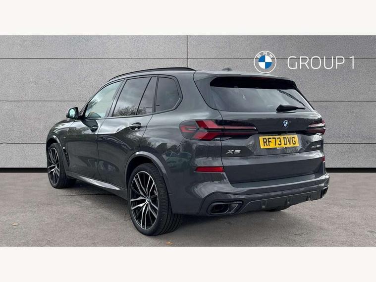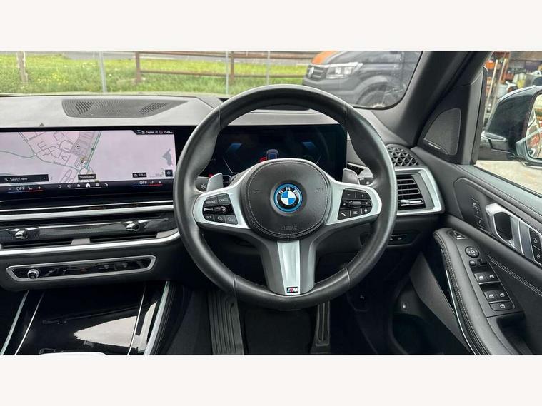 Attentiveness assist, Automatic tailgate operation, BMW ConnectedDrive online services, BMW live cockpit + with curved 12.3 instrument cluster/14.9 central display, nav/Tuner with diversity reception, RDS/4GLTE/remote software upgrade, BMW Teleservices, Condition based service, Cruise control with brake assist, eCall emergency call system, Enhanced bluetooth with wireless charging, Integrated owner's handbook, PAS, Speed limiter, Wi-Fi hotspot, Adaptive 2-axle Front and rear air suspension, Drive performance control with ECO PRO comfort + sport mode, Eight speed steptronic sport automatic transmission and gearshift paddles on the steering wheel, Hi-Fi loudspeaker system, Adaptive LED Headlights, Front and rear electric windows, High beam assistant, High gloss black shadow line roof rails, LED daytime running lights, Rear side wing doors, Third brake light in rear spoiler, Variable intermittent rear wash/wipe, 12V - Power sockets with 2x centre console and 1x luggage compartment, 3 seat bench in 2nd row, Foldable rear centre armrest with 2 cupholders and storage compartment, Front and rear side armrest integrated into door trim, Headrests for all seats, Luggage compartment separating net, Single front passenger seat, Three spoke sport M leather steering wheel, Velour floormats, Ambient light interior pack - X5, Driving assistant pack with radar based driver assistance system - X5, Expanded exterior mirror pack - X5/X5 M, M aerodynamics pack - X5, 3 rear seatbelts, Acoustic protection for pedestrians, Active protection, Airbags - driver/front passenger, rear and side, first and second row seats head airbags, front passenger seat airbag deactivation + knee airbag, Anti-lock braking system (ABS), Automatic Stability Control (ASC), Brake energy regeneration, Cornering brake control (CBC), Crash sensor activating central locking release, hazard warning lights, fuel cut off, interior lighting + activation of safety battery terminal clamp, DSC - Dynamic Stability Control, Dynamic Traction Control - DTC, Electromechanical parking brake with automatic drive away release and auto hold function, Electronic brake force distribution, Hill start assistant, M Sport blue painted brake calipers with 'M' designation, Mechanical child proof lock on rear doors, Tyre pressure monitoring system, Tyre pressure sensors, Ventilated front and rear disc brakes, Warning triangle and first aid kit, Closing system with central locking, Comfort access system, Locking wheel bolts, Sensatec instrument panel,