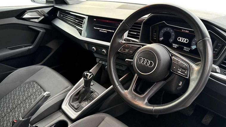 10.25" Digital instrument cluster display screen, Audi connect safety emergency and service including E-call, Audi drive select, Audi smartphone interface, Automatic start/stop system, Bluetooth interface, Driver's information system, Electromechanical power steering, Lane departure warning system, Service interval indicator, Speed limiter, Voice control system, Washer fluid level indicator, Dynamic suspension, 1 x SDXC card reader, 1 x USB type C and 1 USB type A charging points, Audi music interface, Bluetooth audio streaming, DAB Digital radio, MMI radio plus with 8.8" colour MMI display screen and MMI touch, Auto dimming rear view mirror, Body coloured bumpers, Body coloured door mirrors, Electric front and rear windows, Front side air inlets in grained matt black and C frame in titanium black, Heat insulating glass windscreen and side windows, Heated rear windscreen, LED headlights with LED rear lights + dynamic rear indicators, Radiator grille in matt titanium black, Radiator protective grille frame in matt aluminium silver, Rain and light sensors, Rear fog lights, Rear wiper, Side front spoiler lips in grained matt black, Titanium black matt diffuser, 12V socket in centre console with two cup holders, 3 rear seats, Door sills trims with aluminium inlays, Driver and passenger seat with manual height adjust with forward and backwards adjustment, Front head restraints, Front/rear floor mats, Height and reach adjustable steering wheel, Illuminated glovebox, ISOFIX child seat mounting in front passenger and rear outer seats, Leather gear knob with aluminium trim, Leatherette handbrake grip, Luggage compartment light with front and rear reading lights, Lumbar adjustment for front seats, Novum cloth upholstery with front sport seats, Rear head restraints, Split folding rear seats, Titanium grey cloth headlining, 3x3 point rear seatbelts, Audi pre-sense front with pedestrain and cyclist recognition, Brake assist function, Driver and front passenger airbag with front side and head airbags, Electronic Stability Control including ABS, EBD, ASR and EDL, Front and rear seatbelt reminder, Front passenger airbag deactivation switch, Hill hold assist, Seatbelt height adjustment for front seats, Seatbelt monitoring, Tyre pressure warning light, Warning triangle and first aid kit, Anti theft alarm, Anti theft wheel bolts and loose wheel warning, Immobiliser, Remote central locking with 2 remote folding keys, Aluminium trim for control switches, air vents and digital instrument cluster, Silver grey accent areas including air vents, door handle recesses and centre console in diamond paint finish, Slate grey inlays polygon structure in fine paint finish,