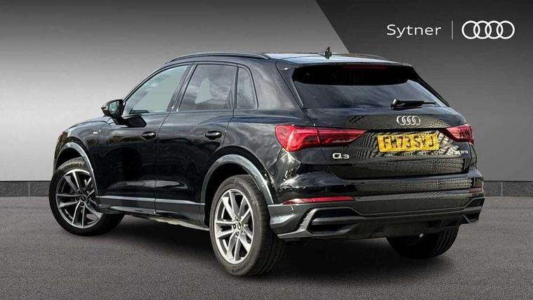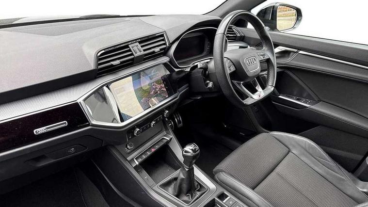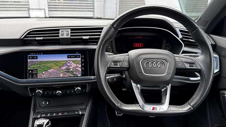 Amazon alexa Integration, Audi drive select, Audi lane departure warning, Audi Virtual Cockpit - 10.25" display, Bluetooth interface, Camera based traffic sign recognition, Cruise control + speed limiter, Legal emergency call, MMI Navigation Plus with high resolution 10.1 inch touchscreen colour display, Power operated tailgate, Progressive steering, Rear parking sensors, Service interval indicator, Smartphone interface includes wireless Apple carplay/Android Auto, Start stop system with recuperation, Voice control system with natural language interaction, Sports suspension, 2 USB-C ports with charge and data functions, 6 passive loudspeakers, DAB digital radio module, Acoustic windscreen, Auto dimming frameless rear view mirror, Black roof rails, Electrically folding, adjustable and heated door mirrors with integrated LED side indicators and kerb view function for passenger side, Front and rear electric windows, Front fog lights, Grille vertical bars in aluminium silver/Matt, High gloss black finish B and C pillars, LED Dynamic rear indicators, LED headlights with LED daytime running lights, LED rear lights, LED third brake light, Privacy glass dark tinted rear and rear-side windows (from B-pillar backwards), Rain and light sensors, Rear diffuser grille in grained matt black, Rear diffuser strip in matt anthracite black, Rear side wing doors, Rear wiper, S line bumpers in contrasting Manhattan grey, Variable front intermittent wipers, 12V socket in rear centre console, 3 seat bench in 2nd row, 3 spoke flat bottomed multi-function leather sport steering wheel, 40:20:40 folding with manual adjustment for 60:40 forwards/backwards position and backrest angle, Adjustable rear seat bench/backrest with centre armrest and cupholder, Black cloth headlining, Dual zone electronic climate control, Front and rear black floor mats with contrast stitching in rock grey, Front and rear headrests, Front and rear roof module including reading lights, Front centre armrest, Glove compartment lighting, Height and reach adjustable steering wheel, Illuminated door sill trims with S logo, ISOFIX child seat mounting for front passenger with airbag deactivation and outer rear seat including top tether attachment point for outer rear seats, Luggage compartment light, Manual front seats with height adjustment, Perforated leather gearknob, Single front passenger seat, Stainless steel luggage compartment sill finisher, Stainless steel pedals, Ambient lighting pack - Q3, Black styling pack - Q3, Non smoking pack - Q3, 3x3 point rear seatbelts, 6 airbags - Driver, front passenger, curtain and side windows, Audi pre-sense front with pedestrain and cyclist recognition, Electrically operated child locks on rear doors, Electromechanical parking brake, Electronic stabilisation control including ABS, ASR and EDL, Front seatbelt reminder, Hill descent control, Hill hold assist, Pre sense basic, Seatbelt monitoring, Tyre pressure warning, Warning triangle and first aid kit, Anti theft alarm, Anti theft wheel bolts, Immobiliser, Remote central locking, Aluminium look interior elements, Detail dashboard around MMI touch colour display in glass look, black with surround in aluminium look, Leatherette door armrest, Piano black inlay, 19" 5 twin arm design diamond cut audi sport alloy wheels in matt grey look,