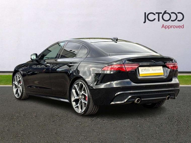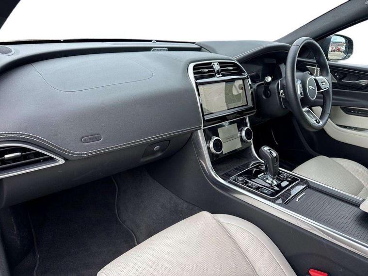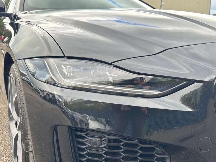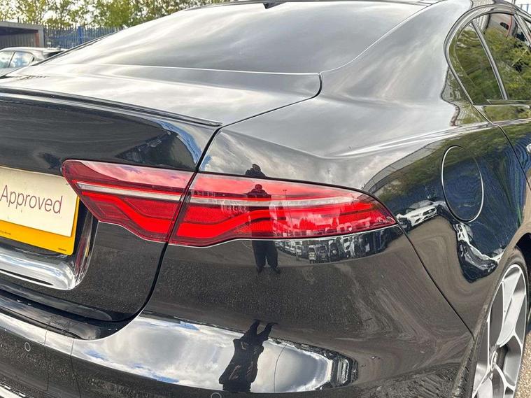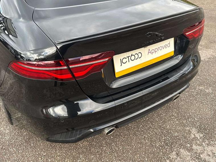 Adaptive cruise control, Android Auto, Apple car play, Blind spot assist, Bluetooth connectivity, Driver condition monitor, E-call, Electric power assisted steering (EPAS), Front and rear parking aid, InControl remote premium, Jaguar drive control adaptive surface response, Lane keep assist, Navigation pro system, Outside temperature gauge, Powered tailgate/boot lid, Pro services and wifi hotspot, Push button starter, Rear collision monitor, Rear traffic monitor, Service interval indicator, Speed proportional steering, Traffic sign recognition with adaptive speed limiter, Trip computer, Voice control system, Adaptive dynamics, Configurable dynamics, DAB digital audio broadcast, Dynamic volume control, InControl apps, InControl protect, Pivi pro connected, Animated directional indicators, Approach lamps, Automatic headlamps, Automatic headlight levelling, Body colour bumpers, Body colour front and rear bumper inserts, Electric heated/power fold memory door mirrors with approach lights and auto dimming driver side, Electric windows with one touch open/close and anti-trap, Grained black lower mesh, Green tinted heat insulating glass, Heated rear windscreen, Heated windscreen + heated windscreen washer jets, Jaguar script and leaper, Privacy glass, Rain sensing windscreen wipers, Rear boot, Rear side wing doors, Tailgate/boot lid spoiler, Third brake light, Trailer stability assist, Variable front intermittent wipers, 12V socket in front and rear, 3 rear seats, 40:20:40 folding rear seats with centre armrest, Bright metal pedals, Chrome seat switches, Ebony morzine headlining, Electrically adjustable steering column, Front and rear reading lights, Front centre armrest with storage compartment, Front passenger seat, Heated steering wheel, Illuminated glovebox, Illuminated trunk, Interior front door handles with separate locking switches, Isofix child seat mountings in rear, Leather steering wheel, Lockable glovebox, Luggage tie-down hooks, Passive front headrests, Premium carpet mats, Rear air vents, Rear head restraints, Satin chrome gearshift paddles, Shopping hook in boot, Sliding cover on front cupholder, Storage space in front and rear doors, Sunvisors with illuminated vanity mirrors, Twin front cupholders, Two zone climate control, Black exterior pack with side sills - XE, Online pack with data plan - XE, 355mm front brakes and 325mm rear brakes, ABS, All surface progress control (ASPC), Brake pad warning light, DSC - Dynamic Stability Control, Emergency braking, Front airbags with passenger seat occupant detector, Front and rear seatbelt reminder, Front side airbags, Full length side window curtain airbag, Hill start assist, Pedestrian contact sensing and deployable bonnet, Power child locks, Three 3 point rear seatbelts, Torque vectoring brake, Traction control, Tyre pressure monitoring system, Driver's central locking switch, Immobiliser, Keyless entry, Locking wheel nuts, Perimeter alarm, Remote central locking with deadlocks and drive-away locking, Smart key start system, Reduced section alloy spare wheel,