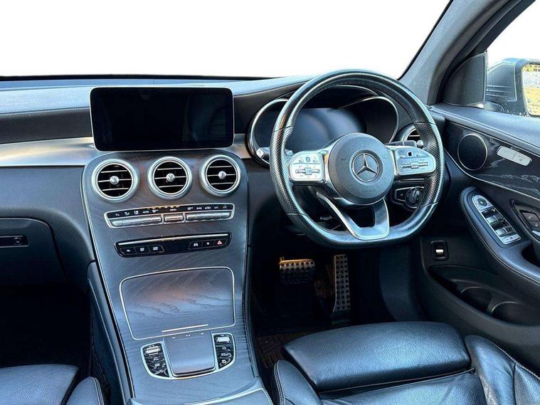 Active parking assist with parktronic system, Attention assist, Bluetooth interface for hands free telephone, Collision prevention assist plus, DYNAMIC SELECT with a choice of driving modes (ECO, Comfort, Sport, Sport+ and Individual), Easy pack automatic powered tailgate, ECO start/stop function, Hard disk navigation, Hey Mercedes Voice activation, Instrument cluster with12.3-inch digital instrument cluster display. High resolution instrument cluster screen with choice of three display styles, MBUX augmented reality for navigation, MBUX Interior assistant, Mercedes connect me with remote online services, Multi function trip computer, Outside temperature display, rear seatbelt status indicator, Remote boot release, Reversing camera, Service indicator (ASSYST), Smartphone integration with Apple CarPlay and Android auto, Traffic sign assist, Wireless charging, 4MATIC permanent four wheel drive, 50 litre fuel tank, 9G TRONIC plus automatic transmission with steering column gear selector, DIRECT SELECT steering wheel gearshift paddles, Diesel particulate filter, Sports suspension tuned for improved handling and driving dynamics, DAB Digital radio, MBUX multimedia system with DAB digital radio and touchpad including satellite navigation, Media display 10.25-inch touchscreen display, Mercedes Benz sound system (225w) includes mid-range sound system, Pre installation for Mercedes Benz Link, USB ports x 2 in centre console, Adaptive brake lights, AMG bodystyling - AMG front apron with sporty air intakes and chrome trim element, AMG diffuser-look rear apron with insert in black, Body colour door mirrors, Body coloured bumpers, Electric windows one touch open/close, Electrically adjustable and heated door mirrors, Front and rear exterior chrome trim, Headlamp assist automatic headlamp activation, LED tail lamp, Multi beam LED headlamps with 84 indiviually control LED, daytime running lamps, Active Light, cornering light, enhanced fog lamp, adaptive Highbeam Assist, Privacy glass with dark glass from B pillar backwards, Radiator diamond grille, Rain sensor windscreen wipers, Range adjustable headlights, Rear wiper, Running boards, Tinted glass all round with single layer safety glass, Two chrome plated tailpipe trim elements, 2 way rear head restraints, 3-spoke multifunction AMG steering wheel in black nappa leather with flattened bottom section, chrome inserts and perforated leather in grip area, 40:20:40 split folding rear seats, Ambient lighting, AMG floor mats with edging and embroidered AMG lettering, AMG sports seats, Automatic child seat recognition sensor, Black roof lining, Dividing net - rear, Double cup holder in centre console, Front armrest with storage box, Front door sills with Mercedes Benz lettering, Front head restraints, Front seats with electric adjust (backrest, height and seat cushion inclination) with 4 way electric lumbar support and manual cushion depth adjust, Heated front seats, Height/reach adjustable steering column, Illuminated and lockable glove compartment, Leather upholstery, Rear top tether child seat ISOFIX attachment, Sports pedals with stainless steel surfaces and rubber studs, Steering wheel with touch control buttons, THERMATIC automatic climate control, Easy-pack load compartment cover, Interior lighting pack - GLC, Mirror pack - GLC, Storage pack - GLC, 3 rear 3 point seatbelts, Active bonnet, Adaptive brake system with HOLD function and brake drying in the wet, ASR, Black seat belts, Brake calipers with Mercedes-Benz lettering + perforated brake discs, Child proof door locks, Dual-stage airbags - driver and front passenger, driver knee bag and window bags for driver, front passenger and rear passengers, Electronic parking brake, Electronic stability programme (ESP) with curve dynamic assist and cross wind assist, Front and rear seatbelt reminder, Front passenger seat occupancy sensor, Hill hold function, Tyre pressure monitoring system, Warning triangle and first aid kit, Alarm system/interior protection/immobiliser, Automatic door locking, KEYLESS-GO starting function, Remote central locking, Open pore black ash wood trim,