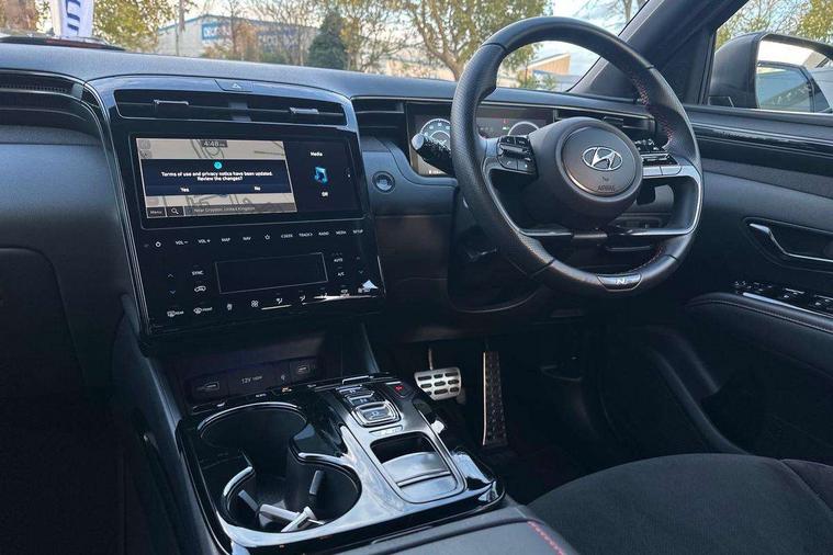 10.25" super vision instrument cluster, 10.25" touchscreen satellite navigation with mapcare and live services, Apple car play/Android Auto, Bluetooth system, Digital clock, Drive mode selector, Driver attention warning, E-call, Emergency stop signalling system, Forward Collision Avoidance Assist (FCA) - Car, Pedestrian and Cycle, Front and rear parking sensors, Intelligent speed limit assist, Lane follow assist, Lane keep assist, PAS, Rev counter, Reversing camera, Roll over sensor, Tailgate open warning light, Trip computer, Trip odometer, Voice recognition, Water temperature gauge, Windscreen washer fluid sensor and warning indicator, Wireless phone charging pad, 2 front and 2 rear speakers with 2 tweeters, DAB Digital radio, Steering wheel mounted audio/phone controls, USB connections in front and rear, Adjustable intermittent front windscreen wipers with aero wiper blade, Auto dimming rear view mirror, Automatic defog system, Automatic headlights with dusk sensor, Automatic windscreen wipers with rain sensor, Black headlamp bezels, Body colour bumpers, Body colour door mirrors with integrated indicators, Body colour exterior door handles, Body coloured wheel arches, Dark chrome effect radiator grille, Electrically adjustable, heated and power folding door mirrors, Follow me home headlights, Front and rear electric windows with anti-trap mechanism and one touch control, Front fog lights, Gloss black door frame moulding, High beam assist, High level third brake light, LED daytime running lights, LED rear lights, MFR - LED headlight with static bending light, N Line body coloured side mouldings, N Line design front grille, N Line Exclusive front and rear bumpers, N Line rear spoiler with fins, Positioning Lights - LED, Privacy glass - Rear windows and tailgate, Rear side wing doors, Rear wash/wipe with intermittent wipe setting, Roof rails, Silver front and rear skid plate, Sports twin tip exhaust and diffuser, Tinted glass with windscreen shade band, Trailer stability assist, 12V power outlets in front console and luggage compartment, 3 seat bench in 2nd row, 40/20/40 split folding rear seat, Adjustable head restraints (Up and down), Alloy pedals, Ambient lighting, Black headliner, Cupholders in rear armrest, Door courtesy lights, Driver and passenger sunvisors with illuminated LED vanity mirrors, Driver's seat electric lumbar support, Driver's seat manual height adjust, Dual zone climate control, Front and rear door pockets, Front armrest with storage box, Front door pocket bottle holders, Front passenger seat lumbar adjustment, Heated front seats, Height/reach adjustable steering column, Illuminated/air conditioned glove compartment, ISOFIX child seat anchorage points attached on outer rear seats, Leather wrapped steering wheel, Leather/suede upholstery, Luggage area underfloor compartment, Luggage compartment lighting, Luggage cover, Luggage hooks, Manual height adjustable front passenger seat, Map and reading lights, N Line logo on steering wheel, Retractable load cover, Single front passenger seat, Sunglasses holder, 3x3 point rear seatbelts, Active bonnet, Airbag - Front, front side, curtain and centre front airbags, Anti-lock brake system (ABS), Brake assist function, Childproof rear door locks, Downhill brake control, Electric parking brake with auto hold function, Electronic stability control, Front and rear seatbelt reminder, Front passenger airbag deactivation switch, Front seatbelt pretensioners, Hill start assist control (HAC), Multi-Collision braking, Outer rear seatbelt height adjustment, Seatbelt height adjustment for front seats, Traction control, Tyre pressure monitoring system with individual tyre pressure display - TPMS, Alarm, Deadlocks, Immobiliser, Locking wheel nuts, Remote control central locking, Smart key with keyless entry and engine start/stop button, Speed sensitive auto door locking, 19" Alloy wheels, Tyre repair kit,