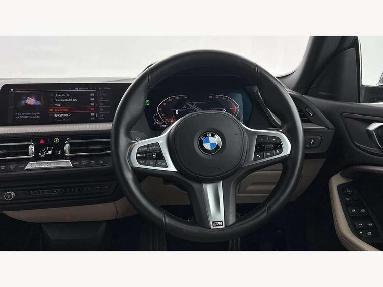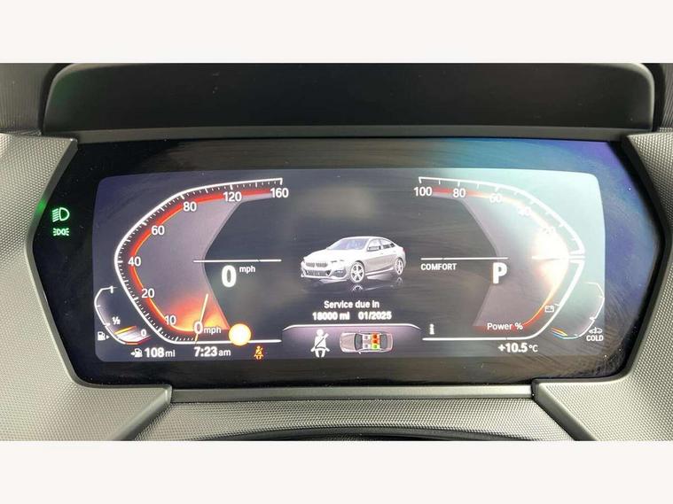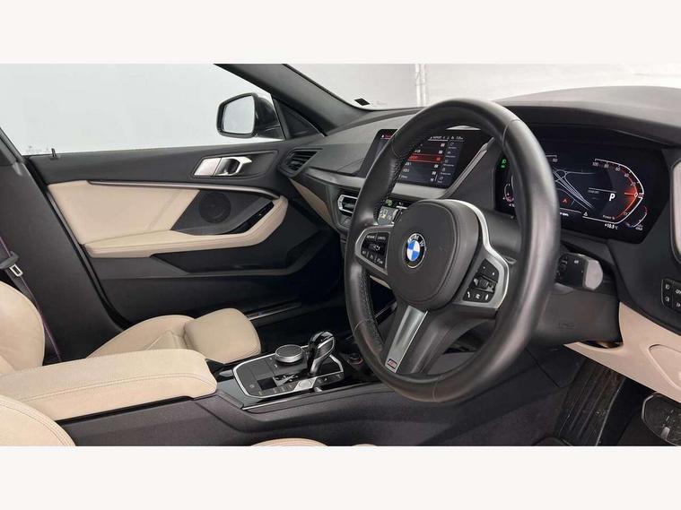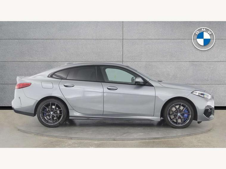 Active guard plus, Attentiveness assist, Auto start-stop, Bluetooth hands free facility with USB audio interface + WiFi interface for wireless connection of mobile terminal devices + audio streaming, BMW Intelligent Personal Assistant, BMW Live Cockpit Professional with 10.25" high resolution instrument and control display, BMW Online services, BMW operating system with 7.0 mid interface, BMW Teleservices, Check Control warning system for monitoring of lights and door/luggage compartment open warning, Cruise control with braking function, iDrive controller with 7 short cut favourite buttons on centre console, Integrated navigation data with map data via USB +features such as 3D landmarks and micro city models, Integrated owners handbook, Intelligent voice assistant, Lane departure warning system, M Sports steering, On board computer - average speed+fuel consumption, service interval, clock/date, odometer/trip meter, outside temperature display and ice warning, Optimum shift indicator, Personal Profile, Pull away assistant, Speed limiting function, Aluminium lightweight construction, Balancer shaft, Double VANOS, Drive performance control with ECO PRO comfort + sport mode, Dual clutch automatic transmission, Electronic differential lock, High precision injection, M Sport suspension with stiffer spring/damper set-up and vehicle lowered by 10mm + twin tube gasfilled shock absorbers and Anti roll bars, Performance Control, Petrol Particulate Filter, VALVETRONIC engine management, 2x USB Type C ports (for charging and data transfer), 4G LTE Connectivity with hard wied 4G network sim card, DAB digital radio, MP3 players and RDS double tuner, Automatically dimming rear view mirror, Body colour door handles, Body colour mirror caps, Chrome 'M' logo side designation, Chrome exhaust single tailpipe, round, Direction indicator side lights integrated exterior mirrors, Electric windows - front and rear, with open/close fingertip control and trap release, Exterior mirrors - electrically folding with anti-dazzle, Fading support, Follow me home headlights, Front and rear bumper system with replaceable deformation elements, Front door sill finishers in black plastic with M designation in metallic look, Heated, electrically adjustable exterior mirror aspheric on driver side, convex on passenger side, High gloss black B pillar finish, High gloss shadow line exterior trim, High level third brake light, LED daytime running lights, LED front fog lights, Lightweight engineering, Model designation on right side of tailgate, Preparation for high beam assistant, Rain sensor with automatic headlight activation, Rear boot, Rear fog lights, Rear side wing doors, Reversing light in rear light cluster, Welcome lighting, 12V power socket in centre console, 2 cupholders in front centre console, 3 rear seat head restraints, 3 rear seats, 3 spoke M sports design leather steering wheel finished in nappa leather with specific M badge, Anthracite finished floor mats with contrasting surround, Anthracite headlining, Automatic two zone climate control air conditioning, Child seat ISOFIX attachment for two outer rear seats and front passenger seat with anchorage points, Conditioned based service, Driver and front passenger seat heating, Front and rear door pockets including bottle trays, Front and rear side armrests integrated into door trim, Front armrest foldable with integrated storage compartment, Front centre interior light over interior mirror and rear centre automatic interior light when door is opened/ignition switched off or via remote key, Front head restraints, Front passenger seat, Front sports seats with electric side bolster adjustment, Glove compartment, Glovebox with light, Luggage compartment lighting, Manually adjustment steering wheel column, Multi-function controls for steering wheel, Sun visors with vanity mirrors and insert tab, Through loading system with 40/20/40 split folding rear seat, Two lashing eyes, Additional interior lighting pack - 2 Series Gran Coupe, Connected pack professional - 2 Series Gran Coupe, Extended storage pack - 2 Series Gran Coupe, M Sport exterior styling aerodynamics pack - 2 Series Gran Coupe, 2 tone horn, Airbag - Front driver and passenger, front and rear head, front side, curtain head protection, manual deactivation of front passenger airbag possible, Anti lock braking system (ABS) with cornering brake control, BMW emergency call, Brake drying, Braking readiness, City braking function, Crash sensor activating of airbags, Unlocking doors, hazard warning lights, interior light, safety battery terminal, Dynamic stability control + (DSC+), Dynamic Traction Control - DTC, Electrically operated hand brake, Rear brake discs, Rear child proof door locks, Seat belt security check for driver and front passenger, Seatbelt warning, Side impact protection, Three point seat belts on all seats including front belt stopper, pyrotechnic belt tensioners and belt force limiters, Trailer stability control, Tyre pressure monitoring system, Ventilated front disc brakes, Warning triangle and first aid kit, Central locking switch for all doors, fuel filler cap and luggage compartment, Deadlocking function system to all doors, Drive away locking system on all doors and luggage compartment, Locking wheel bolts, Start/Stop button (illuminated) in centre console with keyless engine start and Auto Start-Stop deactivation button, Thatcham Cat.1 alarm and immobiliser, Two remote control key with integrated key - open/close doors/fuel flap/tailgate +1 button for unlock compartment with M design high gloss black inlay, Contrast stitching on instrument panel, 18" Burnished M double spoke bi-colour alloy wheels finished in orbit grey - style 819M, Reduced rolling resistance tyres,