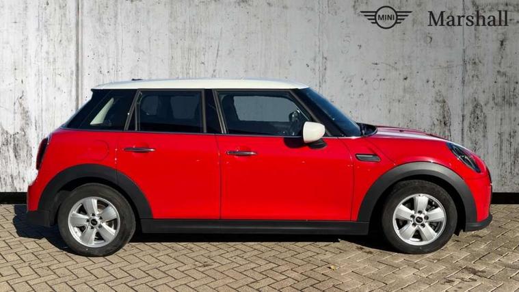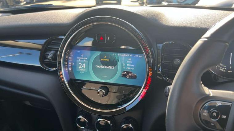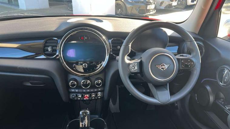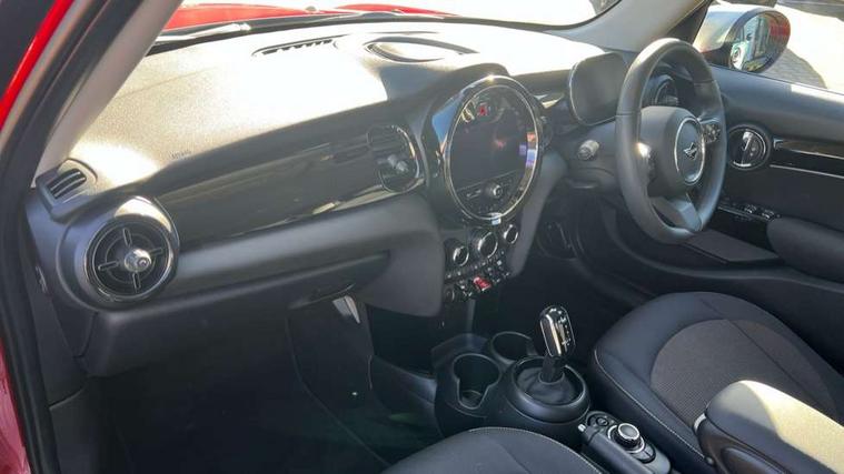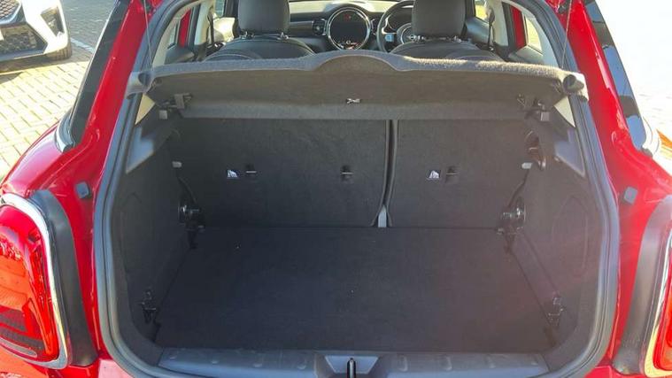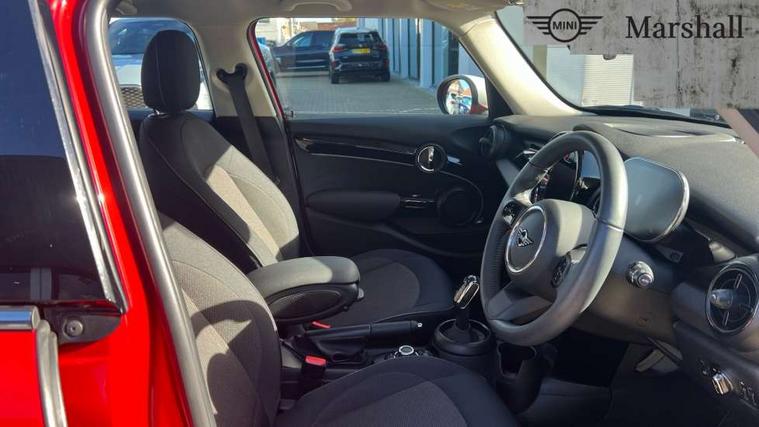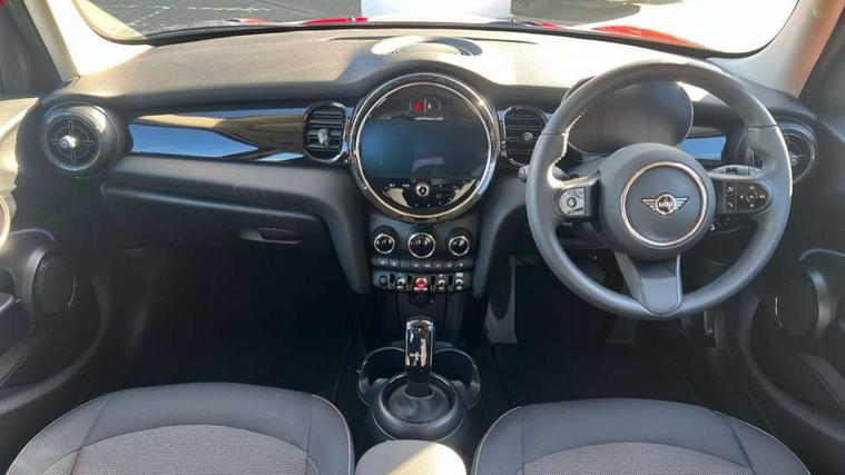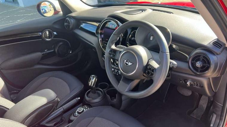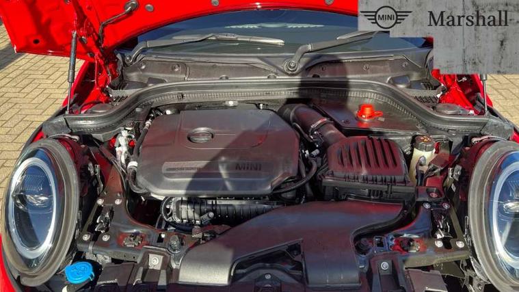 Apple CarPlay, Automatic start/stop function with brake energy recuperation, Compatible mobile phone bluetooth with audio streaming, Electro-mechanical speed dependant steering assistance, Flexible car sharing preparation, Mini E-call, MINI TeleServices, On board computer, Service interval indicator, Double Vanos system, Fully variable valve control, Gear change indicator display, High precision injection, Performance Control, Steptronic transmission with double clutch, 8.8" touchscreen with LED ring, FM tuner and DAB digital radio, 3rd brake light, Automatic headlight activation switch, Body colour fuel filler cap, Chrome border high gloss black slats radiator grille, Dynamic brake lights, Electric front+rear windows, Exhaust tailpipe on left with chrome finisher, Heated rear window, Heated windscreen washer jets, Metal door sill strips with MINI imprint, Model logo Cooper on right of tailgate, Rain sensor window wipers, Rear fog lights, Rear LED lights with union jack design, Rear side wing doors, Rear window wiper, Side scuttle panel with integrated indicator, Sun/heat protection glass, White indicator lenses, 12V Accessory socket in centre console, 3 seat bench in 2nd row, 4 lashing eyes in luggage compartment, 60/40 split folding rear seat, Ambient lighting, Carbon black colour line - Knee roll and door armrest, Chrome interior highlights, Cupholders, Front and rear head restraints, Front and rear isofix with front passenger airbag deactivation, Front and rear velour floor mats, Glove compartment, Height and length steering column adjustment, Interior lighting with 12 different colours across the dashboard, underneath door bezel with illuminated laser-engraved design on central display, Leatherette gearshift lever and handbrake gaiters, LED reading lights, vanity mirror lights, front foot well light and spotlight on front seats, Mechanical seat adjustment - forward/back & backrest for front seats and driver seat height adjust, Multifunction steering wheel, Satellite grey headlining including grab handles and clothes hooks, Single front passenger seat, Sport leather steering wheel with speed limiter and audio/communication controls, Storage compartments in doors, Sunvisors with vanity mirrors, 3 point seatbelts on all five seats, 6 Airbags - front, side, head and seat belt tensioners, Anti-lock braking system (ABS), Child locks on rear doors, DSC - Dynamic Stability Control, Front and rear disc brakes, Hill start assist, Single tone fanfare horn, Tyre pressure monitoring system, Alarm system with tilt sensor, monitoring doors, bonnet interior and tailgate, Electronic vehicle immobiliser, Start/stop toggle with keyless go, Piano black interior trim, Tool kit, Tyre repair kit,
