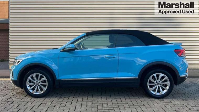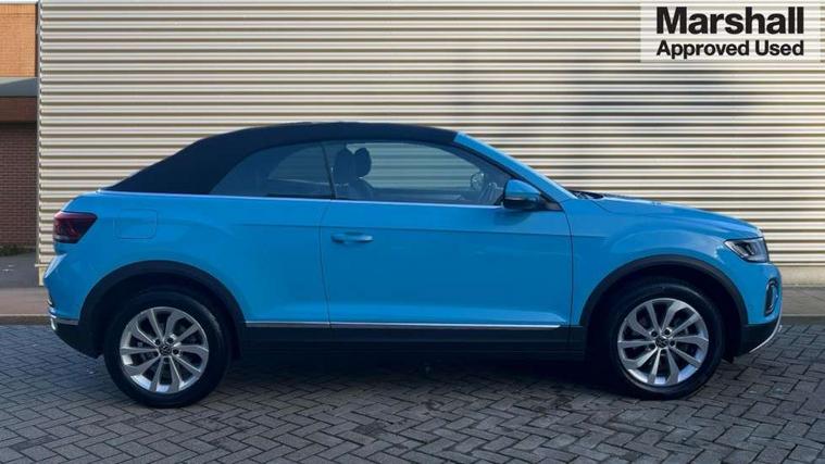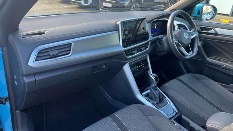Adaptive cruise control and speed limiter, Bluetooth mobile phone interface, Brake pad wear indicator, Car information display, Driver alert system with fatigue detection, Driver tips and journey analysis, Emergency call service, Modified key software - reduce switch off time for key status change to Long no motion, Multifunction computer with visual gear change recommendation for fuel consumption, Multifunction front facing camera, Park assist including front and rear parking sensors, Speedo and rev counter, electronic odometer, trip, service interval display and exterior temperature gauge, Start/stop system with brake energy recovery, Tailgate/trunk lid release from outside, Warning sound and light for front seatbelts unfastened, Diversity antenna for FM reception, Music playback - MP3, WMA and AAC files, SMS functionality - read, compose and send SMS messages using touch-screen display, Title and cover art display, USB-C Interface and USB charging socket, We Connect and We Connect Plus functionality, Ambient lighting with logo projection, Auto dimming interior rear view mirror, Automatic hazard lights activation under emergency braking, Automatic headlight control with LED separate daytime running lights with coming/leaving home function, Black roof, Body colour door handles, Body colour rear spoiler, Body coloured bumpers and radiator grille with chrome trim and front fog lamps with chrome bezel, Chrome effect left and right trapezoid exhaust tailpipe fascia surround, Dark red rear combination lamps in LED technology, Dusk sensor, Exterior mirrors aspherical on driver side, convex on front passenger side, Headlight range control, Heat insulating glass windscreen, High level 3rd brake light, LED Headlights, LED rear number plate lights, Power operated canvas convertible top, Power windows with comfort operation and circuit breaker, Rain sensor, Rear boot, Rear exhaust tailpipe, Rear fog light on one side and reversing lights on both sides, Remote electrically foldable door mirrors, puddle lights and reverse activated passenger door mirror, Volkswagen roundel, Windscreen wiper with intermittent wipe light, Without exterior ambient lighting, 12V socket in centre console storage area, 2 LED front reading lights, 2 seat bench in 2nd row, 50:50 Split folding rear seat backrests with fixed rear seat bench, Air care climatronic air conditoning system with active combination filter and 2-zone temperature control, Black door lower parts with chrome trim, Chrome plated surround to light, mirror and window switch, Door and side trim panel with leatherette insert, Easy entry backrest release, Front and rear carpet mats with black stitching, Front centre armrest, Front cupholders x 2, Front door pockets, Front seat back storage pockets, Heated multi function steering wheel, Height/reach adjust steering wheel, Instrument lighting, white adjustable panel illumination, Interior light delay, Interior light in footwell, Interior lighting with switch off delay and contact switches on all doors, Interior white ambient lighting and surround lighting, Isofix child seat preparation, Lockable glove compartment with light, Luggage compartment lighting, Rear head restraints, Single front passenger seat, Sun visors with illuminated vanity mirrors, Driver assistance pack without proactive passenger protection - T-Roc cabriolet, 2 x 3-point seatbelts/outer rear seats with ECE label, Driver and front passenger airbag with front passenger airbag deactivation, Driver and front passenger safety-optimised head restraints, Drivers seatbelt reminder, Electronic parking brake, Electronic Stability Control (ESC) including ABS, ASR and EDL, Front and rear disc brakes, Front assist with autonomous emergency braking, Pedestrian monitoring, Predictive pedestrian protection, Rigid safety cell with front and rear crumple zones, Side airbag/thorax airbag system, for front passengers, Single tone horn, Three point height adjust front seatbelts + pretensioners, Tyre pressure loss indicator, Volkswagen roadside assistance, Anti-theft alarm system with interior protection and central locking system with SAFELOCK, radio remote control and 2 remote control folding keys, Electronic engine immobiliser, Trims for alloy wheels,