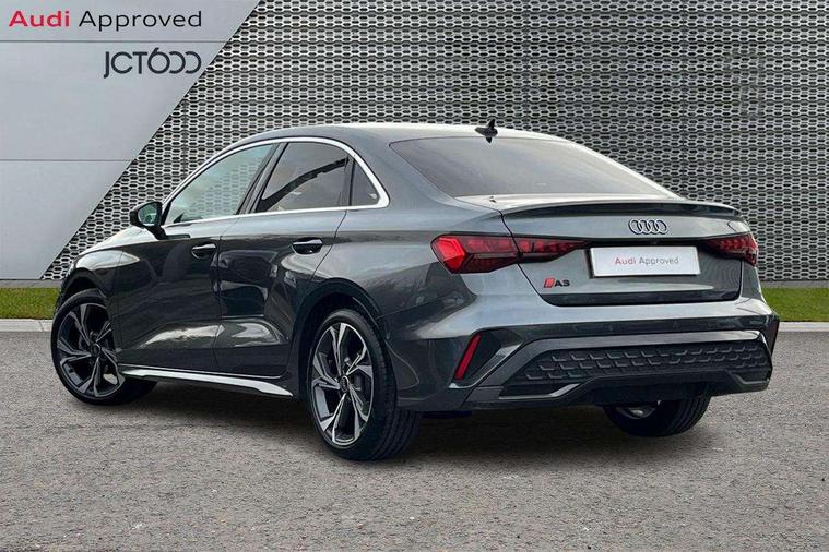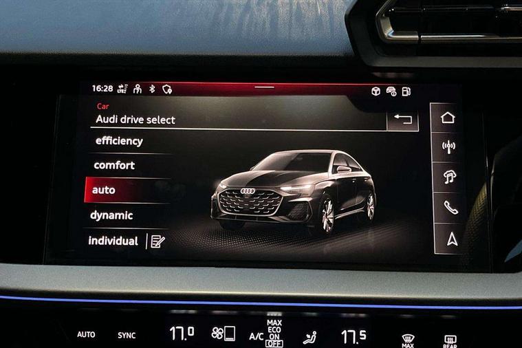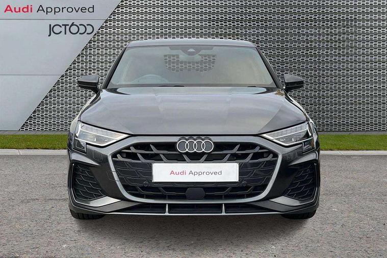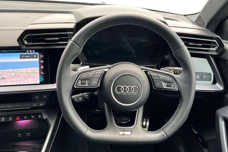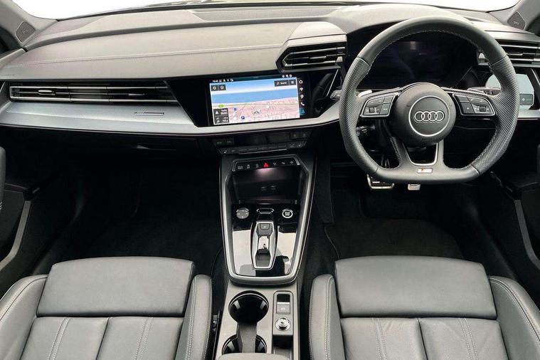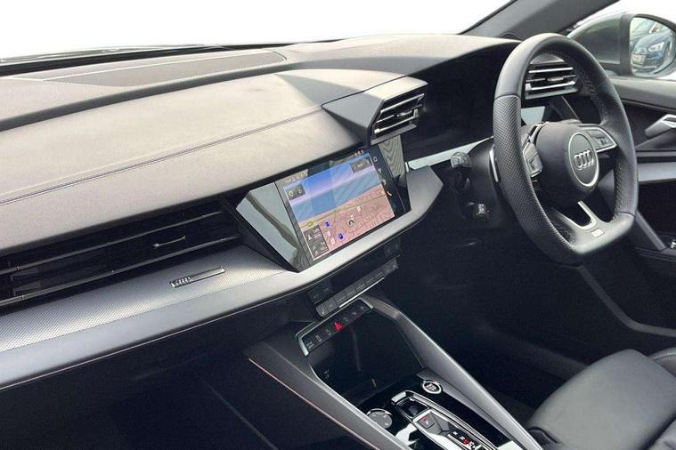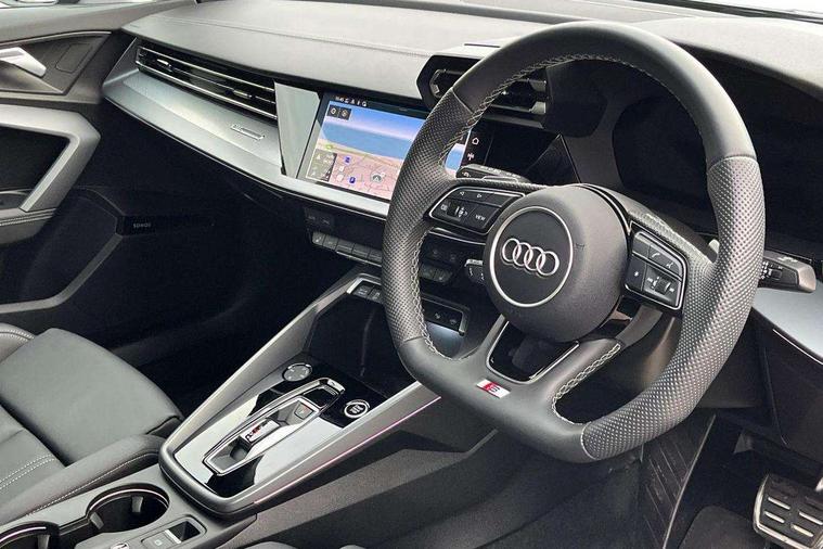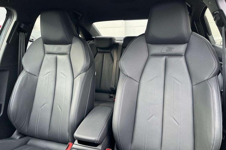 Adjustable speed limiter, Audi drive select, Audi smartphone interface with app store includes wireless Apple carplay, Android auto and Amazon alexa integration, Audi virtual cockpit plus - 12.3" full HD resolution dynamic digital instrument cluster, Automatic start/stop system with recuperation, Bluetooth interface, Camera based traffic sign recognition, Collision avoidance assistant, Cruise control, Distraction and Fatigue warning, e-Call (emergency call), Electromechanical power speed sensitive steering, Lane departure warning system, MMI Navigation Plus with high resolution 10.1" colour touch screen display, Park Assist with parking system Plus, Service indicator, Trip computer, Voice control system with natural language interaction, Sports suspension, Audi Phonebox light with wireless charging, Audi sound system - 10 loudspeakers including centre loudspeaker and subwoofer, DAB Digital radio, USB ports with charging function in the rear, Acoustic glass windscreen, Aluminium window trim, Auto dimming frameless rear view mirror, Body colour exterior mirrors, Chrome exhaust tailpipes, Electrically adjustable/heated/folding/auto dimming door mirrors with integrated LED indications + kerb view function for passenger side, Exterior model badging, Front and rear side air inlets in grained matt black with dark liquid chrome frame, Front electric windows, Front radiator grill in high gloss dark chrome, Heat insulating glass windscreen, Illuminated door sills with aluminium inserts at the front with S logo, LED 3rd brake light, LED daytime running lights, LED headlights with LED rear lights and dynamic rear indicators, Light and rain sensors, Privacy glass - dark tinted rear window, rear door and side windows, Rear boot, Rear diffuser and grill in grained matt black with inlay in dark liquid chrome, Rear electric windows, Rear side wing doors, S line bumpers, Side S line emblems on front wings, Side sill trim in dark liquid chrome, 12V socket and storage compartment in front centre console, 3 seat bench in 2nd row, 3 spoke flat bottomed leather multifunction sport steering wheel with gear shift paddles, 3-zone deluxe automatic air conditioning, 4 way electrically adjustable lumbar support for driver and front passenger, 40/20/40 split folding rear seat bench, Black cloth headlining, Front and rear centre armrest in artificial leather, Front and rear headrests, Front/rear floor mats, Heated front seats, Height and reach adjustable steering wheel, Manual boot compartment lid, Manually adjustable front seats, S badging on the steering wheel, Seat side bolsters, Single front passenger seat, Stainless steel pedals and front footrest in black, Twin leather upholstery with front sports seats S embossed logo, Aluminium interior elements pack - A3, Multi-coloured LED interior lighting package - A3, 3x3 point rear seat belts, Driver and front passenger airbag with passenger airbag deactivation, Electronic Stabilisation Control (ESC) including ABS, ASR and EDL, First aid kit with warning triangle and 2 safety vests, Front side airbags with head airbags and interaction airbag, Hill hold assist, Pre-sense front with pedestrian and cyclist detection, Seatbelt monitoring, Tyre pressure loss indicator, Anti theft alarm, Anti-theft wheel bolts, Electronically operated child locks, Immobiliser, Remote control central locking, Dash & door Inlay in dark aluminium Spectrum,