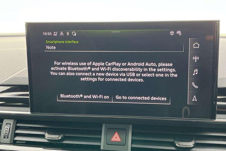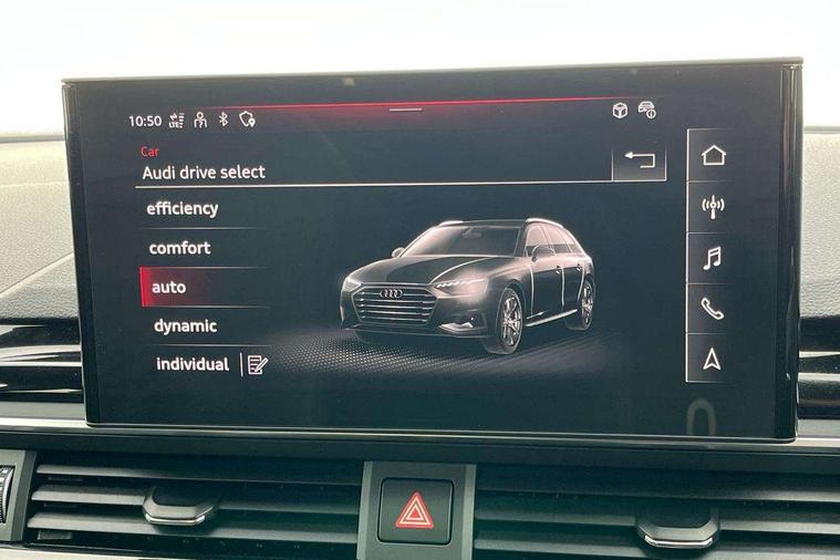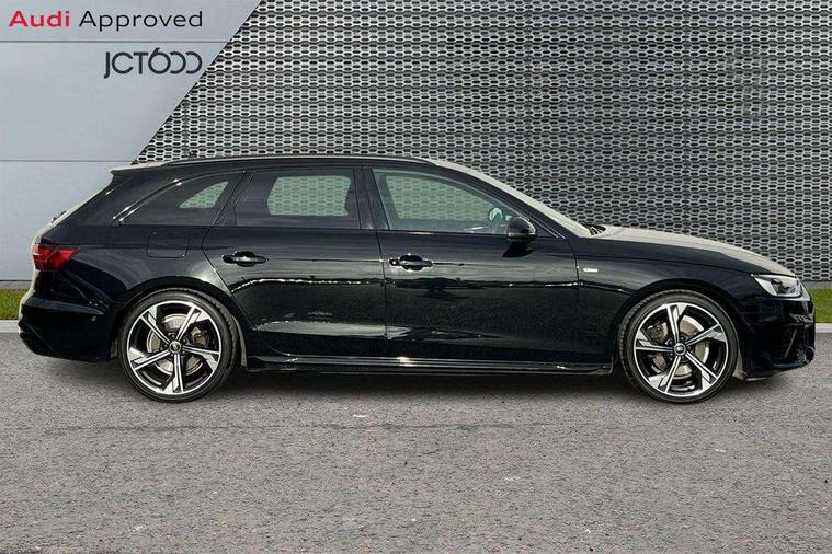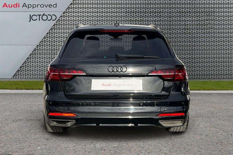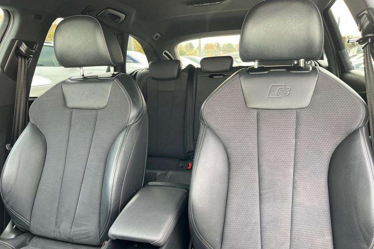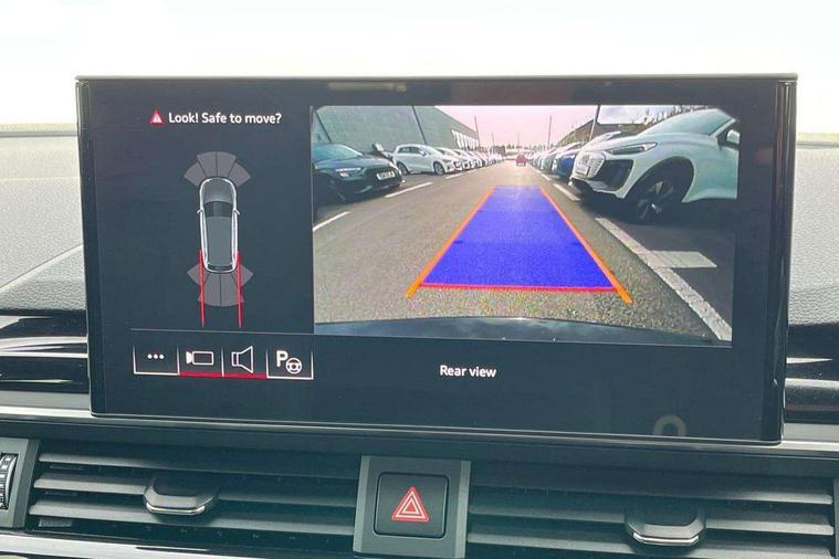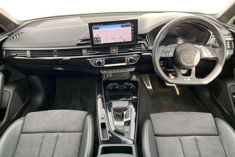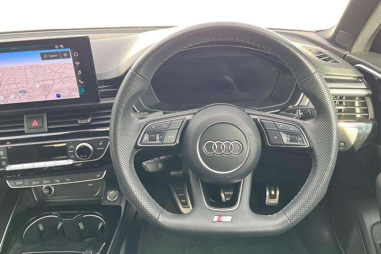 Audi connect safety and service (e-call), Audi drive select, Audi smartphone interface, Audi virtual cockpit, Automatic start-stop system with coasting functionality and efficiency programme, Bluetooth interface, Camera based traffic sign recognition, Electromechanical power steering, Email, calendar and text messages displayed via MMI, Front and rear parking sensors, Lane departure warning, MMI Navigation plus with MMI touch includes 10.1" high resolution colour MMI display, 3D map, Power operated tailgate, Rear view camera, Voice control system, Sports suspension lowered by 23mm, 2 USB charging ports, 8 passive loudspeakers, DAB digital radio reception, Audi beam uses LEDs to project the audi logo onto the ground as you exit your A4, Auto dimming rear view mirror, Black Audi rings and black badging (model name in black badging, no engine badging), Body colour door handles, Body colour front spoiler lip, Body colour side sill trim, Electric adjustable/heated/folding door mirrors with auto dimming, Exhaust tailpipes in high dark chrome, Grained matt black side air inlets with matt aluminium silver inlay, High beam assistant, High gloss black B pillar trims and triangular rear door trim, LED headlights with LED rear lights + dynamic rear indicators + headlight adjustment and high beam, turning light + LED daytime running lights, LED third brake light, Privacy glass, Rain and light sensors, Rear diffuser in matt black with trim strip in matt aluminium silver, Rear side wing doors, Rear wiper, RS4 rear spoiler in body colour, S Line roof edge spoiler, Sport front and rear bumpers with side skirts, Variable intermittent front wash/wipe, Windscreen with acoustic glazing, 4 way electric lumbar support for driver and front passenger, 40/20/40 split folding 3 rear seat bench in 3 parts with rear centre armrest, Black carpets, Black cloth headlining, Black perforated leather gearknob, Contrast stitching on seats, steering wheel and gear lever gaiter, Deluxe 3 zone electronic climate control, Electric load area cover, Front and rear head restraints, Front centre armrest, Heated front seats, Illuminated door sill trims with S logo, ISOFIX child seat mounting and top tether, Manual seat adjustment, Single front passenger seat, Stainless steel pedals and foot rest, Black styling pack - A4 Avant, LED Interior light pack - A4/S4, 3 rear seatbelts, 6 airbags - Driver, front passenger, curtain and side windows, Attention and drowsiness assist, Electronic Stabilisation Control (ESC) including ABS, ASR and EDL, Hill hold assist, Multi collision brake assist, Pop-up bonnet for pedestrian protection, Pre sense city, Rear door child safety locks, Seatbelt monitoring, Warning triangle and first aid kit, Anti theft alarm, Anti theft wheel bolts, Central locking, Keyless Go, Piano black finish inlay, Tool kit, Tyre repair kit,