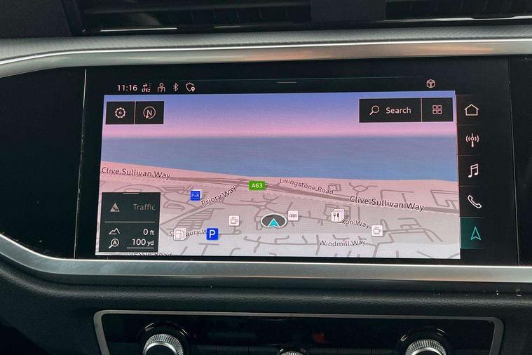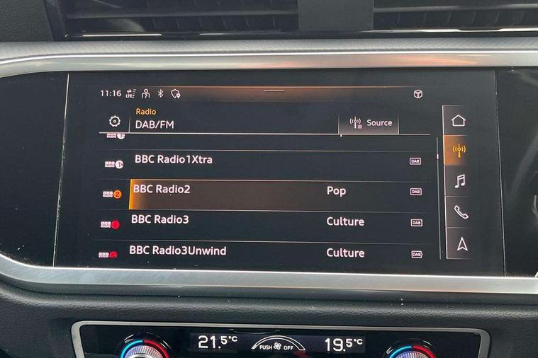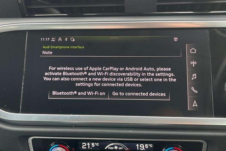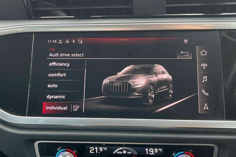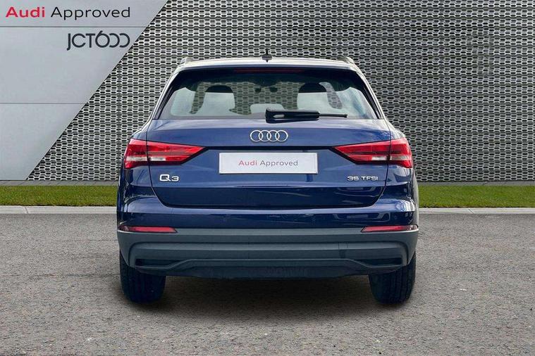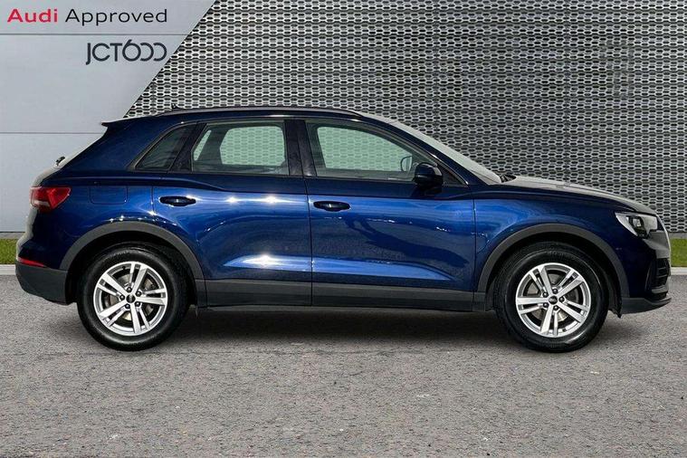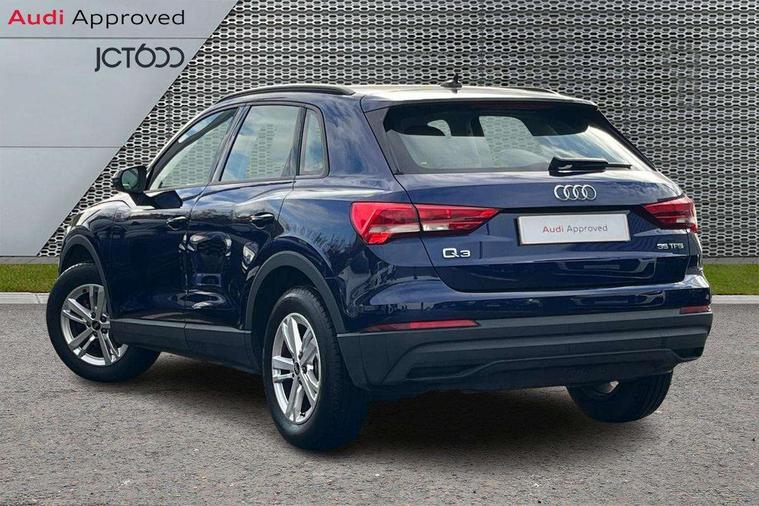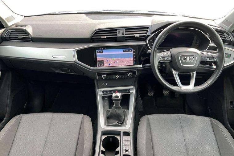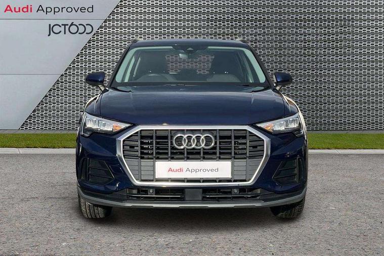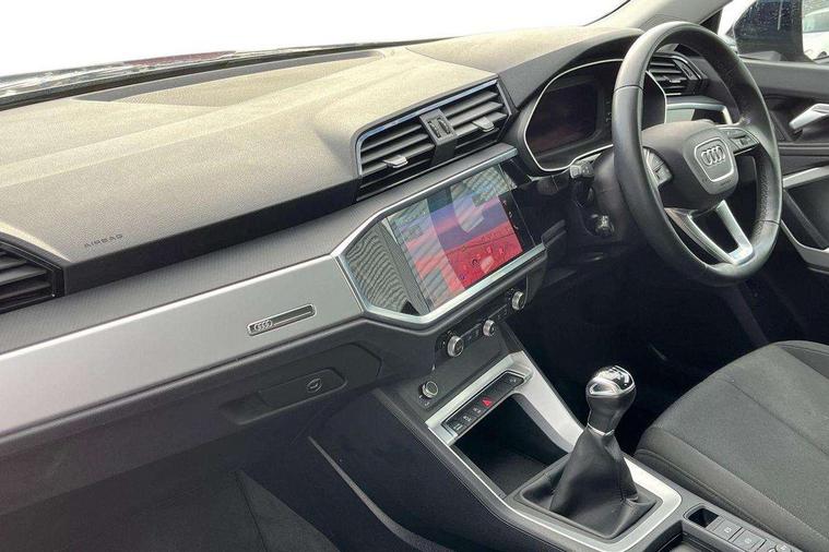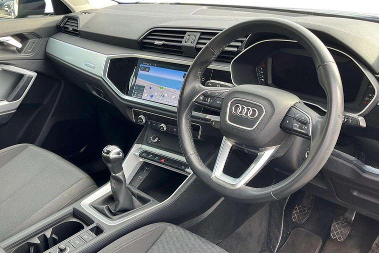 Amazon alexa Integration, Audi connect safety and service (e-call), Audi drive select, Audi lane departure warning, Audi Virtual Cockpit - 10.25" display, Bluetooth interface, Camera based traffic sign recognition, Cruise control + speed limiter, MMI Navigation Plus with high resolution 10.1 inch touchscreen colour display, Power operated tailgate, Progressive steering, Rear parking sensors, Service interval indicator, Smartphone interface includes wireless Apple carplay/Android Auto, Start stop system with recuperation, Voice control system with natural language interaction, Standard suspension, 2 USB-C ports with charge and data functions, 6 passive loudspeakers, DAB digital radio module, Acoustic windscreen, Auto dimming frameless rear view mirror, Black roof rails, Body colour door mirrors, Diffuser in grained anthracite, Electrically folding, adjustable and heated door mirrors with integrated LED side indicators and kerb view function for passenger side, Exterior bumper with wheel arch trims and side sill trims in grained black matt, Front and rear electric windows, Grained radiator protective grille, Halogen rear lights, LED headlights with LED daytime running lights, Rain and light sensors, 12V socket in rear centre console, 3 spoke multi-function leather steering wheel, 40:20:40 folding with manual adjustment for 60:40 forwards/backwards position and backrest angle, Dual zone electronic climate control, Front and rear floor mats, Front and rear headrests, Front and rear roof module including reading lights, Front centre armrest, Glove compartment lighting, Height and reach adjustable steering wheel, ISOFIX child seat mounting for front passenger with airbag deactivation and outer rear seat including top tether attachment point for outer rear seats, Luggage compartment light, Lunar silver cloth headlining, Manual front seats with height adjustment, Stainless steel luggage compartment sill finisher, Non smoking pack - Q3, 3x3 point rear seatbelts, 6 airbags - Driver, front passenger, curtain and side windows, Audi pre-sense front with pedestrain and cyclist recognition, Electrically operated child locks on rear doors, Electromechanical parking brake, Electronic stabilisation control including ABS, ASR and EDL, Hill descent control, Hill hold assist, Pre sense basic, Seatbelt monitoring, Tyre pressure warning, Warning triangle and first aid kit, Anti theft alarm, Anti theft wheel bolts, Remote central locking, Detail dashboard around MMI touch colour display in glass look, black with surround in aluminium look, Micrometallic silver inlay, 17" 5 twin spoke design alloy wheels,