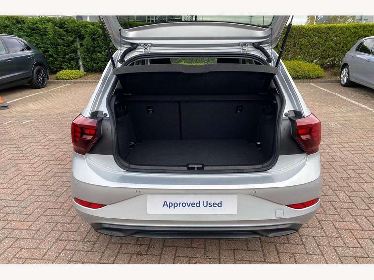 Advanced driver attention and drowsiness monitor, Bluetooth mobile phone interface, Dynamic road sign display, Emergency call service, Mobile phone preparation with inductive charging function, Multifunction front facing camera for distance control, Power assisted speed sensitive steering, Predictive adaptive cruise control without follow-to-stop and speed limiter, Preparation for navigation system with media and internet package, Preparation for We connect and We connect plus, Rear view camera, Speedo and rev counter, electronic odometer, trip, service interval display and exterior temperature gauge, Standard rear axle, Travel Assist - Lane keeping system and traffic jam assist, Travel assist including emergency assist, Trip computer, Warning signal and warning light for front and rear seatbelts not fastened, Washer fluid level indicator, Wireless app connect, Front wheel drive, Rear shock absorpion, Start-stop system with battery regeneration (recuperation - energy recovery during braking), DAB Digital radio, Diversity antenna for FM reception, Automatic dimming interior rear view mirror, Automatic headlight control with LED separate daytime running lights with coming/leaving home function, Body colour bumpers with chrome inserts, Body colour door handles, Body colour door mirrors, Electric front windows, Engine badge deletion, Headlight range adjustment, Heat insulating and laminated safety glass windshield, LED Headlights, LED rear combination lamps, Power folding adjustable/heated exterior mirrors and front passenger exterior mirror lowering function, Rain sensor, Rear electric windows, Rear fog light, Rear side wing doors, Rear tinted glass from B-pillar backwards approx 65% tinted, Rear windscreen washer and wiper with interval delay, Third brake light, 12V power socket in centre console, 2 front and 2 rear reading lights with switch off delay and dimmer, 2 USB-C ports in the front, 2 USB-C charging sockets on the center console in the rear, 3 rear head restraints, 60/40 split folding rear seat and rear seat bench not split, Ceramique roof lining, Chrome plated radiator grille inserts, air vent surrounds and light switch surrounds, Door and side trim panel, Driver and front passenger seat height adjustment, Driver/passenger sunvisors with illuminated vanity mirrors, Front centre armrest, Front seat backrest storage pockets, Front standard seats, Handbrake lever handle in leather, Hartley/Thomas cloth upholstery, Headliner in recycled material, Isofix child seat preparation easy-fit (for two outer rear seats, and front passenger seat) compatible with I-size, Leather trimmed gear knob, Luggage compartment cover, Luggage compartment lighting, Removable luggage compartment floor, Single front passenger seat, Standard climatic zones, Standard pedal cluster, Three spoke leather wrapped multifunction steering wheel with shifting paddles, Light and vision pack - Polo, 3 point height adj front seatbelts + pretensioners, 3 point seat belt for centre rear seat, 3 point seatbelts, outer rear with ECE lable, ABS, Driver and front passenger airbag with front passenger airbag deactivation, Drivers and front passengers safety optimised head restraints, ESC (Electronic stability control) + EDL (Electronic Differntial lock) and ASR (Traction control), Extended and predictive pedestrian/ cyclist protection, Front assist with autonomous emergency braking (for Adaptive Cruise Control ACC up to 130 mph), Front curtain and side airbags with center airbag, Front disc brakes, Hill hold control, Manual child lock in rear doors, Rear drum brakes, Single tone horn, Tyre pressure loss indicator, Alarm with interior protection, Anti-theft alarm system with interior monitoring, backup horn, and towing protection, Anti-theft wheel bolts, Electronic engine immobiliser, Lava stone black gloss/matt decorative inserts in dash and front door panels, 16" Torsby alloy wheels, Low rolling resistance tyres,