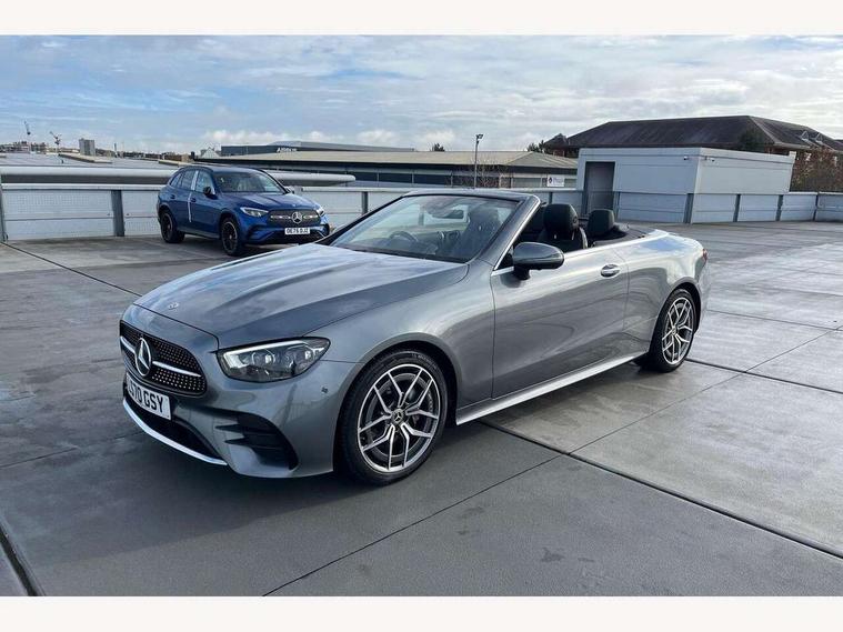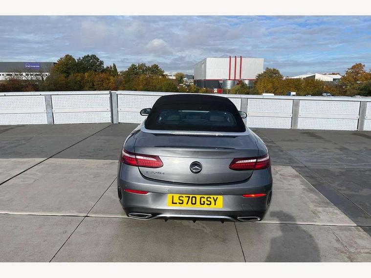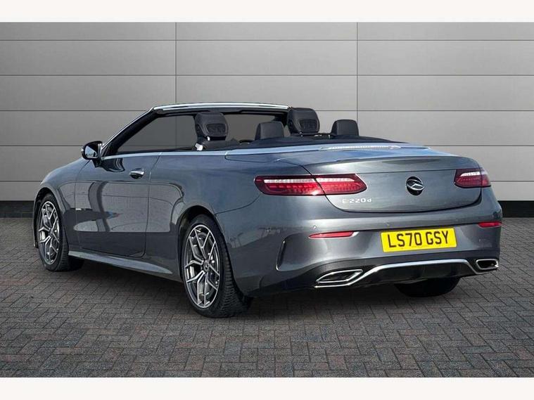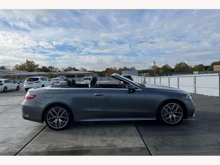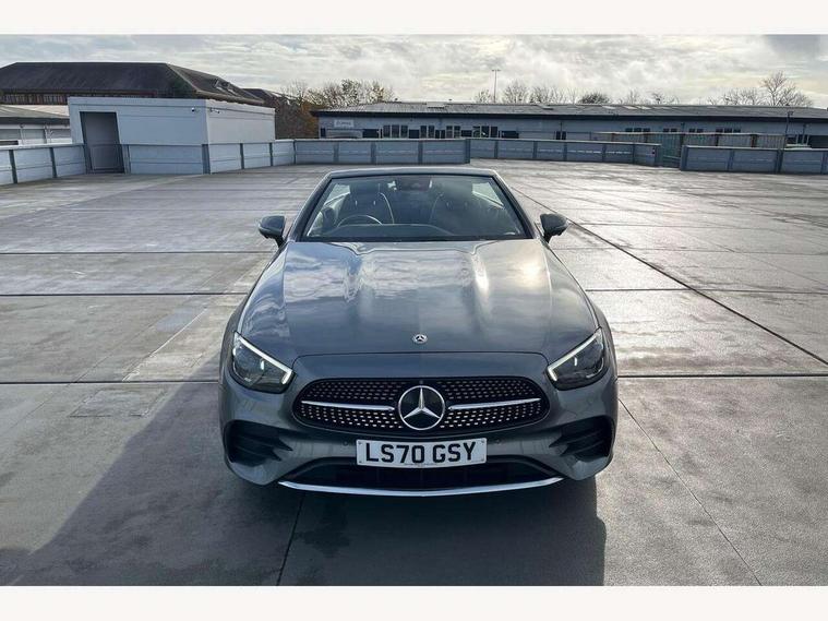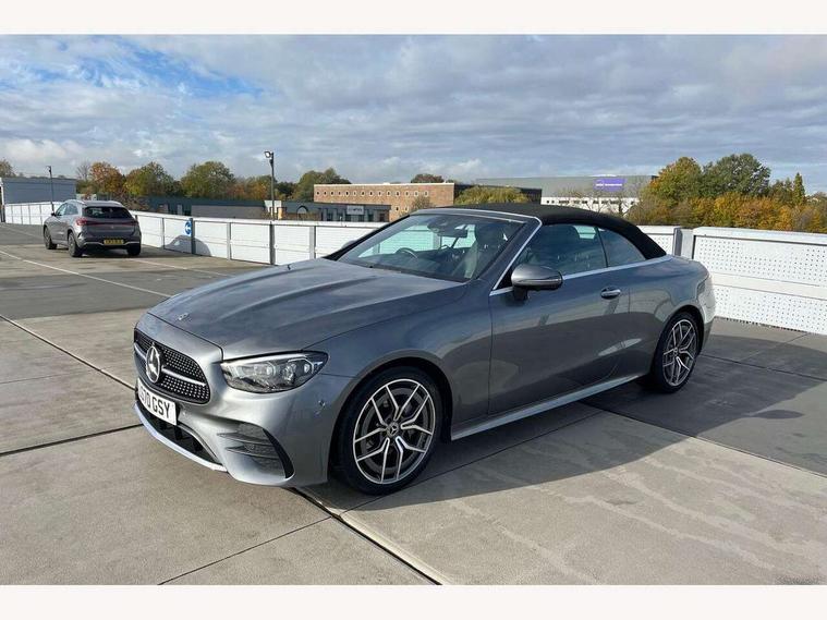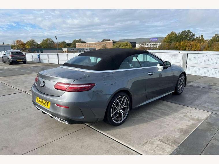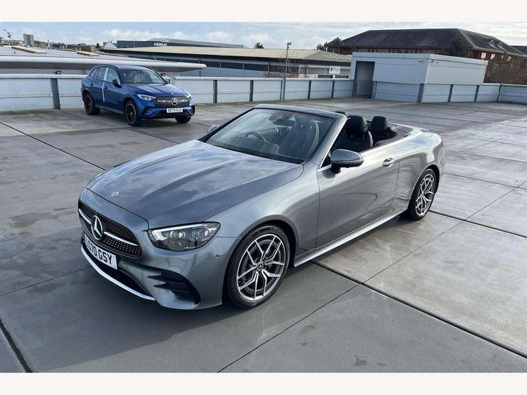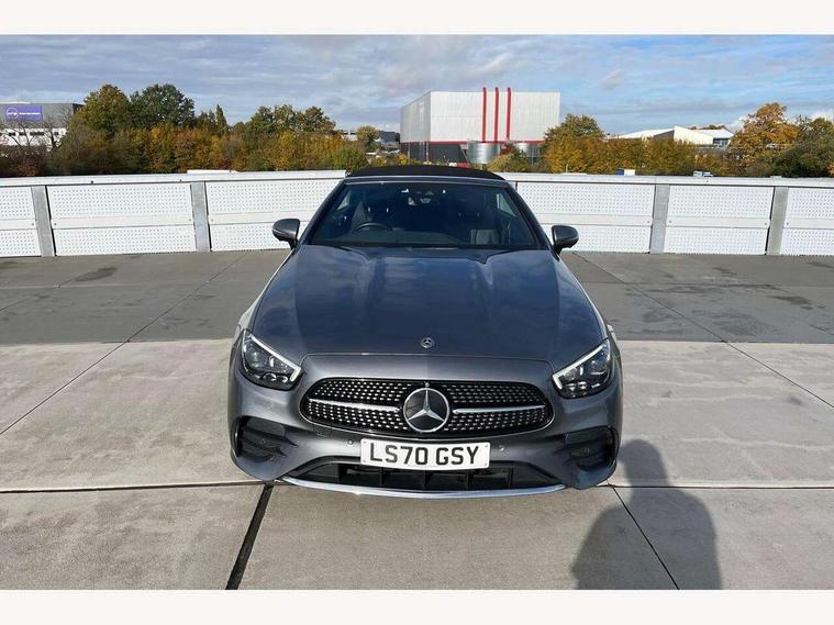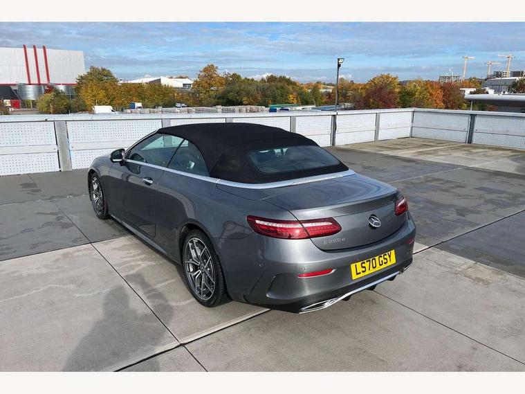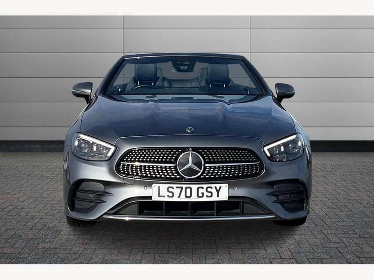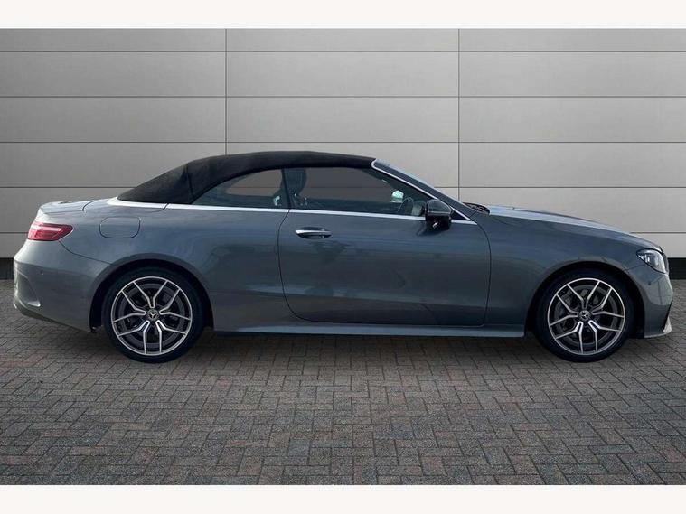 360 degree parking camera, Active parking assist including front and rear parking sensors, Analogue clock, Attention assist, Automatic boot separator, Blind spot assist, Brake wear warning display, Cockpit display 12.3" widescreen digital instrument cluster, Collision prevention assist plus, COMAND online HDD navigation with Radio/Media interface, linguatronic + smartphone integration/Apple CarPlay/Android Auto and 12.3" Cockpit display, Cruise control with variable speed limiter, Direct steer speed sensitive steering, DYNAMIC SELECT with a choice of driving modes (ECO, Comfort, Sport, Sport+ and Individual), ECO start/stop function, High resolution 12.3" multimedia colour display, Mercedes connect me, Outside temperature display, Pre-installation for Vehicle Monitoring, Pre-installation for Vehicle Setup, Remote boot release, Service indicator (ASSYST), Status display for rear seat belts in instrument cluster, Touchpad with control wheel, Traffic sign assist, Trip computer in multifunction display showing current fuel consumption, Wireless charging, 14 litre AdBlue tank, 66 litre fuel tank, Agility control sports suspension with selective damping system, Diesel particulate filter, Incorrect fuelling protection, 2 USB ports in centre console, 2 USB ports in the rear, DAB Digital radio, Smartphone integration via Android Auto/Apple CarPlay, Media Interface, USB and Bluetooth interface and touchpad with control wheel, Acoustic soft-top with enhanced climate and noise comfort, Adaptive brake lights, AIRCAP wind deflector and draught stop, AMG bodystyling front and rear aprons, side skirts, AMG boot lid spoiler in body colour, Body colour door handles, Body coloured bumpers, Electric windows with one touch opening/closing and obstruction sensors, Exterior mirrors heated and electronically adjustable, Illuminated front door sill panels with Mercedes-Benz lettering, Multibeam LED Intelligent Light System with Adaptive Highbeam Assist, Radiator grille with integral star and 2 louvres in matt iridium silver with chrome trim, Rear LED lights, Top surround of side windows in polished aluminium, Visible twin pipe exhaust system integrated into bumper, Waistline in polished aluminium, 3-spoke flat bottom multifunction AMG steering wheel with Touch Control buttons, trimmed in black nappa leather, 50/50 split folding rear seat, Airscarf - neck level heating, Artico man-made leather upper dashboard and beltlines with contrast stitching, Automatic child seat recognition sensor, Automatic two zone climate control, Belt feeder driver and front passenger seat belt automatically positioned within easier reach, Black roof lining, Central stowage compartment with 12 V socket in centre console, Central stowage compartment with USB socket for use with Android Auto and Apple CarPlay, Centre armrest and door handle illumination, Chrome door pins, Floor mats with AMG lettering, Front and rear door pockets, Front centre armrest with stowage compartment, Front footwell lights, Glasses compartment in overhead control panel, Glove compartment - lockable, air conditioned and illuminated, Head restraints for driver and front passenger (four-way adjustability) and in rear (two-way), Heated front seats, Interior lighting - 64 colour Ambient lighting, Interior rear light/integral reading lights, Isofix rear child seat fastenings, Multi contour front sports seats, Seat occupancy sensor for front passenger seat, Sports pedals in brushed stainless steel with black rubber studs, Steering column manually adjustable for height and reach, Steering wheel gearshift paddles, Steering wheel touch control buttons for audio and onboard settings, Sunvisors with illuminated vanity mirrors, Memory pack - E Class, Mirror pack - E Class, Seat comfort pack - E Class, Stowage pack - E Class, 2 x 3-point rear seatbelts, Active bonnet pedestrian safety measure which detects an impact and raises bonnet, Active brake assist, Adaptive brake system with HOLD function and brake drying in the wet, Adaptive driver and front passenger airbags, Airbags - sidebag for driver and front passenger with combined thorax/pelvis bag, Anti-lock braking system (ABS), Drivers knee airbag, Electric parking brake, Electronic Stability Programme, Front and rear window airbags, Head airbags, Hill hold function, Perforated front brake discs with "Mercedes-Benz" lettering, Pre-Safe anticipatory safety system, Seatbelt warning, Tyre pressure monitoring system, Warning triangle and first aid kit, Alarm system/interior protection/immobiliser, Central locking with interior switch, automatic locking and crash sensor with emergency opening function, Chrome surround in electric key, Keyless entry go starting function, Black open pore ash wood, Open pore black ash wood centre console, 19" AMG 5 twin spoke alloy wheels in titanium grey with high sheen finish, Run flat tyres,