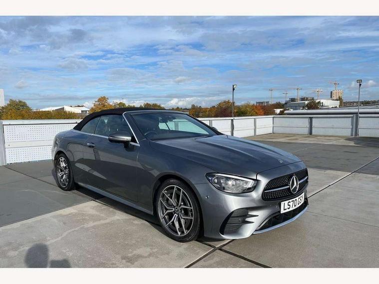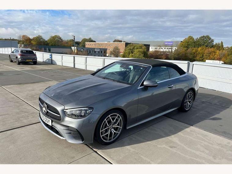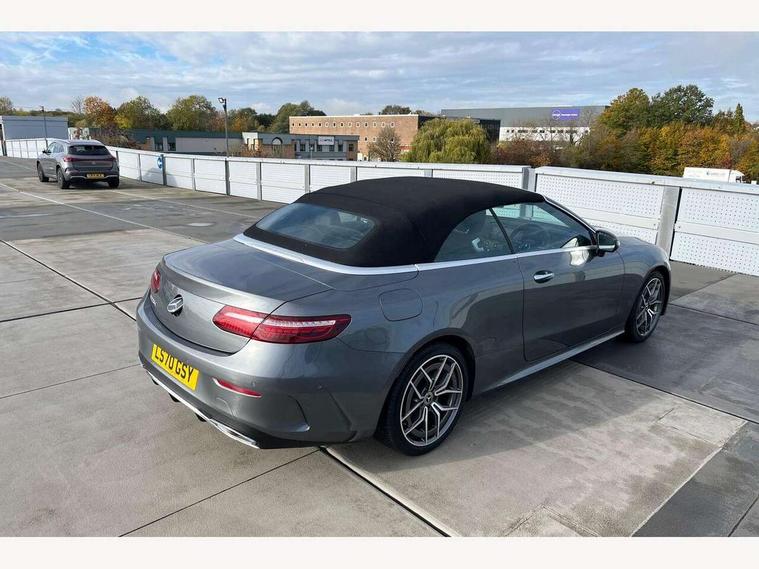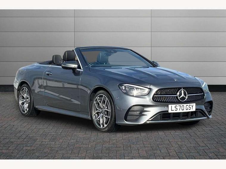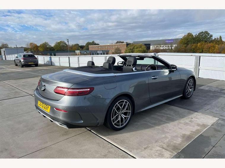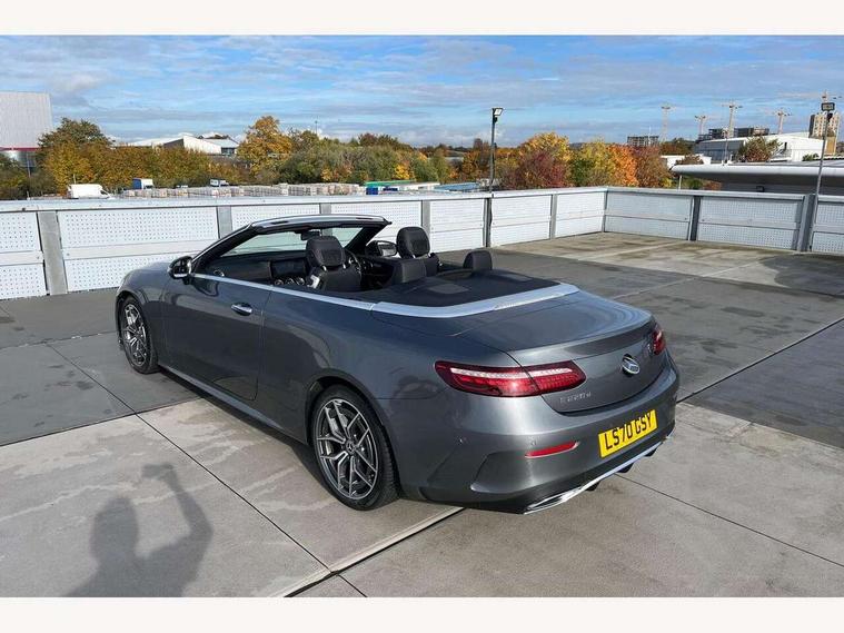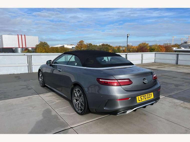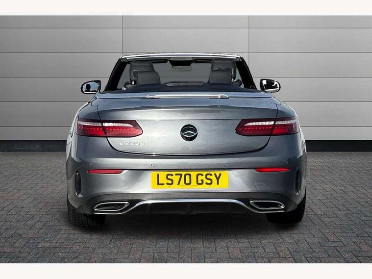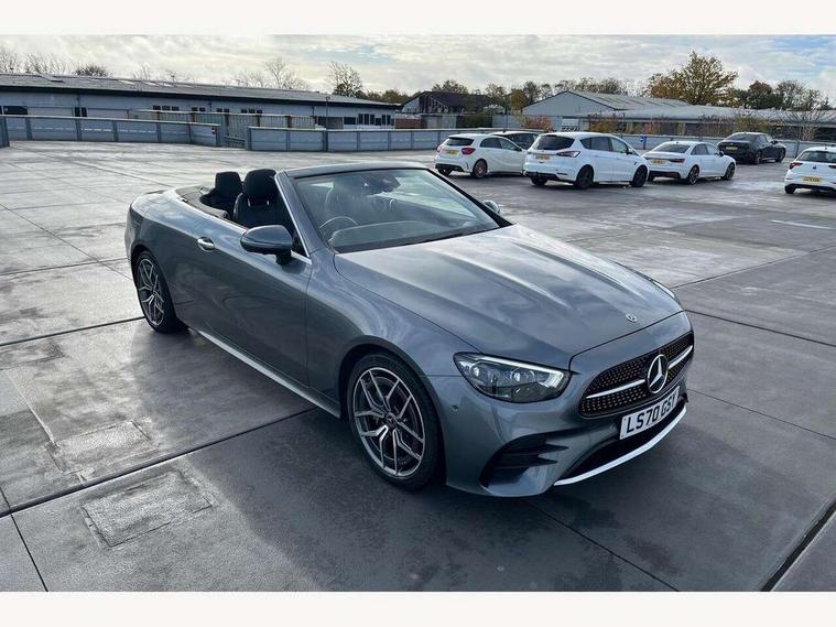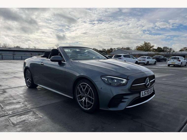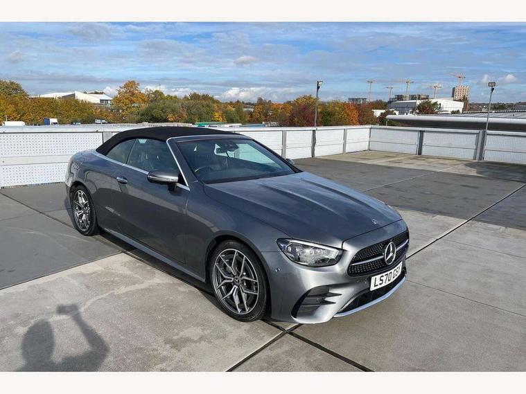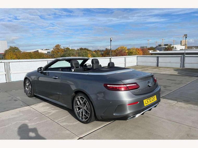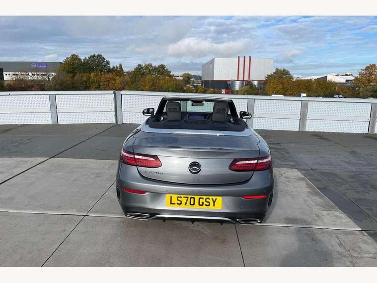 360 degree parking camera, Active parking assist including front and rear parking sensors, Analogue clock, Attention assist, Automatic boot separator, Blind spot assist, Brake wear warning display, Cockpit display 12.3" widescreen digital instrument cluster, Collision prevention assist plus, COMAND online HDD navigation with Radio/Media interface, linguatronic + smartphone integration/Apple CarPlay/Android Auto and 12.3" Cockpit display, Cruise control with variable speed limiter, Direct steer speed sensitive steering, DYNAMIC SELECT with a choice of driving modes (ECO, Comfort, Sport, Sport+ and Individual), ECO start/stop function, High resolution 12.3" multimedia colour display, Mercedes connect me, Outside temperature display, Pre-installation for Vehicle Monitoring, Pre-installation for Vehicle Setup, Remote boot release, Service indicator (ASSYST), Status display for rear seat belts in instrument cluster, Touchpad with control wheel, Traffic sign assist, Trip computer in multifunction display showing current fuel consumption, Wireless charging, 14 litre AdBlue tank, 66 litre fuel tank, Agility control sports suspension with selective damping system, Diesel particulate filter, Incorrect fuelling protection, 2 USB ports in centre console, 2 USB ports in the rear, DAB Digital radio, Smartphone integration via Android Auto/Apple CarPlay, Media Interface, USB and Bluetooth interface and touchpad with control wheel, Acoustic soft-top with enhanced climate and noise comfort, Adaptive brake lights, AIRCAP wind deflector and draught stop, AMG bodystyling front and rear aprons, side skirts, AMG boot lid spoiler in body colour, Body colour door handles, Body coloured bumpers, Electric windows with one touch opening/closing and obstruction sensors, Exterior mirrors heated and electronically adjustable, Illuminated front door sill panels with Mercedes-Benz lettering, Multibeam LED Intelligent Light System with Adaptive Highbeam Assist, Radiator grille with integral star and 2 louvres in matt iridium silver with chrome trim, Rear LED lights, Top surround of side windows in polished aluminium, Visible twin pipe exhaust system integrated into bumper, Waistline in polished aluminium, 3-spoke flat bottom multifunction AMG steering wheel with Touch Control buttons, trimmed in black nappa leather, 50/50 split folding rear seat, Airscarf - neck level heating, Artico man-made leather upper dashboard and beltlines with contrast stitching, Automatic child seat recognition sensor, Automatic two zone climate control, Belt feeder driver and front passenger seat belt automatically positioned within easier reach, Black roof lining, Central stowage compartment with 12 V socket in centre console, Central stowage compartment with USB socket for use with Android Auto and Apple CarPlay, Centre armrest and door handle illumination, Chrome door pins, Floor mats with AMG lettering, Front and rear door pockets, Front centre armrest with stowage compartment, Front footwell lights, Glasses compartment in overhead control panel, Glove compartment - lockable, air conditioned and illuminated, Head restraints for driver and front passenger (four-way adjustability) and in rear (two-way), Heated front seats, Interior lighting - 64 colour Ambient lighting, Interior rear light/integral reading lights, Isofix rear child seat fastenings, Multi contour front sports seats, Seat occupancy sensor for front passenger seat, Sports pedals in brushed stainless steel with black rubber studs, Steering column manually adjustable for height and reach, Steering wheel gearshift paddles, Steering wheel touch control buttons for audio and onboard settings, Sunvisors with illuminated vanity mirrors, Memory pack - E Class, Mirror pack - E Class, Seat comfort pack - E Class, Stowage pack - E Class, 2 x 3-point rear seatbelts, Active bonnet pedestrian safety measure which detects an impact and raises bonnet, Active brake assist, Adaptive brake system with HOLD function and brake drying in the wet, Adaptive driver and front passenger airbags, Airbags - sidebag for driver and front passenger with combined thorax/pelvis bag, Anti-lock braking system (ABS), Drivers knee airbag, Electric parking brake, Electronic Stability Programme, Front and rear window airbags, Head airbags, Hill hold function, Perforated front brake discs with "Mercedes-Benz" lettering, Pre-Safe anticipatory safety system, Seatbelt warning, Tyre pressure monitoring system, Warning triangle and first aid kit, Alarm system/interior protection/immobiliser, Central locking with interior switch, automatic locking and crash sensor with emergency opening function, Chrome surround in electric key, Keyless entry go starting function, Black open pore ash wood, Open pore black ash wood centre console, 19" AMG 5 twin spoke alloy wheels in titanium grey with high sheen finish, Run flat tyres,