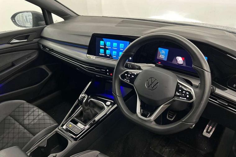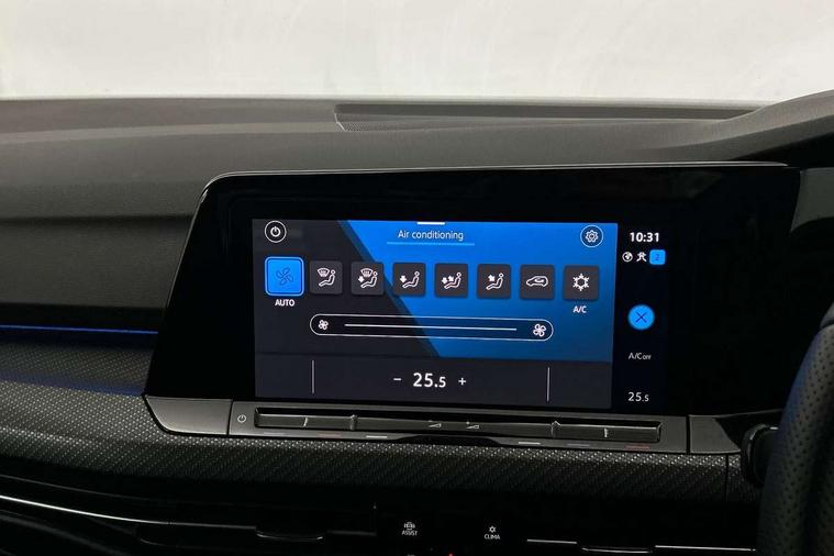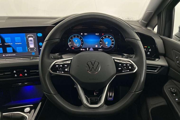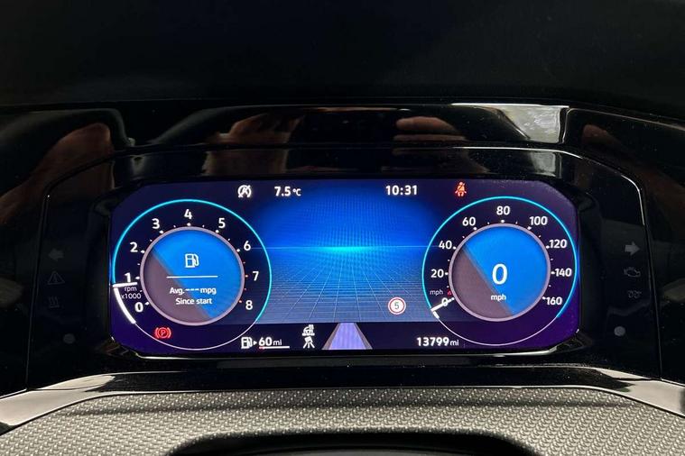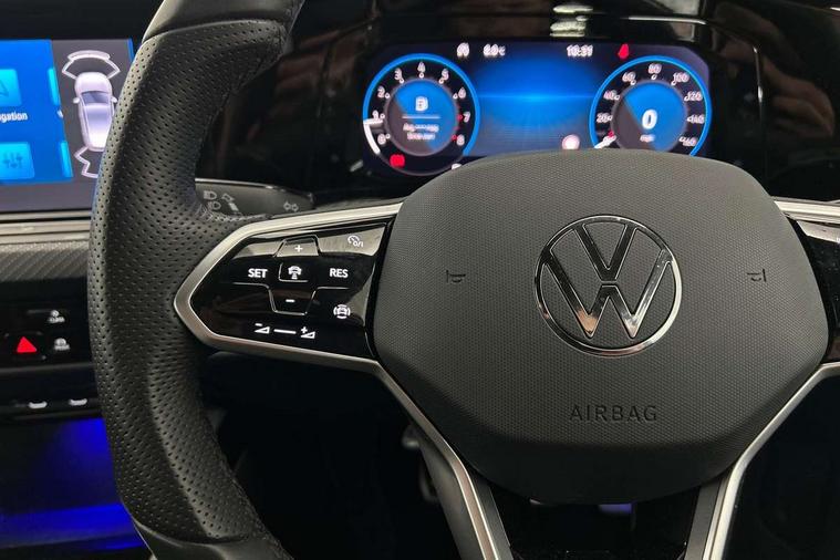 Adaptive cruise control (ACC) with speed limiter and front assist (reacting to vehicles pedestrians and cyclists), Car2X communication, Digital cockpit pro - 10.25" high resolution TFT dash display screen with customizable menus and information, Driver alert system, Driver profile selection, Dynamic road sign display, eCall - Emergency call service for SOS calls to emergency response, Lane assist, Mobile phone interface with wireless inductive charging function, Multifunction camera for distance control, Progressive steering, Speedo, rev counter, electronic odometer, trip, service interval display, exterior temperature and fuel gauge, Start/Stop function, USB-C ports in the front and rear centre console with increased charging performance, Warning buzzer and light for front seatbelts unfastened, Wireless app connect, Petrol Particulate Filter, XDS electronic differential lock for improved traction and handling, Premium USB cable in choice of either Apple or Android smartphone compatibility, Ambient lighting, exterior illuminated styling elements at the sides, Auto dimming rear view mirror, Automatic headlamp activation with Coming home and Leaving home feature, Automatic headlights, Body colour door handles, Body colour door mirrors with integrated indicators, Body colour rear roof spoiler, Electrically heated and adjustable door mirrors with memory feature, Front and rear electric windows, Heat insulating glass windscreen, Heated rear windscreen, High level 3rd brake light, Highway light, LED License plate illumination, R Line body coloured bumpers, Rain sensor, Rear fog light on one side and reversing lights on both sides, Rear lights incorporating LED technology, Rear side wing doors, Rear tinted glass 65% light absorbing from B pillar backwards, Rear windscreen washer and wiper with interval delay, Welcome light, 12V socket in front centre console, 12V socket in luggage compartment, 3 rear head restraints, 3 seat bench in 2nd row, Ambient lighting - Customisable 30 colour ambient lighting, Black roof lining, Brushed stainless steel pedals, Chrome plated surround to electric mirror button, window switch and air vent surrounds, Drivers and front passengers sun visors with vanity mirrors, Front + rear carpet mats in recycled material, Front centre armrest with storage compartment, Front cupholders x 2, Front passenger seat, Front reading lights x 2 incorporating LED technology, Front seat lumbar support adjuster, Front sports seats, Glovebox, Height adjustable front seats, Height and reach adjustable steering wheel, Isofix child seat preparation for 2 rear child seats and front passenger seat, Luggage compartment lighting, R Line door and side trim panel, R Line front seats integrated head restraints, R-Line leather wrapped multi function sports heated steering wheel, Removable luggage compartment cover, Sardegna cloth upholstery with front and outer rear seats Art Velour inner sides of bolsters, Split folding backrest with centre armrest and unsplit rear seat bench, Titanium black instrument panel, Woven fabric storage compartments in front and rear doors, 3 point height adj front seatbelts + pretensioners, 3 rear three point seatbelts, ABS, Child locks on rear doors, Driver and front passenger airbag with front passenger airbag deactivation, Drivers and front passengers safety optimised head restraints, Electronic parking brake with auto hold, ESC (Electronic Stability Control), Extended pedestrian protection measures, Front and rear passengers curtain airbag system including front side airbags, Front centre airbag, Front disc brakes, Front side airbags with curtain airbags, Rear disc brakes, Two tone horn, Tyre pressure monitoring system, Alarm with interior protection and deactivation via infotainment system, Electronic engine immobiliser, Carbon grey decorative inserts in dash and front door trim panels, High gloss black centre console,