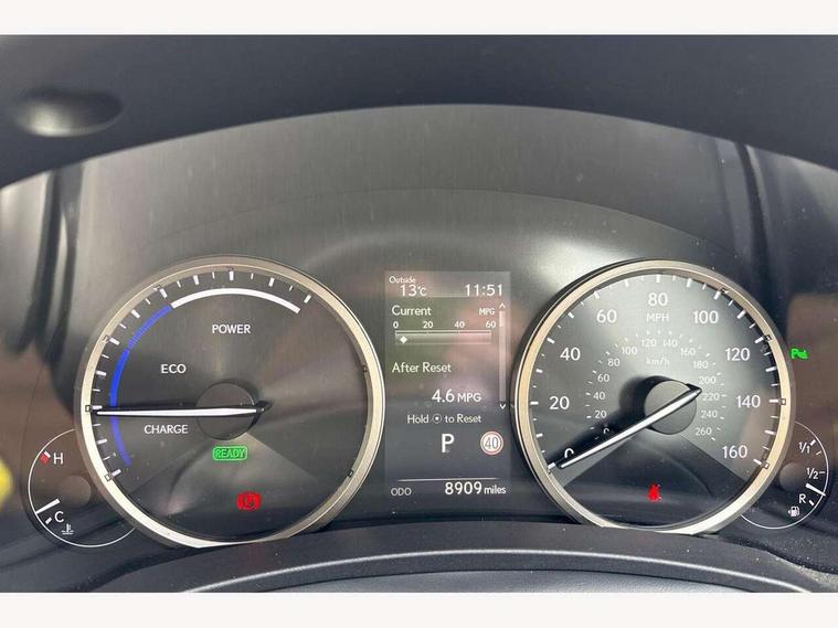 4 driving modes EV/Eco/Normal/Sport, 8" display screen with remote touch interface, Analogue clock, Apple car play/Android Auto, Bluetooth telephone connectivity, Electric speed sensitive power steering, Intelligent parking sensors - 4 front and 4 rear, Lane change flasher function, Lexus link connected services with available optional wifi, Lexus navigation system, Push button starter, Reversing camera, All wheel drive system, Vehicle Dynamics Integrated Management (VDIM), Vehicle Stability Control (VSC), 2 USB ports, 8 speakers, AUX socket with VTR compatibility, CD player, DAB Digital radio, Auto dimming interior rear view mirror, Bi LED headlight with Auto high beam, Body adhesive, laser screw welding and laser brazed roof structure, Front and rear one touch power windows, with anti-jam protection, Heated and auto folding door mirrors with turn indicators, Hidden exhaust pipe, LED brake lights and rear lights with emergency brake signal, LED daytime running lights, LED front and rear sequential indicators, Rain sensor windscreen wipers, Roof rails, 12V accessory port centre console and luggage compartment, 2 cupholders in front centre console, 2 map pockets in the rear, 2 x fixed shopping bag hooks in boot, 2 x sun visors with vanity mirror and lamp, 6 tie down hooks in boot, 60/40 split folding rear seat, 8 way driver/passenger electrically adjustable front seats, Adjustable rear seat backrest, Card holder installed in driver and passengers sun visors, Centre armrest with storage box, Dual climate control air conditioning system, Front and rear head restraints, Front and rear textile carpet mats, Heated front seats, Leather gear lever, Leather steering wheel with paddle shifts, LED interior illumination, Rear air vents, Rear centre armrest with 2 cupholders, Self charging hybrid, Tahara leather upholstery, Whiplash Injury Lessening (WIL) feature (active headrest) for seats, 2 x Isofix child rear seat restraints, 3 point ELR front seatbelts with pretensioners, 3x3 point rear seat belts, ABS, Adjustable seat belt anchor points, Driver and front passenger 2 stage airbag, Driver/front passenger side airbags, Drivers knee airbag, EBD + Brake Assist, ECB (Electronically Controlled Brake System), Electronic parking brake, Front and rear curtain shield airbags, Front passenger seat cushion airbag, Hill start assist, Hybrid automatic with 6 stage sequential shift and kick down switch, Lexus safety system - dynamic radar cruise control, pre collision system day and night, lane tracing assist, road sign, automatic high beam, OTA, Passenger airbag cut-off device, Traction control, Tyre pressure warning, 2 x remote key fobs, Anti-theft system with siren, alarm, intrusion sensor, glass breakage sensor, tilt sensor and engine immobiliser, Locking wheel nuts, Speed sensitive auto door locking, Two motion door lock with double lock, VIN Window etching, Silver inlays, Space saver spare wheel,
