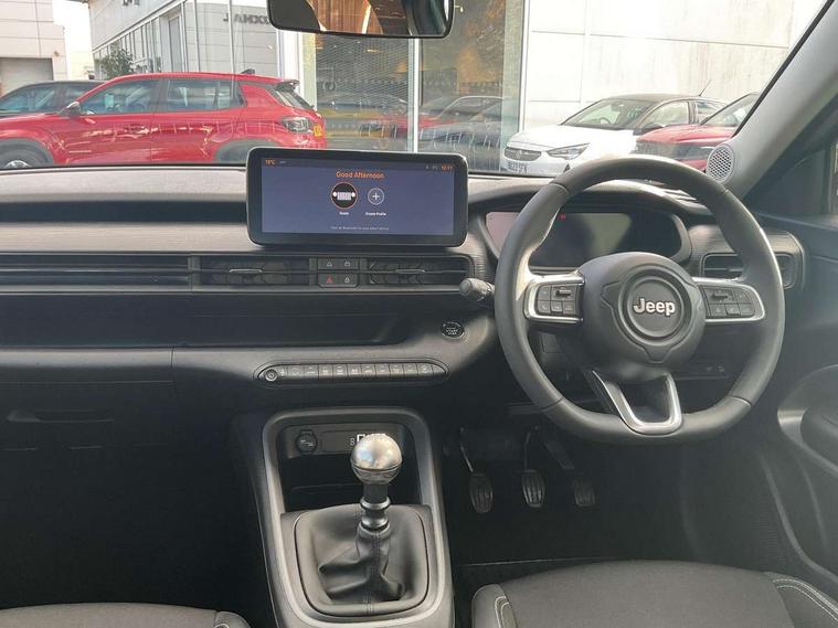 (AEB) Autonomous Emergency Braking with pedestrian and cyclist recognition, 10.25" Full TFT reconfigurable colour cluster, All-Terrain Mode Selector, Apple Carplay/Android Auto with wireless mirroring, BSRF connectivity box, Connectivity services, Drowsy driver detection system, eCall emergency call system, Keyless Start/Engine On Button, Lane keep assist, Odometer, PAS, Quick Guide English, Traffic sign recognition, Warranty Booklet - UK, Battery default, High efficiency alternator, Rear USB port with type-C charging, 3rd brake light, All power windows express Up/Down, Automatic headlights, Body colour exterior door handles, Day time running light, Gloss black mirror caps, Rain sensor, Rear side wing doors, Rear wiper, Silver skid plates, Wiring preperation for towing group by Mopar, 3 rear headrests, 3 seat bench in 2nd row, Automatic A/C (1 Zone), Cargo Flex Kit - Flat floor on trunk area, height adjustable cargo floor, double face carpet/scratch resistant and washable, Central console dividers x2, Driver and front passenger sunvisor with vanity mirror, Foldable second row seats 40/60 - Fix and Fold, Front central armrest with storage, Front head restraints, Front passenger grab handle, Front passenger isofix child seat attachment, Front seat backrest pocket, I am Jeep label, Single front passenger seat, Synthetic leather gear lever knob, Synthetic leather steering wheel, Anti-lock braking system (ABS), Child locks on rear doors, Electric parking brake with auto hold function, ESC - Electronic Stability Control + traction control, Hill descent control, Kit fix and go predisposition/housing only, Rear seat ISOFIX, Three 3 point rear seatbelts, Vulnerable road user recognition - Pedestrian/Cyclist incl. AEB, Volumetric anti theft alarm, Black dashboard, Fix and go puncture repair kit,