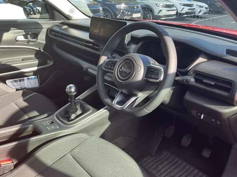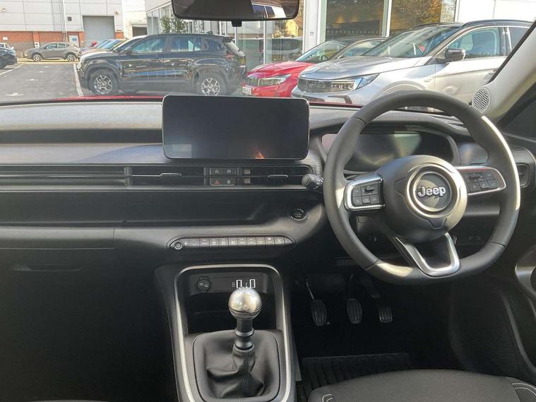 (AEB) Autonomous Emergency Braking with pedestrian and cyclist recognition, 10.25" Full TFT reconfigurable colour cluster, All-Terrain Mode Selector, Apple Carplay/Android Auto with wireless mirroring, BSRF connectivity box, Connectivity services, Drowsy driver detection system, eCall emergency call system, Keyless Start/Engine On Button, Lane keep assist, Odometer, PAS, Quick Guide English, Traffic sign recognition, Warranty Booklet - UK, Battery default, High efficiency alternator, Rear USB port with type-C charging, 3rd brake light, All power windows express Up/Down, Automatic headlights, Body colour exterior door handles, Day time running light, Gloss black mirror caps, Rain sensor, Rear side wing doors, Rear wiper, Silver skid plates, Wiring preperation for towing group by Mopar, 3 rear headrests, 3 seat bench in 2nd row, Automatic A/C (1 Zone), Cargo Flex Kit - Flat floor on trunk area, height adjustable cargo floor, double face carpet/scratch resistant and washable, Central console dividers x2, Driver and front passenger sunvisor with vanity mirror, Foldable second row seats 40/60 - Fix and Fold, Front central armrest with storage, Front head restraints, Front passenger grab handle, Front passenger isofix child seat attachment, Front seat backrest pocket, I am Jeep label, Single front passenger seat, Synthetic leather gear lever knob, Synthetic leather steering wheel, Anti-lock braking system (ABS), Child locks on rear doors, Electric parking brake with auto hold function, ESC - Electronic Stability Control + traction control, Hill descent control, Kit fix and go predisposition/housing only, Rear seat ISOFIX, Three 3 point rear seatbelts, Volumetric anti theft alarm, Black dashboard, Fix and go puncture repair kit,