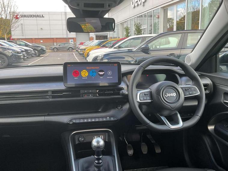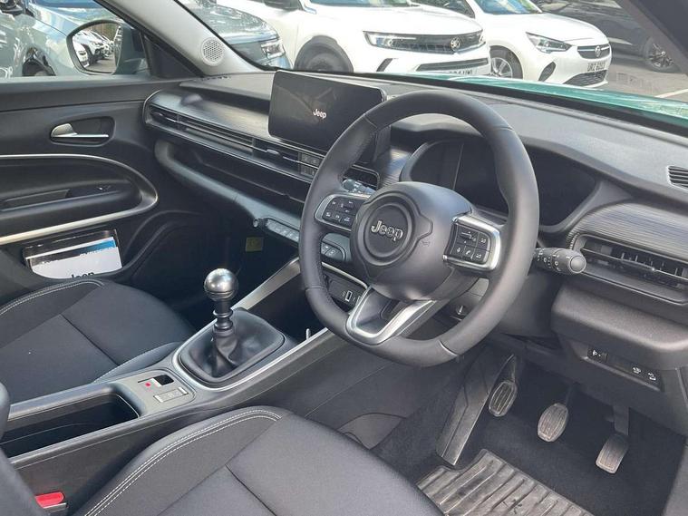 (AEB) Autonomous Emergency Braking with pedestrian and cyclist recognition, 10.25" Full TFT reconfigurable colour cluster, All-Terrain Mode Selector, Apple Carplay/Android Auto with wireless mirroring, BSRF connectivity box, Connectivity services, Drowsy driver detection system, eCall emergency call system, Keyless Start/Engine On Button, Lane keep assist, Odometer, PAS, Quick Guide English, Traffic sign recognition, Warranty Booklet - UK, Battery default, High efficiency alternator, Rear USB port with type-C charging, 3rd brake light, All power windows express Up/Down, Automatic headlights, Body colour exterior door handles, Day time running light, Gloss black mirror caps, Rain sensor, Rear side wing doors, Rear wiper, Silver skid plates, Wiring preperation for towing group by Mopar, 3 rear headrests, 3 seat bench in 2nd row, Automatic A/C (1 Zone), Cargo Flex Kit - Flat floor on trunk area, height adjustable cargo floor, double face carpet/scratch resistant and washable, Central console dividers x2, Driver and front passenger sunvisor with vanity mirror, Foldable second row seats 40/60 - Fix and Fold, Front central armrest with storage, Front head restraints, Front passenger grab handle, Front passenger isofix child seat attachment, Front seat backrest pocket, I am Jeep label, Single front passenger seat, Synthetic leather gear lever knob, Synthetic leather steering wheel, Anti-lock braking system (ABS), Child locks on rear doors, Electric parking brake with auto hold function, ESC - Electronic Stability Control + traction control, Hill descent control, Kit fix and go predisposition/housing only, Rear seat ISOFIX, Three 3 point rear seatbelts, Vulnerable road user recognition - Pedestrian/Cyclist incl. AEB, Volumetric anti theft alarm, Black dashboard, Fix and go puncture repair kit,