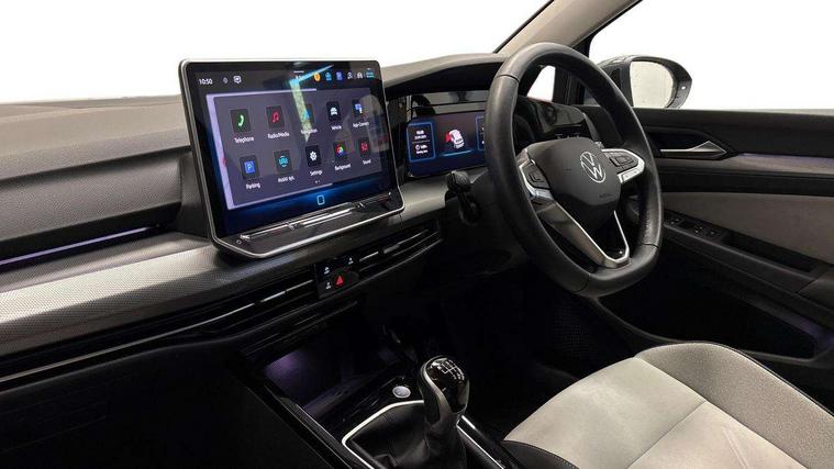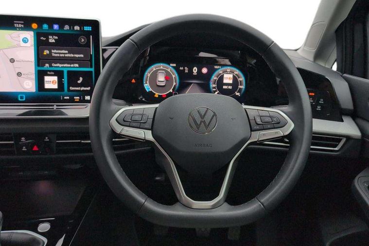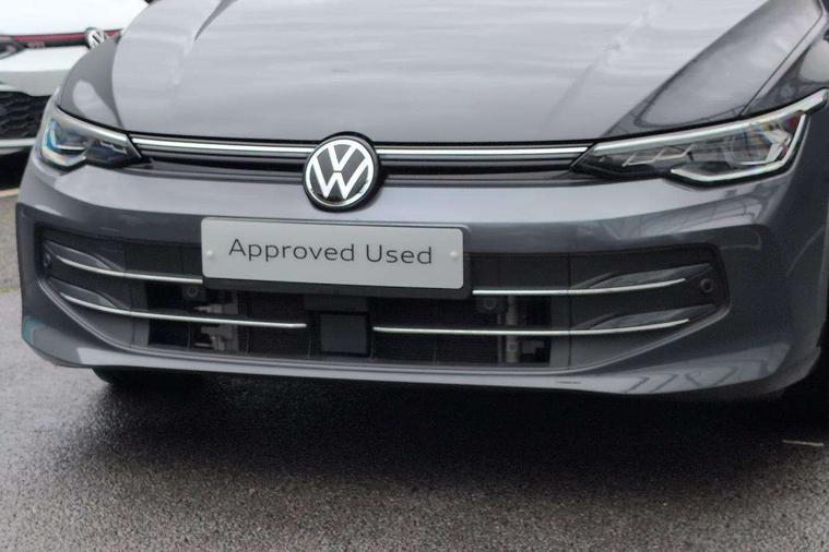 Activated carbon canister, Adaptive cruise control (ACC) with speed limiter and front assist (reacting to vehicles pedestrians and cyclists), Advanced driver attention and drowsiness monitor, Driver alert system, Dynamic road sign display, E-Sim card for online connectivity, eCall emergency call system, Multi-color Digital cockpit pro, selection of different info profile possible, Multifunction camera for distance control, Navigation system, Oncoming vehicle braking when turning including swerve support, Power assisted speed sensitive steering, Preparation for light assist system, Side assist blind spot lane change system, rear traffic alert and exit warning system, Speedo, rev counter, electronic odometer, trip, service interval display, exterior temperature and fuel gauge, Voice assistant and voice enhancer with chat GPT, Warning signal and warning light for front and rear seatbelts not fastened, We connect plus preparation, We connect preparation, Wireless app connect, Petrol Particulate Filter, Start-stop system with battery regeneration (recuperation - energy recovery during braking), XDS electronic differential lock for improved traction and handling, 2 USB C ports in front, 2 USB charging sockets on the centre console in the rear charging capacity upto 45W, Comfort telephony + wireless charging, without wireless aerial connection, Digital radio reception (DAB), Diversity antenna for FM reception, Infotainment system with 12.9" display, 3rd brake light, Auto dimming rear view mirror, Auto headlights, Automatic headlamp activation with Coming home and Leaving home feature, Body colour bumpers, Body colour door handles, Body colour door mirrors, Chrome plated radiator grille inserts and light switch surrounds, Chrome trimmed front air intake surrounds, Chrome trims on the side window bottom, Exterior mirrors convex on the left and aspherical on the right, Front and rear electric windows, Heat insulating windshield made of laminated glass, Illuminated molding between headlights and illuminated door handle recesses, Illumination Volkswagen logo, LED daytime running lights, Rain sensor, Rear exhaust tailpipe, Rear fog light on one side and reversing lights on both sides, Rear side wing doors, Rear windscreen washer and wiper with interval delay, Remote electrically foldable door mirrors, puddle lights and reverse activated passenger's door mirror, Welcome light with surround lighting, 12V socket in front centre console, 12V socket in luggage compartment, 3 rear head restraints, 3 seat bench in 2nd row, Air care climatronic 3 Zone automatic climate control with rear air conditioning control panel, Ambient lighting with 30 colour including LED light unit in front footwell with selectable light colour, Carpet mats, front and rear, Front centre armrest, Front passenger seat, ISOFIX anchors for child seats on outer rear bench seats and on front passanger seat compatible for i-Size, Leather gearshift handle, Luggage compartment lighting, Rear cupholder and loadthough, Soul black instrument panel, Split folding backrest with centre armrest and unsplit rear seat bench, Standard pedal cluster, Storm grey roof lining, Sun visors with illuminated vanity mirrors, Driver assistance pack - Golf Estate/Hatchback, 3 point height adj front seatbelts + pretensioners, 3 rear three point seatbelts, ABS, Autonomous emergency braking front assist with pedestrian and cyclist monitoring, Child locks on rear doors, Driver and front passenger airbag with front passenger airbag deactivation, Electronic parking brake with auto hold, ESC (Electronic Stability Control), Extended pedestrian protection measures, Rear disc brakes, Two tone horn, Tyre pressure monitoring system, Volkswagen roadside assistance, Anti theft wheel bolts, Preparation for alcohol interlock, New brushed dark metal decorative inserts for dashboard,