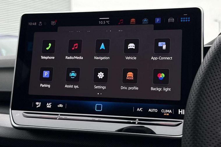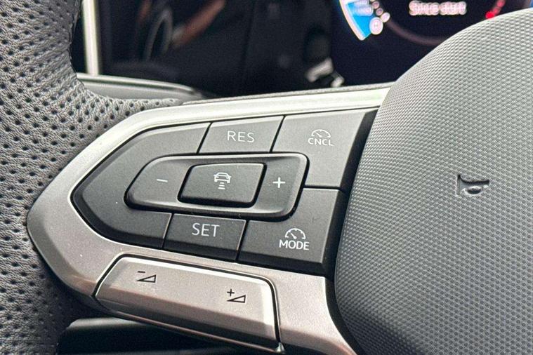 Activated carbon canister, Adaptive cruise control (ACC), Advanced driver attention and drowsiness monitor, Dynamic road sign display, Dynamic steering, E-Sim card for online connectivity, eCall emergency call system, Multi-color Digital cockpit pro, selection of different info profile possible, Multifunction front facing camera for distance control, Navigation system, Oncoming vehicle braking when turning including swerve support, Preparation for light assist system, Speed limiter, Speedo, rev counter, electronic odometer, trip, service interval display, exterior temperature and fuel gauge, Traffic jam assist, Voice enhancer and voice control, Warning signal and warning light for front and rear seatbelts not fastened, We connect plus preparation, We connect preparation, Wireless app connect, Petrol Particulate Filter, Start-stop system with battery regeneration (recuperation - energy recovery during braking), XDS electronic differential lock for improved traction and handling, 2 USB C ports in front, 2 USB charging sockets on the centre console in the rear charging capacity upto 45W, Comfort telephony + wireless charging, without wireless aerial connection, Digital radio reception (DAB), Diversity antenna for FM reception, Gaming platform via car app, Infotainment system with 12.9" display, Mobile phone interface with inductive charging feature, 3rd brake light, Auto headlights, Automatic headlamp activation with Coming home and Leaving home feature, Body colored bumpers in R-Line style, Body colour door handles, Exterior ambient lighting with illuminated door handles, Exterior mirrors convex on the left and aspherical on the right, Front and rear electric windows, Heat insulating windshield made of laminated glass, LED daytime running lights, Rear exhaust tailpipe, Rear fog light on one side and reversing lights on both sides, Rear side wing doors, Rear windscreen washer and wiper with interval delay, Remote electrically foldable door mirrors, puddle lights and reverse activated passenger's door mirror, Welcome light with surround lighting, 12V socket in front centre console, 12V socket in luggage compartment, 3 rear head restraints, 3 seat bench in 2nd row, Ambient lighting with 30 colour including LED light unit in front footwell with selectable light colour, Brushed stainless steel pedals, Carpet mats, front and rear, Chrome plated radiator grille inserts, air vent surrounds and light switch surrounds, Front centre armrest, Integrated front head restraints, ISOFIX anchors for child seats on outer rear bench seats and on front passanger seat compatible for i-Size, Leather gearshift handle, Luggage compartment lighting, Premium sports seats in front, Rear cupholder and loadthough, Single front passenger seat, Soul black instrument panel, Split folding backrest with centre armrest and unsplit rear seat bench, Storm grey roof lining, Sun visors with illuminated vanity mirrors, 3 point height adj front seatbelts + pretensioners, 3 rear three point seatbelts, ABS, Autonomous emergency braking front assist with pedestrian and cyclist monitoring, Child locks on rear doors, Driver and front passenger airbag with front passenger airbag deactivation, Electronic parking brake with auto hold, ESC (Electronic Stability Control), Extended pedestrian protection measures, Rear disc brakes, Two tone horn, Tyre pressure loss indicator, Volkswagen roadside assistance, Anti theft wheel bolts, Preparation for alcohol interlock, Decorative inserts carbon grey for dashboard and front door trim panels,