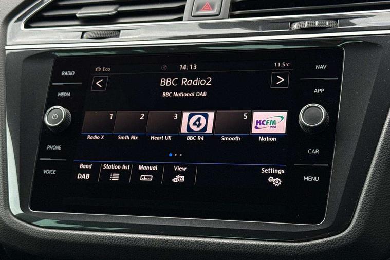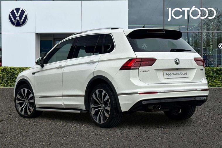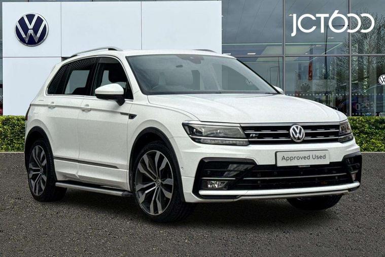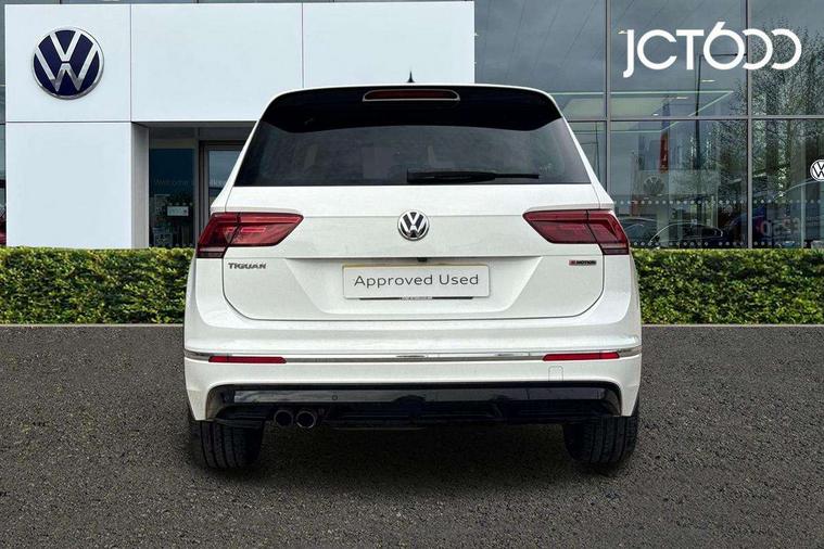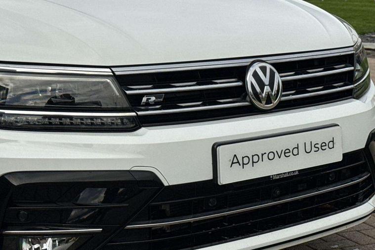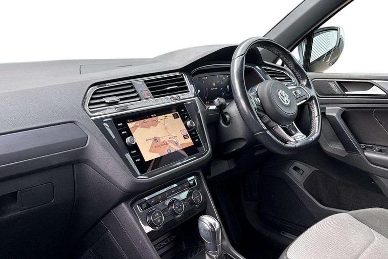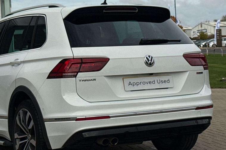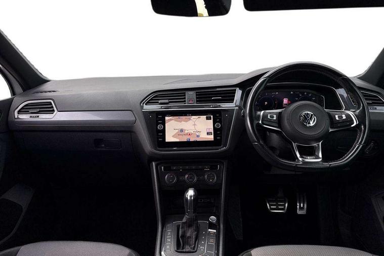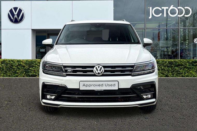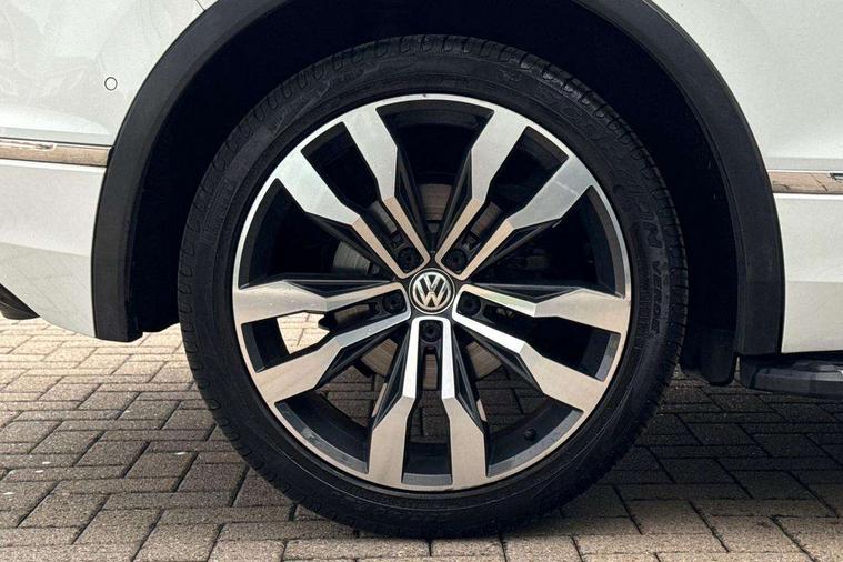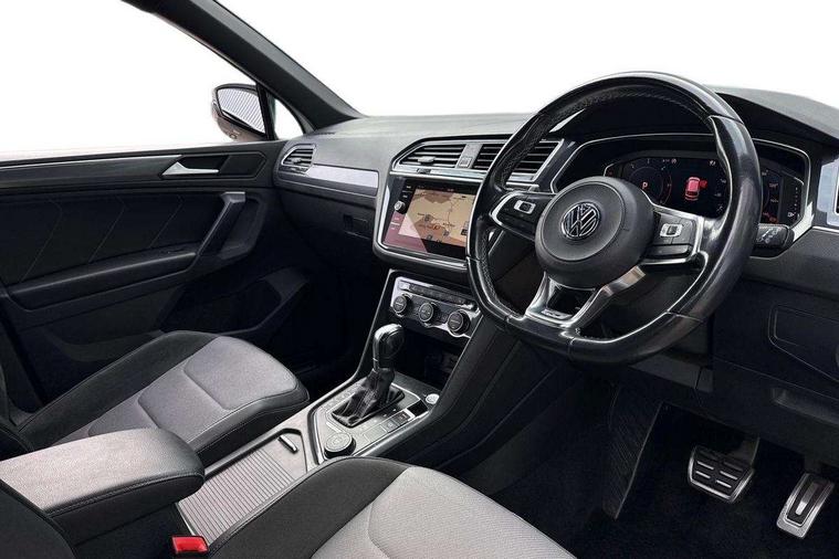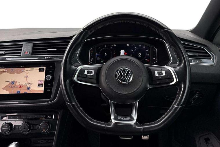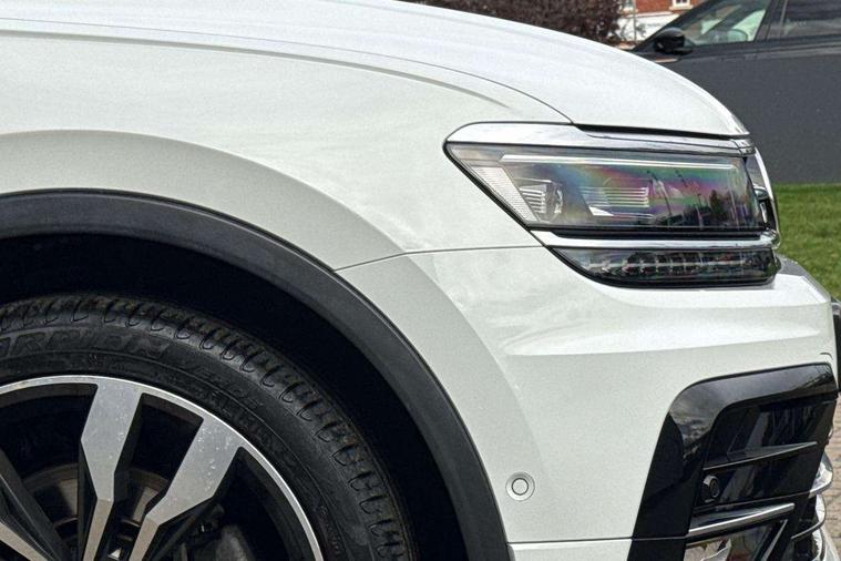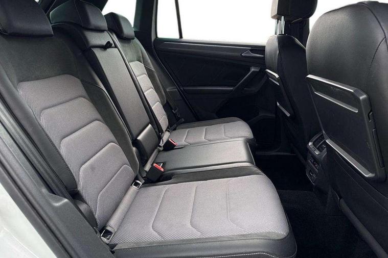 App-Connect, Active information display, Adaptive cruise control, Area view with park assist steering and front and rear parking sensors, Bluetooth phone integration system, Car-Net Security and Service, Coasting function, Distance control assist, Drive mode selector, Driver profile selection, Fatigue detection system, Front assist, radar sensor controlled distance monitor, city emergency braking + predictive pedestrian protection, Fully electric tailgate + keyless entry and start, Instrument cluster, Lane assist, Low washer fluid warning light, Multifunction colour display, Outside temperature display, Progressive power assisted steering, Remote tailgate release, Service interval indicator, Speed limiter, Start/Stop function, Warning lights, Diesel particulate filter, Misfuel prevention device for diesel engine, XDS electronic differential lock, 2x USB sockets in front, 4 X 20 watt output, DAB Digital radio, MP3 compatible single CD player, SD card slot, Simultaneous pairing of 2 compatible mobile devices, SMS functionality - read, compose and send SMS messages using touch-screen display, Title and cover art display, 3D effect cherry red LED rear tail lights, Auto dimming interior mirror, Automatic activation of hazard warning lights, Body colour door handles, Body colour door mirrors, Body colour rear spoiler, Body colour side skirt, Body coloured bumpers, Chrome side window surrounds, Chrome trimmed radiator grille, Coming/leaving home lighting function, Dusk sensor + auto driving lights, Elec heated + adjust door mirrors, Electric folding door mirrors, Electric panoramic sunroof with sunblind, Front air intake with chrome strip, Front and rear electric windows, Halogen clear headlights with integrated indicators and range adjustable, Heated rear window, Heated windscreen washer jets, High level 3rd brake light, LED headlights with dynamic light assist daytime running lights and cornering front fog lights, LED rear number plate lights, Piano black rear diffuser, R Line body kit, R Line side sills, Rain sensor windscreen wipers, Rear windscreen washer and wiper with interval delay, Side skirts and rear bumper with chrome insert, Silver roof rails, Silver under body guard, Tinted windows (B pillar backwards), Trailer Stability Programme, Windscreen wipers/ intermittent wipe + 4 position delay, 12V Accessory socket in centre console, 3 rear headrests, 3 zone climate control, 4 load lashing points, 40:20:40 split folding rear seats, Bag hook in luggage compartment, Black headlining, Driver + front passenger lumbar support, Foldable passenger seatback, Front + rear carpet mats, Front centre armrest with 12v socket, Front centre armrest with storage + rear 2 air vents + cupholders, Front seat back storage pockets, Front seatback folding tables, Height/reach adjust steering wheel, Illuminated driver/passenger vanity mirrors, Illuminated scuff plates, Instrument lighting white adjustable panel illumination, Interior light with delay, Isofix Preparation 2 Rear child seats, Leather gear knob, Leather multifunction steering wheel with paddle shift, Load through provision with 2 cupholders when folded, Lockable cooled glovebox, Luggage compartment lighting, Luggage compartment side storage, Map pockets on front seats, Passenger seat height adjuster, Rear cupholders, Removable luggage cover, Sliding/reclining rear seats, Stainless steel pedals, Storage compartment in driver's door, Storage compartment in passenger's door, Storage compartment in rear doors, Storage tray on dashboard, Sunglasses storage, Unique R Line door sill protectors, Variable boot floor, Ambient lighting pack - Tiguan, 3 rear 3 point seatbelts, ABS+EBD+Brake assist, Active bonnet, Active pedestrian safety system, Curtain airbags, Driver/Front Passenger airbags, Driver/Passenger whiplash optimised head restraints, Drivers knee airbag, DTC - Drag torque control, Electronic parking brake with auto hold, ESP with EDL + ASR, First aid kit, Front side airbags, Front ventilated disc brakes and rear disc brakes, Head airbag system, Height adjustable front 3 point seatbelts + pretensioners, Hill hold control, Passenger airbag deactivate switch, Passenger knee airbag, Pre crash system, Rear side airbags, Rigid safety cell with front and rear crumple zones, Seatbelt warning lamp and buzzer, Two tone horn, Warning triangle, Alarm with interior protection, Electronic engine immobiliser, Remote central locking with 2 remote folding keys, Aluminium decorative inserts, Chrome door trim inserts, 20" Suzuka alloy wheels + anti theft wheel bolts, Steel space saver spare wheel,