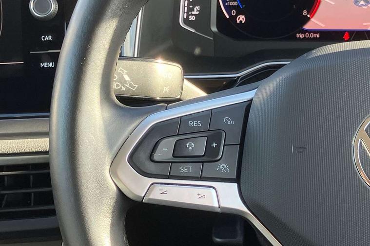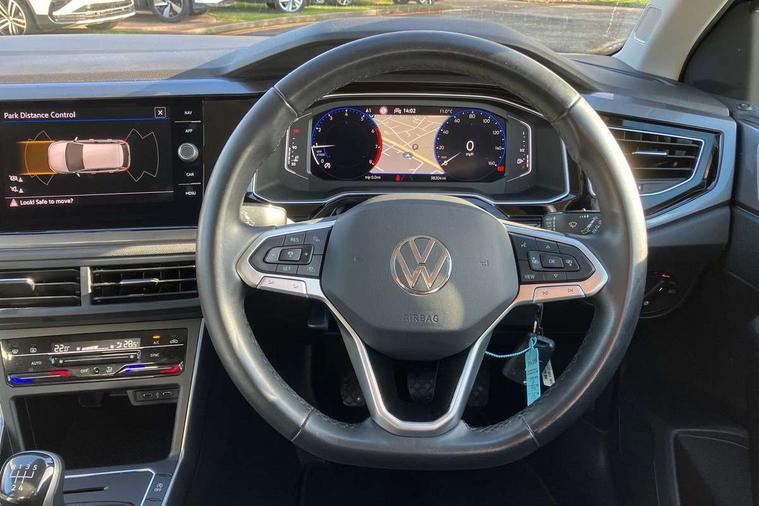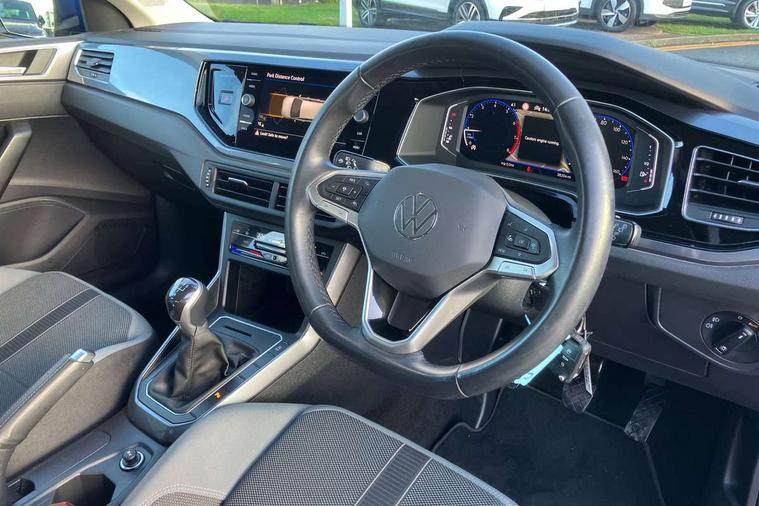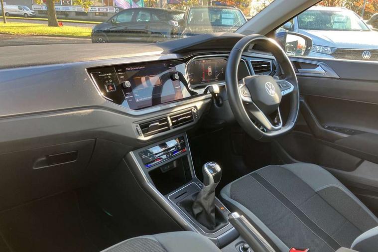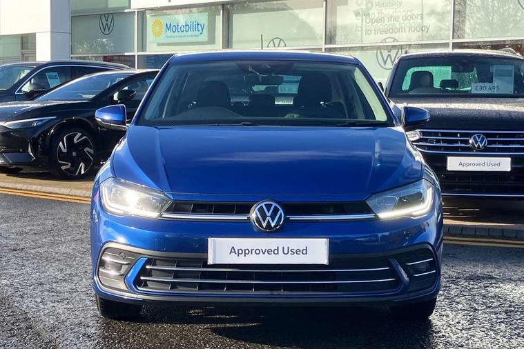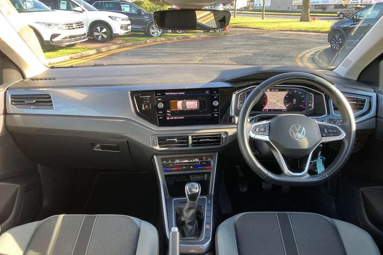 Adaptive cruise control without follow-to-stop and speed limiter, Bluetooth mobile phone interface, Digital Cockpit Pro with 10.25" Display, Driver alert system, Dynamic road sign display, Emergency call service, Power assisted speed sensitive steering, Preparation for We connect and We connect plus, Speedo and rev counter, electronic odometer, trip, service interval display and fuel gauge, Standard rear axle, Travel Assist - Lane keeping system and traffic jam assist, Travel assist including emergency assist, Trip computer, Warning signal and warning light for front and rear seatbelts not fastened, Washer fluid level indicator, Wireless app connect, Front wheel drive, Rear shock absorpion, Start-stop system with battery regeneration (recuperation - energy recovery during braking), DAB Digital radio, Diversity antenna for FM reception, Front and rear 6 speakers, Automatic dimming interior rear view mirror, Automatic headlights, Body colour door handles, Body coloured bumpers and radiator grille with chrome trims, Electric front windows, Heat insulating darkened glass in side and rear windows, Heat insulating glass windscreen, LED separate daytime running lights with coming/leaving home function, Power folding adjustable/heated exterior mirrors and front passenger exterior mirror lowering function, Rain sensor, Rear electric windows, Rear fog light, Rear side wing doors, Rear windscreen washer and wiper with interval delay, Third brake light, 12V power socket in centre console, 2 USB-C ports in the front, 2 USB-C charging sockets on the center console in the rear, 3 rear head restraints, 60/40 split folding rear seat and rear seat bench not split, Air care climatronic air conditoning system with active combination filter and 2-zone temperature control, Ambient lighting, Ceramique headliner, Chrome plated radiator grille inserts, air vent surrounds and light switch surrounds, Door and side trim panel, Driver and front passenger seat height adjustment, Driver/passenger sunvisors with illuminated vanity mirrors, Front + rear carpet mats, Front centre armrest, Front footwell illumination, Front seat backrest storage pockets, Front sports comfort seats, Handbrake lever handle in leather, Isofix child seat preparation easy-fit (for two outer rear seats, and front passenger seat) compatible with I-size, Leather trimmed gear knob, LED interior light with switch off delay and dimmer, 2 reading lights front and rear, Luggage compartment cover, Luggage compartment floor, Luggage compartment lighting, Lumbar adjustment for front seats, Multifunction steering wheel, Single front passenger seat, Standard pedal cluster, IQ LED matrix headlights pack - Polo, Light and vision pack - Polo, 3 point height adj front seatbelts + pretensioners, 3x3 point rear seatbelts, ABS, Driver and front passenger airbag with front passenger airbag deactivation, Drivers and front passengers safety optimised head restraints, ESC (Electronic stability control) + EDL (Electronic Differntial lock) and ASR (Traction control), Extended and predictive pedestrian/ cyclist protection, Front curtain and side airbags with center airbag, Front disc brakes, Hill hold control, Manual child lock in rear doors, Rear drum brakes, Single tone horn, Tyre pressure loss indicator, Alarm with interior protection, Anti-theft alarm system with interior monitoring, backup horn, and towing protection, Anti-theft wheel bolts, Electronic engine immobiliser, Chrome applications on rotary light, mirror adjustment, window regulator switches, outlet with frame in black, Deep iron gloss decorative inserts in dash and front door panels, Low rolling resistance tyres,