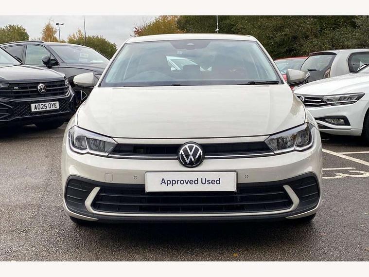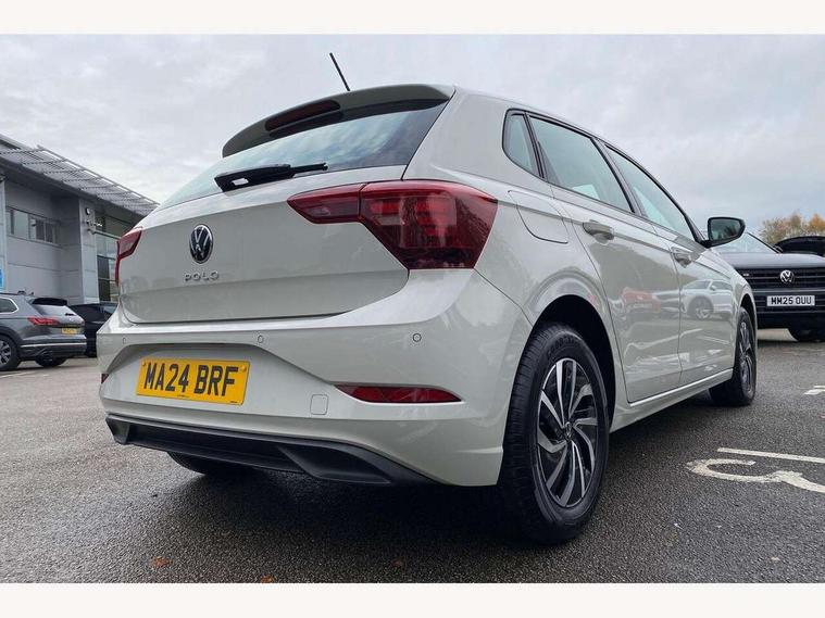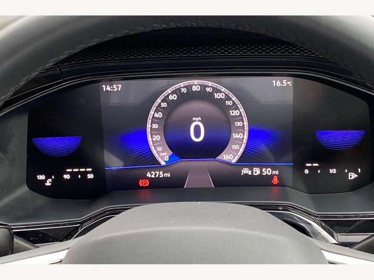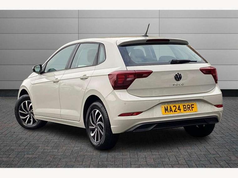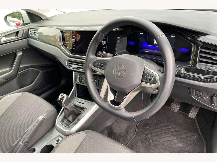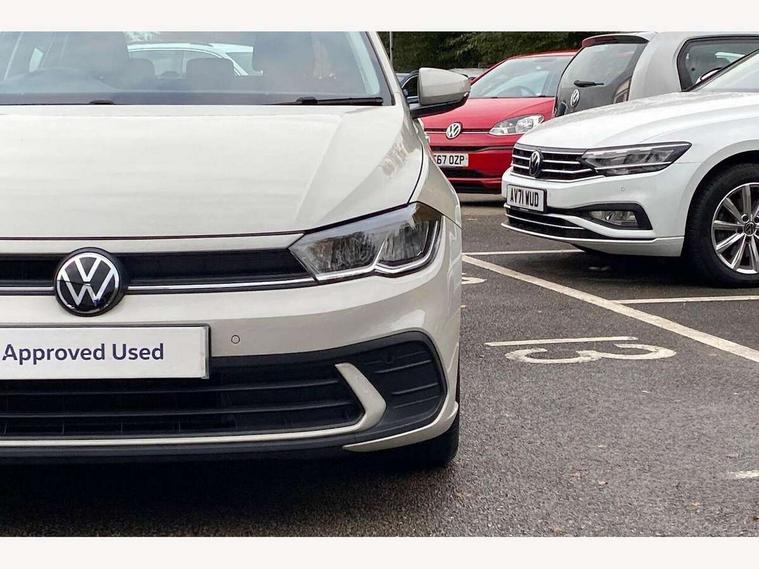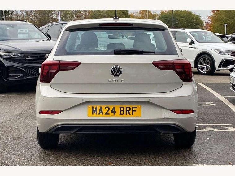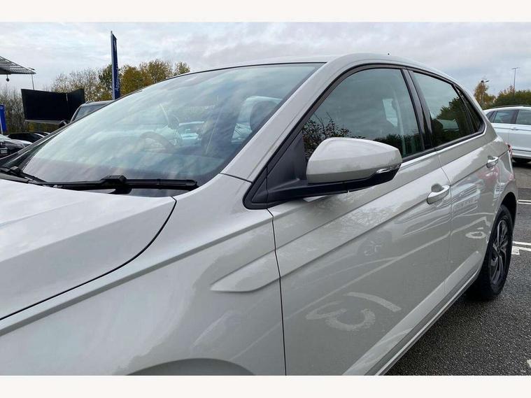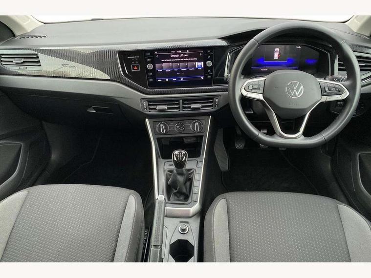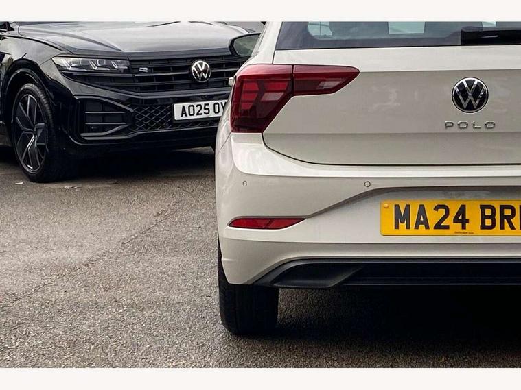Adaptive cruise control without follow-to-stop and speed limiter, Advanced driver attention and drowsiness monitor, Bluetooth mobile phone interface, Dynamic road sign display, Emergency call service, Power assisted speed sensitive steering, Preparation for navigation system with media and internet package, Preparation for We connect and We connect plus, Speedo and rev counter, electronic odometer, trip, service interval display and exterior temperature gauge, Standard rear axle, Travel Assist - Lane keeping system and traffic jam assist, Travel assist including emergency assist, Trip computer, Warning signal and warning light for front and rear seatbelts not fastened, Washer fluid level indicator, Wireless app connect, Front wheel drive, Rear shock absorpion, Start-stop system with battery regeneration (recuperation - energy recovery during braking), DAB Digital radio, Diversity antenna for FM reception, Front and rear 6 speakers, Automatic dimming interior rear view mirror, Automatic headlight control with LED separate daytime running lights with coming/leaving home function, Body colour bumpers with chrome inserts, Body colour door handles, Body colour door mirrors, Electric front windows, Engine badge deletion, Headlight range adjustment, Heat insulating and laminated safety glass windshield, Heat insulating darkened glass in side and rear windows, Heat insulating glass windscreen, LED Headlights, LED rear combination lamps, Power folding adjustable/heated exterior mirrors and front passenger exterior mirror lowering function, Rain sensor, Rear electric windows, Rear fog light, Rear side wing doors, Rear windscreen washer and wiper with interval delay, Third brake light, 12V power socket in centre console, 2 front and 2 rear reading lights with switch off delay and dimmer, 2 USB-C ports in the front, 2 USB-C charging sockets on the center console in the rear, 3 rear head restraints, 60/40 split folding rear seat and rear seat bench not split, Ceramique roof lining, Chrome plated radiator grille inserts, air vent surrounds and light switch surrounds, Door and side trim panel, Driver and front passenger seat height adjustment, Driver/passenger sunvisors with illuminated vanity mirrors, Front centre armrest, Front seat backrest storage pockets, Front standard seats, Handbrake lever handle in leather, Hartley/Thomas cloth upholstery, Headliner in recycled material, Isofix child seat preparation easy-fit (for two outer rear seats, and front passenger seat) compatible with I-size, Leather trimmed gear knob, Luggage compartment cover, Luggage compartment lighting, Removable luggage compartment floor, Single front passenger seat, Standard climatic zones, Standard pedal cluster, Three spoke leather wrapped multifunction steering wheel, Light and vision pack - Polo, 3 point height adj front seatbelts + pretensioners, 3x3 point rear seatbelts, ABS, Driver and front passenger airbag with front passenger airbag deactivation, Drivers and front passengers safety optimised head restraints, ESC (Electronic stability control) + EDL (Electronic Differntial lock) and ASR (Traction control), Extended and predictive pedestrian/ cyclist protection, Front assist with autonomous emergency braking (for Adaptive Cruise Control ACC up to 130 mph), Front curtain and side airbags with center airbag, Front disc brakes, Hill hold control, Manual child lock in rear doors, Rear drum brakes, Single tone horn, Tyre pressure loss indicator, Alarm with interior protection, Anti-theft alarm system with interior monitoring, backup horn, and towing protection, Anti-theft wheel bolts, Electronic engine immobiliser, Lava stone black gloss/matt decorative inserts in dash and front door panels, Low rolling resistance tyres,