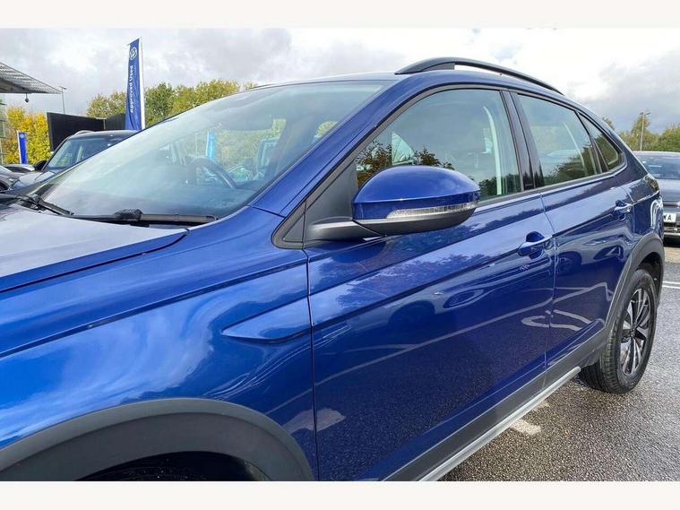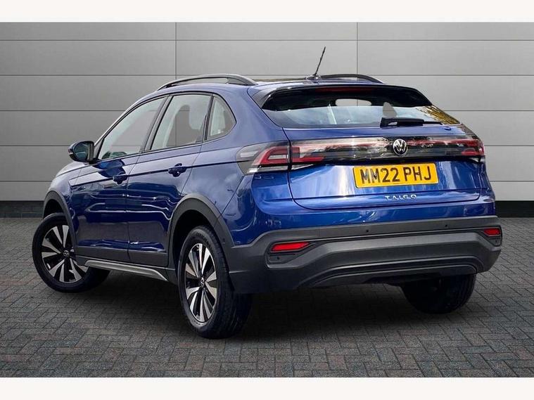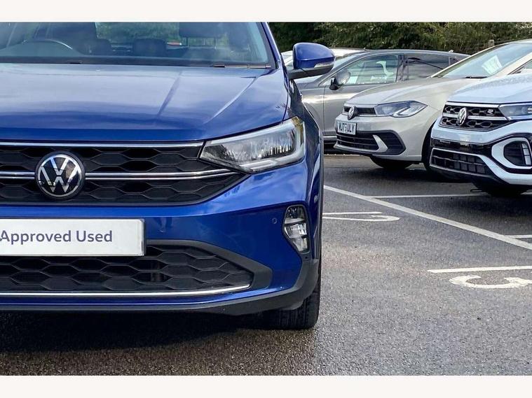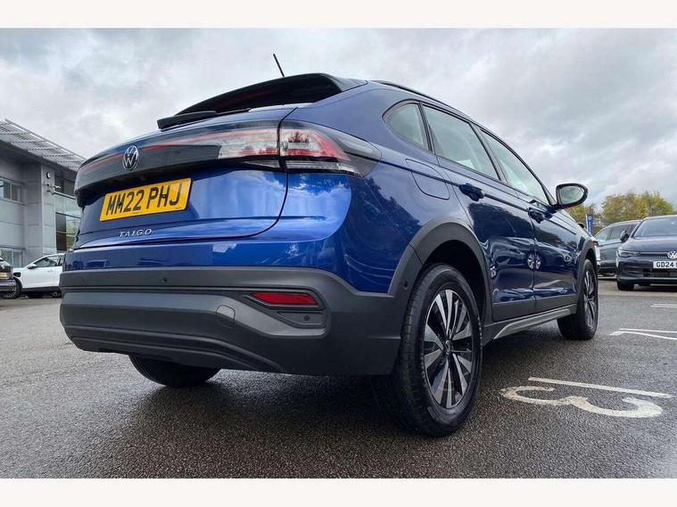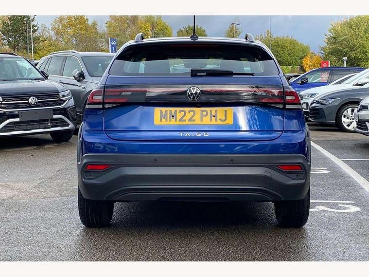 App-Connect including App-Connect Wireless, Driver alert system, e-Call (emergency call), Power Steering, Travel assist including emergency assist, Washer fluid level indicator, Wireless Charging including Bluetooth, Start-stop system with battery regeneration (recuperation - energy recovery during braking), Digital radio reception (DAB+), Diversity antenna for FM reception, WeConnect plus, Ambient lighting with logo projection, Aspherical driver's exterior mirror, Auto headlights, Body coloured bumpers, Body coloured exterior mirror housings and door handles, Electric windows, External USB type C socket and charging sockets, Front fog lamps with cornering function, Headlight range control, Heat insulating glass windscreen, LED headlamps, LED rear combination lamp, LED third brake light, Left convex exterior mirror, Power folding adjustable/heated exterior mirrors and front passenger exterior mirror lowering function, Rear fog light on one side, reversing light on both sides, Rear side wing doors, Rear wash/wipe with intermittent wipe setting, 'Slash/ Austin' Cloth upholstery, 12V socket in centre console, 2 front reading lights, 3 rear head restraints, 3 seat bench in 2nd row, Black carpets, Child seat anchor for child seat system i-Size, 2x top tether and child seat anchor in front on front passenger side, Door and side trim panels in titan black, Driver and front passenger seat height adjustment, Front centre armrest, Handbrake lever handle in leather, Height and reach adjustable steering wheel, Leather trimmed gear knob, Leather wrapped multifunction steering wheel, Luggage compartment floor, Luggage compartment light, Lumbar support for driver's and front passengers seat, Seat covers in titanium black, Single front passenger seat, Split folding backrest with centre armrest and unsplit rear seat bench, Storage compartment under front seats, Sun visors with illuminated vanity mirrors, Chrome Package - Taigo, Drivers assistance pack - Taigo, Light and Sight pack including High beam assist - Taigo, 2 x 3-point seatbelts/outer rear seats with ECE label, 3-point seat belts in front with pretensioner and height adjustment, 3-point seatbelt for centre rear seat, Driver and front passenger airbags with front passenger airbag de-activation, front side and curtain airbags, Driver and front passenger safety-optimised head restraints, Electronic stability control, Extended and predictive pedestrian/ cyclist protection, Front and rear disc brakes, Front curtain and side airbags with center airbag, Hill start assist, Manual rear child locks, Single tone horn, Tyre pressure loss indicator, Anti-theft alarm system with interior monitoring, backup horn, and towing protection, Anti-theft wheel bolts, Lava stone black gloss/matt decorative inserts in dash and front door panels, Low rolling resistance tyres,