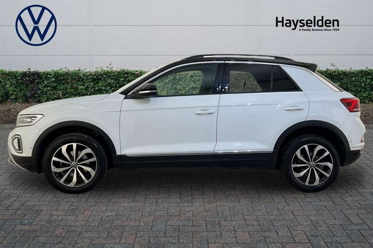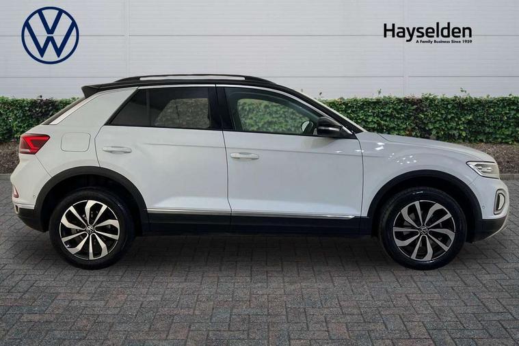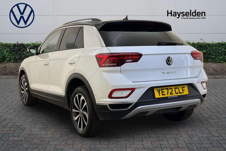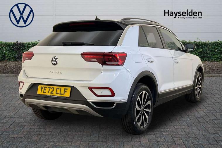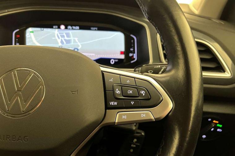 10.25" Digital cockpit pro, Bluetooth mobile phone interface, Driver alert system with fatigue detection, Driver tips and journey analysis, Emergency call service, Lane keeping system Lane Assist, Modified key software - reduce switch off time for key status change to Long no motion, Online services, Park assist including front and rear parking sensors, Service interval indicator, Tailgate/trunk lid release from outside, Think blue trainer driver tips and journey analysis, Warning sound and light for front seatbelts unfastened, Wireless app connect, Battery regeneration during braking, Start/stop function with battery regeneration, Diversity antenna for FM reception, Front and rear 6 speakers, Music playback - MP3, WMA and AAC files, Premium USB cable in choice of either Apple or Android smartphone compatibility, SD card slot, Simultaneous pairing of 2 compatible mobile devices, Title and cover art display, We Connect and We Connect Plus functionality, 3rd brake light, Auto dimming interior rear view mirror, Automatic hazard lights activation under emergency braking, Automatic headlight control with LED separate daytime running lights with coming/leaving home function, Body colour sports bumpers with silver metallic underbody fascia, Dynamic headlight range control with self adjusting whilst driving, Extended roof spoiler, Exterior mirrors aspherical on driver side, convex on front passenger side, External USB type C socket and charging sockets, Front windscreen wiper with intermittent wipe and 4 position delay, Heated rear window, LED Plus headlamps, LED rear combination lamps, LED rear number plate lights, LED tail lamp rear comination lamps, Light mode for poor weather, rain, fog or snow, Power windows with comfort operation and circuit breaker, Rain sensor, Rear exhaust tailpipe, Rear fog light on one side and reversing lights on both sides, Rear side wing doors, Rear wash/wipe with intermittent wipe setting, Remote electrically foldable door mirrors, puddle lights and reverse activated passenger's door mirror, 12V power socket in centre console, 3 rear head restraints, 3 seat bench in 2nd row, 4 load lashing points in luggage compartment, Air care climatronic air conditoning system with active combination filter and 2-zone temperature control, Chrome plated radiator grille inserts, air vent surrounds and light switch surrounds, Door and side trim panel with leatherette insert, Drawer under drivers seat, Front + rear carpet mats, Front centre armrest, Front comfort sports seats, Front cupholders x 2, Front footwell illumination, Instrument lighting, white adjustable panel illumination, Interior ambient lighting and surround lighting, Interior light delay, Isofix child seat preparation, Leather gearshift handle, LED interior light with switch off delay/dimmer and 2 front/rear LED reading lights, Load-through provision with cup holder when folded down ('Unsplit rear seat bench, split folding backrest, with centre armrest), Luggage compartment lighting, Non-folding front passenger seat backrest, Single front passenger seat, Storage compartment in left and right luggage area, Storage compartment in rear doors, Storage compartments in driver and front passenger doors, Sunvisors with illuminated vanity mirrors, Variable boot floor, height adjustable and removable, Driver assistance pack without proactive passenger protection - T-Roc, 3 point height adj front seatbelts + pretensioners, 3 point seatbelts in outer rear with ECE label, ABS, Child locks on rear doors, Driver and front passenger airbag with front passenger airbag deactivation, Driver and front passenger safety-optimised head restraints, Drivers seatbelt reminder, Electronic parking brake, Electronic Stability Control (ESC) inc EDL (Electronic Differential Lock) and ASR (Traction Control), Front and rear passengers curtain airbag system including front side airbags, Front assist with city emergency braking and pedestrian monitoring, Front seat side impact airbags, Predictive pedestrian protection, Rear disc brakes, Single tone horn, Tyre pressure loss indicator, Volkswagen roadside assistance, Alarm with interior protection, Anti-theft alarm system with interior monitoring, backup horn, and towing protection, Remote central locking with SAFELOCK, radio remote control with 2 remote control folding keys, Trims for alloy wheels,