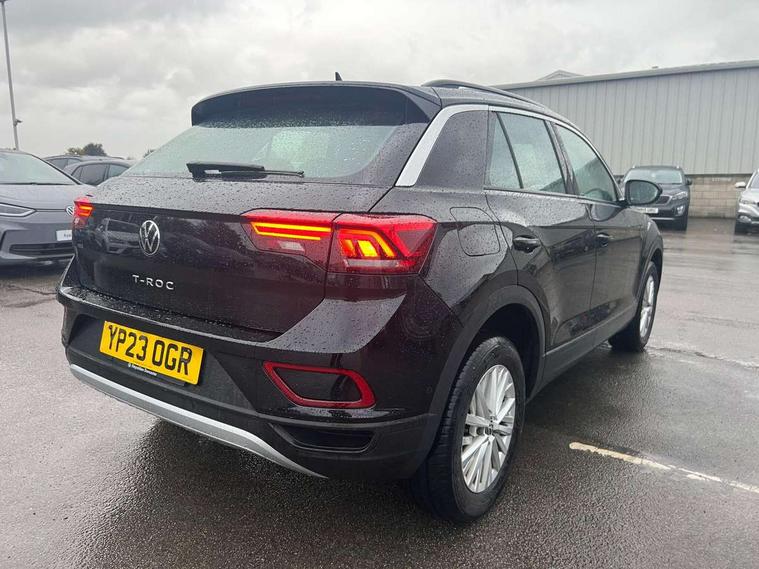 Bluetooth mobile phone interface, Driver alert system with fatigue detection, Driver tips and journey analysis, Emergency call service, Lane keeping system Lane Assist, Modified key software - reduce switch off time for key status change to Long no motion, Online services, Park assist including front and rear parking sensors, Power assisted speed sensitive steering, Service interval indicator, Tailgate/trunk lid release from outside, Think blue trainer driver tips and journey analysis, Warning sound and light for front seatbelts unfastened, Wireless app connect, Battery regeneration during braking, Front shock absorption, Rear shock absorption chassis with increased ride height, Start/stop function with battery regeneration, DAB Digital radio, Diversity antenna for FM reception, Front and rear 6 speakers, Music playback - MP3, WMA and AAC files, Premium USB cable in choice of either Apple or Android smartphone compatibility, SD card slot, Simultaneous pairing of 2 compatible mobile devices, Title and cover art display, We Connect and We Connect Plus functionality, 3rd brake light, Auto dimming interior rear view mirror, Automatic hazard lights activation under emergency braking, Automatic headlight control with LED separate daytime running lights with coming/leaving home function, Black roof rails, Body coloured bumpers and radiator grille with chrome trim and front fog lamps with chrome bezel, Body coloured exterior mirror housings and door handles, Extended roof spoiler, Exterior mirrors aspherical on driver side, convex on front passenger side, External USB type C socket and charging sockets, Front windscreen wiper with intermittent wipe and 4 position delay, Heated rear window, LED Headlights, LED rear combination lamps, LED rear number plate lights, LED tail lamp rear comination lamps, Power windows with comfort operation and circuit breaker, Rain sensor, Rear exhaust tailpipe, Rear fog light on one side and reversing lights on both sides, Rear side wing doors, Rear wash/wipe with intermittent wipe setting, Remote electrically foldable door mirrors, puddle lights and reverse activated passenger's door mirror, 12V power socket in centre console, 3 rear head restraints, 3 seat bench in 2nd row, 4 load lashing points in luggage compartment, Air care climatronic air conditoning system with active combination filter and 2-zone temperature control, Ambient lighting with mirror logo projection, Cloth upholstery, Door and side trim panel in cloth, Drawer under drivers seat, Driver/front passenger seat height adjustment, Front centre armrest, Front comfort sports seats, Front cupholders x 2, Front reading light, Instrument lighting, white adjustable panel illumination, Interior light delay, Isofix child seat preparation, Leather gearshift handle, Load-through provision with cup holder when folded down ('Unsplit rear seat bench, split folding backrest, with centre armrest), Luggage compartment lighting, Lumbar support for driver's and front passengers seat, Non-folding front passenger seat backrest, Single front passenger seat, Storage compartment in left and right luggage area, Storage compartment in rear doors, Storage compartments in driver and front passenger doors, Sunvisors with illuminated vanity mirrors, Variable boot floor, height adjustable and removable, Driver assistance pack without proactive passenger protection - T-Roc, 3 point height adj front seatbelts + pretensioners, 3 point seatbelts in outer rear with ECE label, ABS, Child locks on rear doors, Driver and front passenger airbag with front passenger airbag deactivation, Driver and front passenger safety-optimised head restraints, Drivers seatbelt reminder, Electronic parking brake, Electronic Stability Control (ESC) inc EDL (Electronic Differential Lock) and ASR (Traction Control), Front and rear passengers curtain airbag system including front side airbags, Front assist with city emergency braking and pedestrian monitoring, Front disc brakes, Front seat side impact airbags, Hill start assist, Predictive pedestrian protection, Rear disc brakes, Single tone horn, Tyre pressure loss indicator, Volkswagen roadside assistance, Alarm with interior protection, Anti-theft alarm system with interior monitoring, backup horn, and towing protection, Remote central locking with SAFELOCK, radio remote control with 2 remote control folding keys, Pewter matt decorative inserts for intrument panel, centre console and door panels at the front, Trims for alloy wheels,