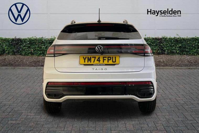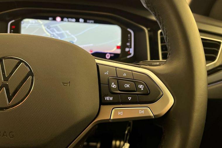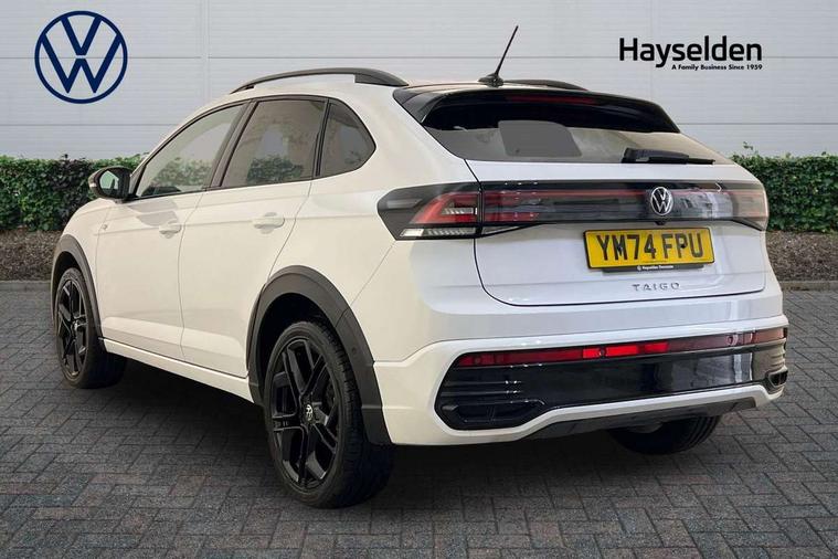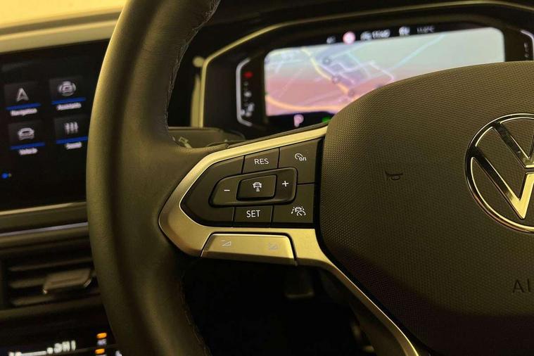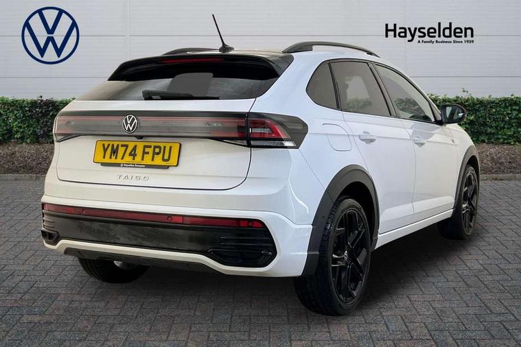Adaptive cruise control, Advanced driver attention and drowsiness monitor, App-Connect including App-Connect Wireless, Digital cockpit pro - 10.25" high resolution TFT dash display screen with customizable menus and information, Driving profile selection, e-Call (emergency call), Power Steering, Travel assist including emergency assist, Washer fluid level indicator, Wireless Charging including Bluetooth, Start-stop system with battery regeneration (recuperation - energy recovery during braking), XDS electronic differential lock for improved traction and handling, Digital radio reception (DAB+), Diversity antenna for FM reception, WeConnect plus, Ambient lighting with logo projection, Aspherical driver's exterior mirror, Auto headlights, Body coloured bumpers, Body coloured door handles, Cornering headlights, Electric windows, External USB type C socket and charging sockets, LED rear combination lamp, LED third brake light, Left convex exterior mirror, Power folding adjustable/heated exterior mirrors and front passenger exterior mirror lowering function, Rear fog light on one side, reversing light on both sides, Rear side wing doors, Rear wash/wipe with intermittent wipe setting, 12V socket in centre console, 2 front reading lights, 3 rear head restraints, 3 seat bench in 2nd row, Air care climatronic air conditoning system with active combination filter and 2-zone temperature control, Black carpets, Black roof lining, Child seat anchor for child seat system i-Size, 2x top tether and child seat anchor in front on front passenger side, Chrome bezel for instrument cluster, vents, door handles + gear shift, Driver and front passenger seat height adjustment, Front + rear carpet mats, Front centre armrest, Front footwell illumination, Front sports comfort seats, Heated front seats, Height and reach adjustable steering wheel, Interior ambient lighting and surround lighting, Karoso artvelours cloth upholstery, Leather trimmed gear knob, Leather wrapped multifunction steering wheel, Luggage compartment floor, Luggage compartment light, Lumbar support for driver's and front passengers seat, Seat covers in grey + titanium black, Single front passenger seat, Split folding backrest with centre armrest and unsplit rear seat bench, Stainless steel pedals, Storage compartment under front seats, Sun visors with illuminated vanity mirrors, Black design pack - Taigo Black Edition, Black roof pack with mirror housing - Taigo, IQ.LIGHT - LED matrix headlights pack - Taigo, Light and Sight pack including High beam assist - Taigo, 2 x 3-point seatbelts/outer rear seats with ECE label, 3-point seat belts in front with pretensioner and height adjustment, 3-point seatbelt for centre rear seat, Adaptive driver and front passenger airbags with passenger airbag deactivation function, Driver and front passenger safety-optimised head restraints, Electronic stability control, Extended and predictive pedestrian/ cyclist protection, Front and rear disc brakes, Front curtain and side airbags with center airbag, Hill start assist, Manual rear child locks, Single tone horn, Tyre pressure loss indicator, Anti-theft alarm system with interior monitoring, backup horn, and towing protection, Grey anodised matte decorative inserts in dash and front door panels, 18" York black alloy wheels with anti theft wheel bolts, Breakdown kit, Low rolling resistance tyres,
