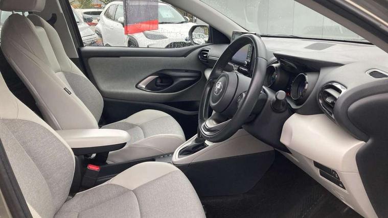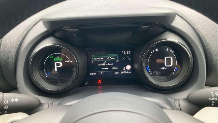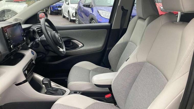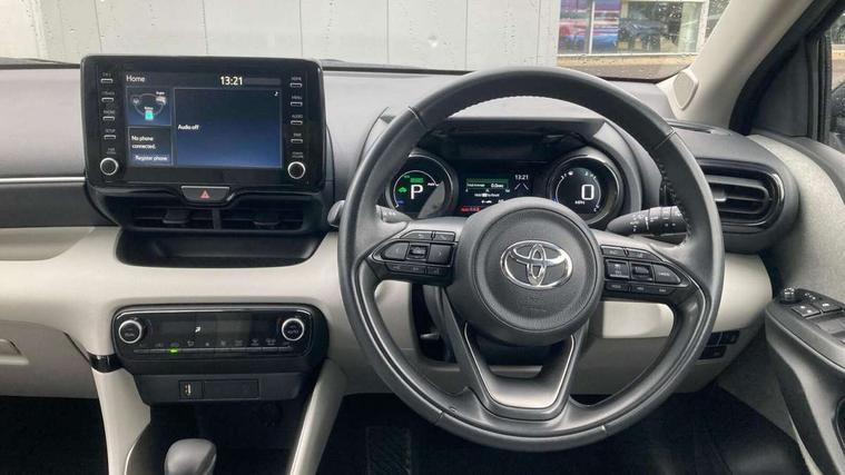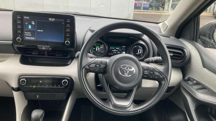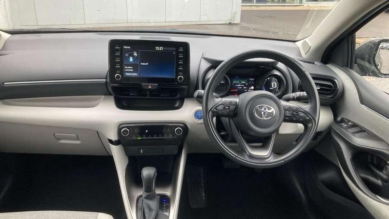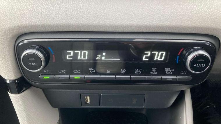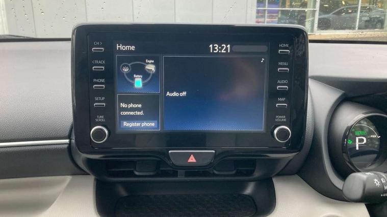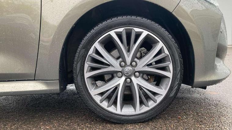 Adaptive cruise control, Adjustable speed limit with speed warning, Blind spot monitoring, Bluetooth connectivity, Colour binocular inspired displays with digital speedometer, E-call, Electric power steering, Front and rear parking sensors with intelligent clearance sonar and automatic braking, Hybrid energy display, Multi information display switches on steering wheel, Reversing camera, Smartphone integration with Apple CarPlay and Android auto, Vehicle Stability Control (VSC), 6 speakers, 8" Multimedia display touch screen, USB connection, Acoustic windscreen glass, Automatic headlights, Automatic windscreen wipers with rain sensor, Automatically retractable door mirrors, Body coloured door mirrors, Electric adjustable heated door mirrors, Follow me home headlights, Front auto power windows with anti jam protection, Full LED rear lights, LED daytime running lights, LED front fog lights, LED Headlights, LED High mounted stop lamp, Painted front grille, Rear auto power windows with anti jam protection, Rear privacy glass, Rear side wing doors, Rear spoiler, Rear wiper, Satin lower front grille, Shark fin antenna, Turning signal integrated indicators in door mirrors, 3 adjustable rear headrests, 3 spoke leather steering wheel, 60/40 split folding rear seat, Active headrests, Adjustable boot height, Coat hooks in rear grab handles, Cup holders (2 front & door), Data Communication Module (DCM) connected services, Dual zone automatic air conditioning, Fabric seat with partial synthetic leather upholstery, Front armrest, Front sport seats, Glovebox, Height adjustable driver's seat, Height adjustable passenger seat, Isofix seat fixing, Leather gearshift, Map pockets on the backs of the front seats, Pollen filter, Shopping bag hooks, Single front passenger seat, Tilt/telescopic steering column, 3 point seatbelts on all rear seats, ABS+EBD+Brake assist, Electronic parking brake, Emergency brake light system (EBS), Front passenger airbag on/off switch, Front seatbelt reminder, Hill start assist control (HAC), Rear child proof door locks, Rear seat belt reminder, Supplemental Restraint System (SRS) 8 airbags: Driver & passenger's airbags, dual side curtain airbags, side impact airbags, front centre airbag, Toyota Safety Sense 2, Precollison + Night time Pedestrian & Cyclist Detection, Lane Trace Assist, Auto High Beam, Intelligent ACC & Road Sign Assist, Tyre pressure warning system, Alarm/immobiliser, Keyless smart entry with push button start, Remote powered central double locking doors, Satin chrome interior styling, Soft touch instrument panel, Space saver spare wheel,