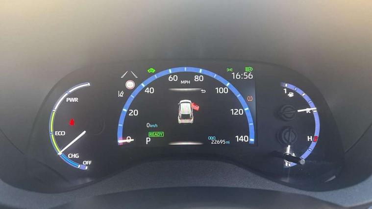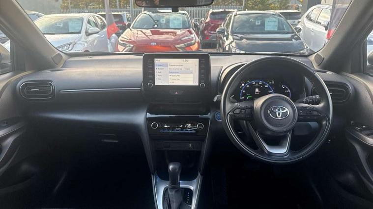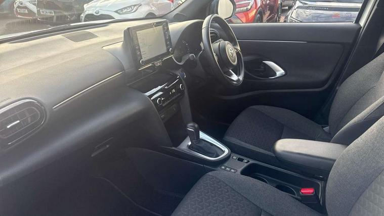 7" Multi information display screen, 8" Toyota touch 2 multimedia system with Smartphone integration with Apple CarPlay and Android auto, Adjustable speed limiter, Bluetooth connectivity, Driver attention alert system, eCall emergency system, Electric power steering, Full range intelligent adaptive cruise control, Hybrid system indicator, Key reminder warning, Lane trace assist, Multimedia, audio, telephone and voice recognition switches on steering wheel, My T Connected services, Pre-collision system enhanced with emergency steering assist, Reversing camera, Road sign assist - RSA, Steering assisted vehicle stability control, 6 speakers, DAB Digital radio, USB connection, 3rd brake light, Acoustic windscreen glass, Aluminium roof rails, Anti-jam protection on power windows, Auto high beam [AHB] with on/off switch, Automatic headlights, Black lower front grille, Black Shark-fin antenna, Black upper front grille, Black wheel arch mouldings, Body colour door handles, Body colour front bumper, Body colour rear bumper, Electric adjustable heated door mirrors, Follow me home headlights, Front and rear electric windows with auto up/down function, Front intermittent wipers, Headlight cut off reminder, Indicators integrated on door mirrors, Intermittent rear wiper, LED daytime running lights guide, LED front fog lights, LED front light guide, LED Indicators, LED projector headlights, LED rear light guide, Manual headlight levelling, Manually retractable door mirrors, Noise reduction layer on windscreen, Privacy glass, Rain sensor, Rear LED lights with sequential indicators, Rear side wing doors, Rear spoiler, Rear window defogger, 12v power outlet - front, 2x Rear coat hooks, 3 seat bench in 2nd row, 3 spoke leather steering wheel, 40:20:40 split folding rear bench seat, Adjustable speed limiter switch on steering wheel, Auto air conditioning, Black roof lining, Boot light, Central armrest, Centre console in light blue ambent lighting, Driver and front passenger personal lights, Fabric door trim, Fabric upholstery, Footwell in light blue ambient lighting, Front console box, Front cup holders, Front head restraints, Glovebox, Height adjustable driver's seat, Height adjustable front passenger seat, Hooks for luggage holding belts, ISOFIX child restraint system, Lane departure alert switch on steering control, Leather gearshift, Light blue ambient lighting on front doors, Manual telescopic and tilting steering wheel, Mirror on driver and passenger sun visor, Pollen air filter, Rear cup holders, Rear head restraints, Single front passenger seat, Soft tonneau cover, 3x3 point rear seat belts, ABS+EBD+Brake assist, Driver and passenger central airbags, Driver and passenger front airbags, Driver and passenger side airbags, Electronic parking brake, Emergency brake light system (EBS), Front seat belt reminder, Hill start assist control (HAC), Passenger airbag on/off switch, Pre-collision system with pedestrian and cyclist detection, Rear door child safety locks, Rear passenger side airbags, Rear seat belt reminder, Traction control, Tyre pressure warning system, Immobiliser, Intrusion alarm, Keyless smart entry with push button start, Power door locks, Power passenger window lock, Remote door lock, Tyre repair kit,