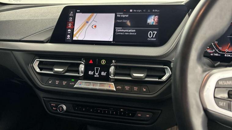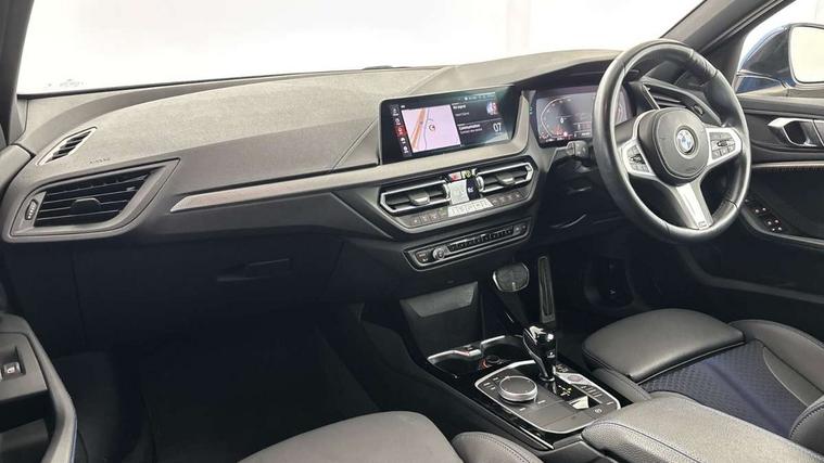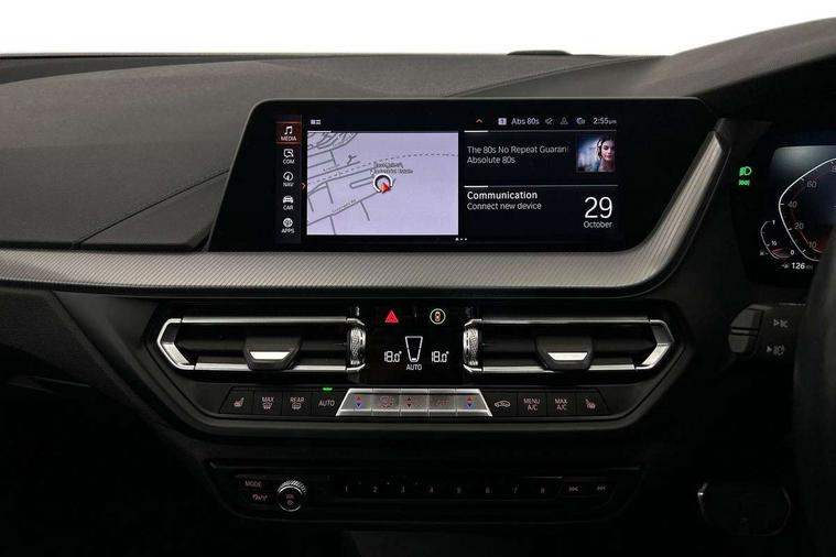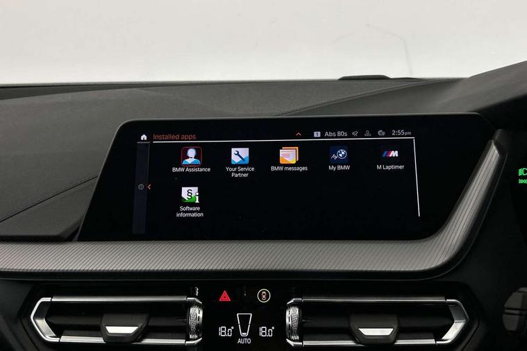 Active guard plus, Attentiveness assist, Bluetooth / WiFi interface for wireless connection of mobile terminal devices and audio streaming, BMW ConnectedDrive online services, BMW Teleservices, Check Control warning system for monitoring of lights and door/luggage compartment open warning, Cruise control with brake assist, Eco pro mode, Front axle single joint with specific axle kinematics to minimise drive influences on steering + provide increased rigidity agile driving behaviour, Integrated owners handbook, Lane departure warning system, Oil sensor for level and grade, On board computer, Optimum shift indicator, Personal Profile, Pull away assistant, Rigidly mounted rear subframe - Multi link construction with separate spring / damper configuration and excellent driving characteristics, Speed limit Info including no-overtaking indicator, Speed limiter, Aluminium lightweight construction, Anti roll bar front and rear, Balancer shaft, Double VANOS twin scroll turbocharging system, Drive Performance Control, Electronic differential lock, High precision injection, M sport suspension, Petrol Particulate Filter, Twin tube gas filled shock absorbers with degressive characteristic curve, VALVETRONIC engine management, DAB Digital radio, Auto dimming rear view mirror, Automatic headlight beam throw control, Automatic windscreen wipers and automatic headlight, Body colour door handles, Body colour mirror caps, Body colour roof trims, Chrome 'M' logo side designation, Chrome exhaust twin tailpipes round 90mm in left, Chrome kidney grille frame with Satin Aluminium struts, Direction indicator side lights in exterior mirrors, Fading support, Folding side mirrors with auto dimming/folding wing mirrors with auto dimming, Follow me home headlights, Front and rear bumper system with replaceable deformation elements, Front and rear electric windows with open and close fingertip control, anti trap facility and comfort closing, Front door sill finishers in black plastic with M designation in metallic look, Green tinted heat protection glazing, Heated, electrically adjustable exterior mirror aspheric on driver side, convex on passenger side, High gloss shadowline window frame, Recess cover mirror frames and B/C pillar embelisher trim, High level third brake light, Integrated front windscreen with washer jets, LED daytime running lights, LED eyebrow turn indicators, LED front fog lights, Lightweight engineering, Matt black air guide grilles, Matt black wheel arch trim, Model designation on electric bootlid, Nearside reverse light in rear light cluster, Preparation for high beam assistant, Rear fog lights, Rear side wing doors, Rear window wiper, Shark fin antenna, Trailer stabilisation logic, Visible VIN plate, Welcome lighting, 12V power socket in front centre console with blanking plug, 3 rear seat head restraints, 3 seat bench in 2nd row, 3 spoke sports leather steering wheel with black leather and stitching, pearl chrome decorative finish, specific M Badge, Ambient interior lighting, Anthracite headlining, Child seat ISOFIX attachment for two outer rear seats and front passenger seat with anchorage points, Conditioned based service, Driver and front passenger seat heating, Floor mats in anthracite velour with contrasting colour seam to match contrast stitching on instrument panel, Folding rear clothes hook, Four grab handles integrated in roof lining, Front and rear door pockets with bottle holders, Front and rear side armrest integrated into door trim, Front armrest, Front sports seats, Glove compartment, Height adjustable front head restraints, Luggage compartment for bag hooks on left and right, foldable luggage compartment liner and two lashing eyelets, Manual adjust steering wheel, Multi-function controls for steering wheel, Single front passenger seat, Storage compartment in centre console, Sun visors with vanity mirrors and insert tab, Two front centre console cupholders, Two zone automatic air conditioning, Additional interior lighting pack - 1 Series, Additional storage compartment pack with code 493 -1 series, BMW live cockpit professional pack- 1 Series, Connected pack professional - 1 Series, Interior lights pack - 1 Series, M Sport exterior styling aerodynamics pack - 1 Series, 2 tone horn, 3 point seatbelts on all seats, front pyrotechnic belt tensioners, stopper and belt force limiters, rear coded belt buckles, Airbags - Front driver/passenger, front and rear curtain head protection, front side, manual deactivation of front passenger airbag, Anti lock braking system (ABS) with brake assist, BMW emergency call, Brake drying, Braking readiness, Child proof locking system in rear door, City braking function, Comfort modes, Cornering brake control, Crash sensor activating central locking release, hazard warning lights, fuel cut off, interior lighting + activation of safety battery terminal clamp, Driver and front passenger seat belt security check, Dynamic stability control + (DSC+), Dynamic Traction Control - DTC, Electrically operated hand brake including automatic hold function, Front and rear disc brakes, Seatbelt warning, Side impact protection, Tyre pressure monitoring system, Warning triangle and first aid kit, Central locking switch for all doors, fuel filler cap and luggage compartment, Deadlocking function system to all doors, Drive away locking system on all doors and luggage compartment with de-activated in iDrive settings, Locking wheel bolts, Remote control with integrated key with High-gloss Black inlay and M designation and 1 button for open/ close lock, window, open luggage compartment, Start/stop button illuminated in centre console with keyless engine start and auto start stop deactivation button, Thatcham Cat.1 alarm and immobiliser, Wheel slip limitation close to the actuator (ARB), Contrast stitching on instrument panel, Electrically powered 12V compressor, Reduced rolling resistance tyres,