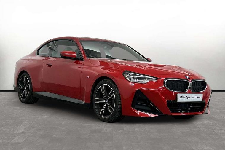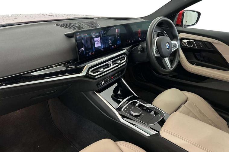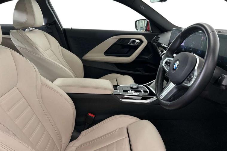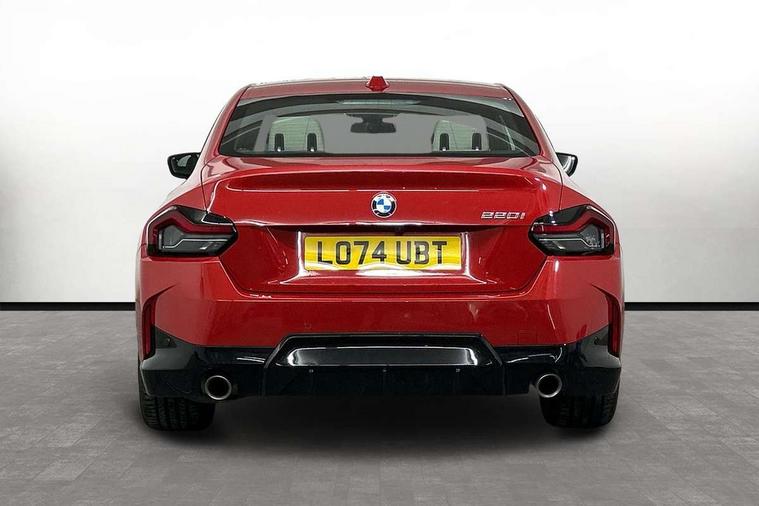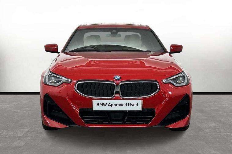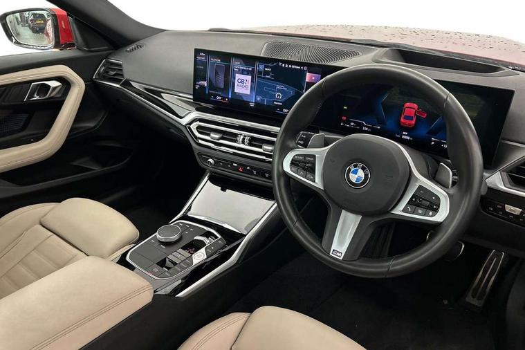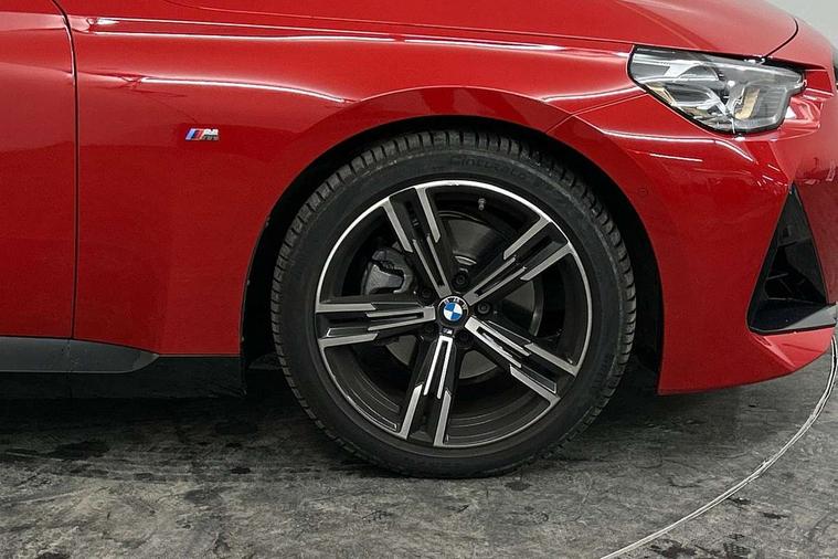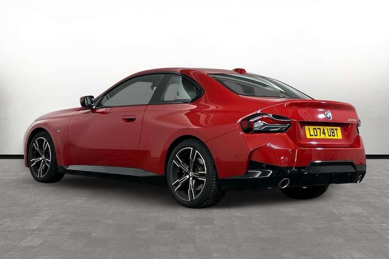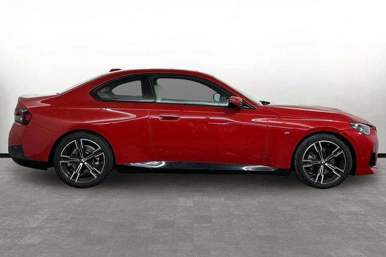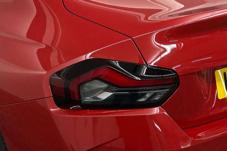 2 USB connections for charging and transferring data, Active guard plus, Attentiveness assist, Bluetooth with USB, BMW ConnectedDrive online services, BMW Intelligent Personal Assistant, BMW Live cockpit plus, BMW operating system 8 with variable, configurable widgets display information in real time, BMW Teleservices, Check Control warning system for monitoring of lights and door/luggage compartment open warning, Control Infotainment, Direct selection buttons, Drive off assistant, Eco pro mode, Electric power steering, eSim with 5G connectivity, Front and rear parking sensors, iDrive controller with turn and press function, Integrated owners handbook, Intelligent functions, Oil sensor for level and grade, Optimum shift indicator, Personal Profile, Smartphone integration, Touch operation on control display, Variable sport steering, Widescreen multi-media display, WiFi interface for wireless connection of mobile terminal devices, Aluminium lightweight construction, Balancer shaft, BMW TwinPower Turbo four-cylinder petrol engine, Double VANOS, Drive performance control with ECO PRO comfort + sport mode, Electronic differential lock, High precision injection, M sport suspension, Petrol Particulate Filter, Steptronic transmission with gearshift paddles, Twin scroll turbocharger with Valvetronic, DAB tuner, Acoustic windscreen wipers for reduced driving noise, Automatic windscreen wipers and automatic headlight, Body colour door handles flush with door surface, Body colour door mirrors, Body colour front and rear bumpers, Daytime running lights, Electric windows - front and rear, with open/close fingertip control and trap release, Exhaust tailpipes x2 - 90mm in left and right, Fading support, Front and rear bumper system with replaceable deformation elements, Front door sill finishers in black plastic with BMW designation, Front windscreen wipers with integrated washer jets, Green tinted heat protection glazing, High beam assistant, High gloss black sill, bumper trim sides and diffuser insert, High level third brake light, Indicators integrated int mirror housing, Interior rear-view mirror with automatic anti-dazzle function, LED registration plate light, LED technology rear tail lights, brake lights and turn indicators, Lightweight engineering, M high gloss shadowline, One piece kidney grille with hight gloss chrome surround, Rear boot, Rear fog lights, Reversing light in rear light cluster, Shark fin antenna, Single part LED rear lights with smoked glass components, Trailer stabilisation logic, Visible VIN plate, 12V power socket in front centre console with blanking plug, 2 cupholders in front centre console, 2 zone automatic air conditioning, Ambient lighting, Compartment in front of cupholder, Conditioned based service, English handbook, Folding rear seat head rests, Front and rear side armrests integrated into door trim, Front armrest, Front door pockets, Front head restraints, Heated front seats, Illuminated glove compartment with separate small compartment, M headliner Anthracite, M sport leather steering wheel, Manually adjustment steering wheel column, Rear seat backrest with manual 40:20:40 split folding, Rear seat centre foldable armrest with integrated cup holder, Single front passenger seat, Storage compartment between rear seats, Storage tray and compartment with cover in centre console, Sun visors with vanity mirrors and insert tab, Through loading system with 40/20/40 split folding 2 rear seat in 2nd row, Velour floor mats, Additional storage compartment pack without USB - 2 Series Coupe, Connected pack professional - 2 Series Coupe, 2 tone horn, Anti lock braking system (ABS) with cornering brake control, Automatic Stability Control (ASC), BMW emergency call, Brake drying, Child seat ISOFIX attachment for the two outer rear seats, Crash sensor activating of airbags, Unlocking doors, hazard warning lights, interior light, safety battery terminal, Deactivation of fuel pump in the event of a crash, Driver and front passenger airbags, Driver and front passenger side airbags, integrated in the door side seat backrest bolsters for all seat variants, Dynamic brake control, Dynamic stability control + (DSC+), Dynamic Traction Control - DTC, Electrically operated hand brake including automatic hold function and automatic release when driving off, Front and rear disc brakes, Front centre airbag between driver and front passenger seats, Front passenger airbag deactivation, Head airbags for all 4 outer seats, PC iBrake (Post crash approach control warning with light braking function), Seat belt security check for driver and front passenger, Seatbelt warning, Side impact protection, Three point seat belts on 4 seats including front belt stopper, pyrotechnic belt tensioners and belt force limiters, Tyre pressure monitoring system, Warning triangle and first aid kit, Alarm system (Thatcham 1) with remote control and electronic engine immobiliser, Central locking switch for all doors, fuel filler cap and luggage compartment, Deadlocking function system to all doors, Drive away locking system on all doors and luggage compartment, Locking wheel bolts, Start/Stop button (illuminated) in centre console with keyless engine start and Auto Start-Stop deactivation button, Two remote control key with integrated key - one button for open and close doors/fuel flap/tailgate and separate button for unlock luggage compartment, Electrically powered 12V compressor, Reduced rolling resistance tyres, Tyre repair kit,