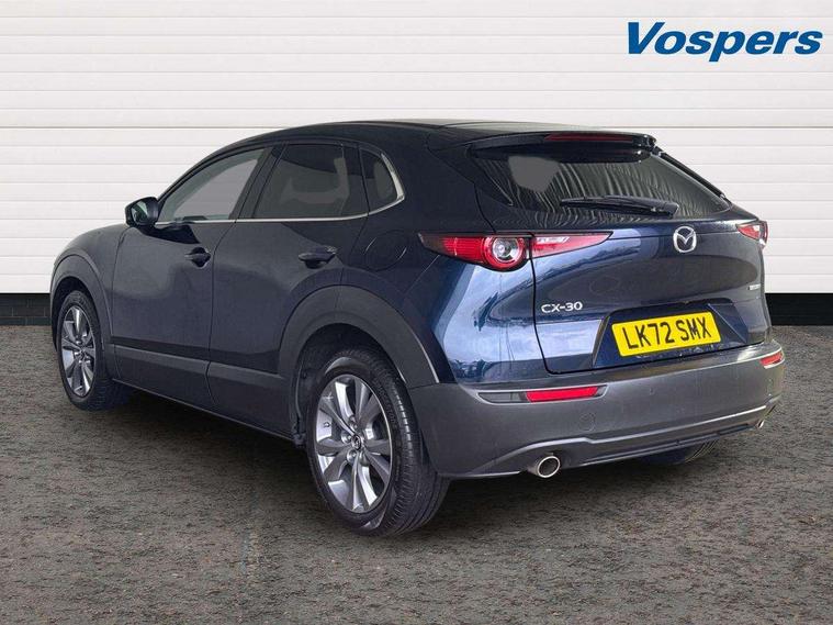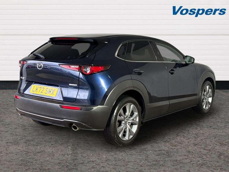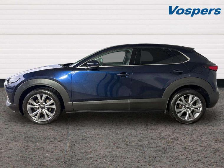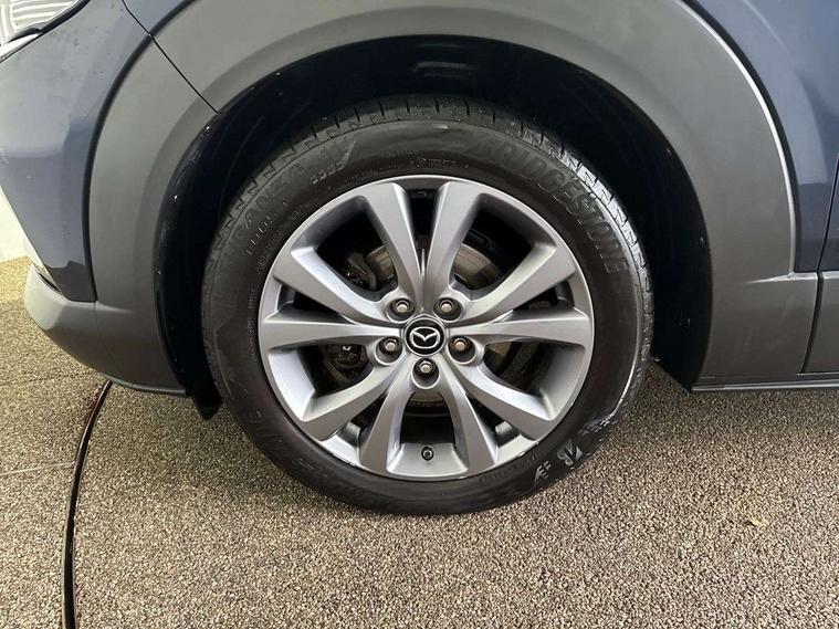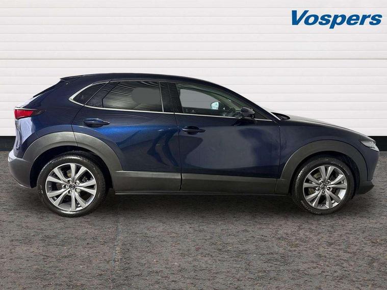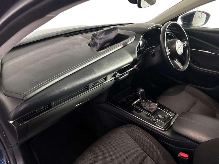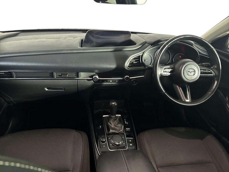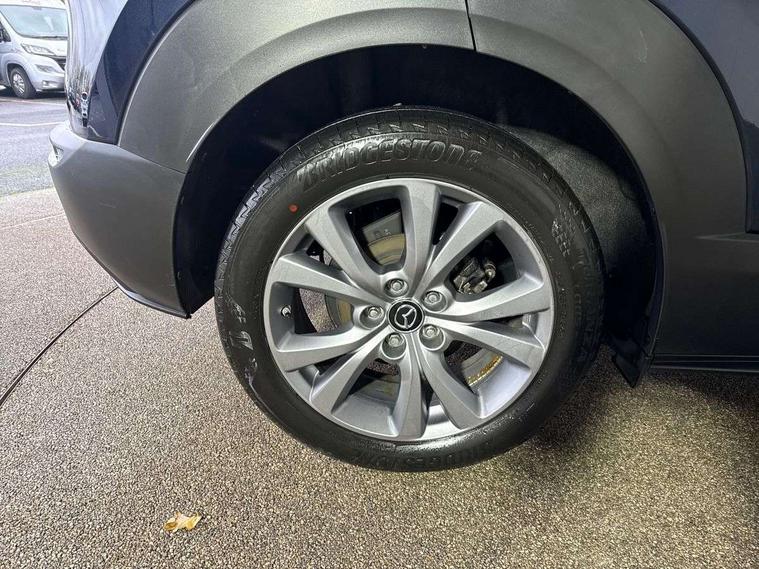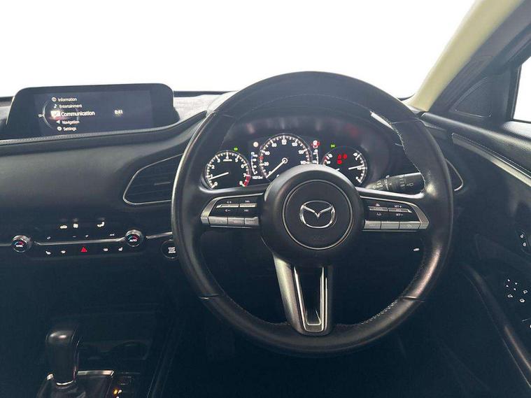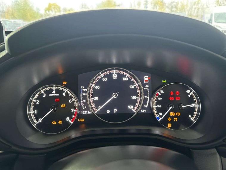 7" TFT Colour driver instrument panel display, 8.8" Colour centre touch screen display with Mazda Connect infotainment, Adaptive cruise control (Mazda radar cruise control) features stop and go, Apple car play/Android Auto, Blind spot monitoring with rear cross traffic alert, Drive mode selector, Driver attention alert system, E-call with GPS, Emergency stop signalling system, Engine start/stop button, Front and rear parking sensors, Integrated bluetooth, Integrated Mazda navigation system, Intelligent speed assist, Lane keep assist system (LAS) with Lane departure warning system (LDWS), Mazda connected services, PAS, Power lift gate, Reversing camera, Service indicator, Tailgate, Traffic sign recognition, Trip computer, Windscreen projected colour active driving display (HUD), Cylinder Deactivation, i-stop, 2 USB charging ports in front inner central armrest, AM / FM / DAB radio with 8 speakers, Multimedia Commander including separate volume dial, Steering wheel mounted audio/bluetooth controls, Adaptive LED Headlights, Auto dimming driver's door mirror, Auto headlight levelling, B-pillar and C-pillar garnishes in piano black finish, Body coloured, electrically adjustable, heated auto power folding door mirrors with integrated indicators, Chrome finish signature wing in front grille, Coming/leaving home lighting function, Dual chrome exhaust, Dusk sensing headlights, Electric front/rear windows with one touch auto up/down, Frameless auto dimming interior rear view mirror, Front kodo turn signal, Gloss black front grille, Gloss black rear roof spoiler, High beam assist, LED signature daytime running lights, Privacy glass (rear side windows and rear screen), Rain sensing front wipers with adjustable speed and intermittent wipe, Rear fog lights, Rear side wing doors, Rear wiper, Signature LED rear combination lights, Third brake light, 12V power outlet in centre console, 3 seat bench in 2nd row, 60/40 split fold down rear seats, Chrome horn pad ring, Chrome interior trim accents with steering wheel centre bezel, surround of engine start / stop button and glove box handle, Cloth upholstery with interior accents, Dark cloth door panel inserts, Dashboard, door cards and front centre armrest in black cloth, Driver and front passenger visors with covered vanity mirror and driver ticket holder, Driver seat manual slide, recline, height and seat tilt adjust, Driver, front passenger and two rear door storage, Driver, Front passenger and two rear grab handles with coathooks, Dual zone climate control air conditioning with rear air vents, Folding rear centre armrest with two cup holders, Front and rear (x3) head restraints, Front and rear LED lighting, Front armrest, Front centre storage with two cupholders with lid, Front passenger seatback pockets, Front passengers seat manual slide, recline and height adjustment, Glovebox illumination, Heated front seats with 3 stage setting, ISOFIX child seat anchorage points attached on outer rear seats, Leather wrapped gear shift knob, Leather wrapped steering wheel with telescopic and tilt adjustment, LED luggage compartment lighting, Light roof headlining and pillars, Paddle shift controls, Roof mounted sunglasses holder, Single front passenger seat, 3 point ELR front seat belts x2 with pretensioners, 3 point ELR rear seat belts, Anti-lock braking system (ABS), Drivers knee airbag, DSC - Dynamic Stability Control, Electronic parking brake with auto disengage function and auto hold function, Front and rear curtain airbags, Front dual stage driver and single stage front passenger airbags, Front passenger airbag cut-off switch, Front side airbags, Front smart city brake support, G-Vectoring control plus, Hill launch assist, Manual child lock in rear doors, Mild Hybrid system with regenerative braking, Seatbelt reminder for driver/front passenger and rear seats, Traction control system (TCS), Tyre pressure monitoring system (TPMS), Remote central locking with deadlocking and automatic door lock when driving, Smart keyless entry, Thatcham accredited alarm and immobiliser, 18" Silver alloy wheels, Emergency tyre repair kit,