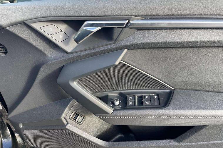 Audi drive select (Auto, Comfort, Dynamic, Efficiency and Individual), Audi smartphone interface, Audi Virtual Cockpit - 10.25" digital and colour instrument cluster, Automatic start/stop system with recuperation, Bluetooth interface, Collision avoidance assistant, e-Call (emergency call), Electromechanical power speed sensitive steering, Lane departure warning system, MMI Navigation Plus with high resolution 10.1" colour touch screen display, Service indicator, Trip computer, Voice control system with natural language interaction, 3 pin 10 amp domestic charging cable, 3.6 kw On-board charger, Standard suspension, Type 2 mode 3 32 amp charging cable, Type 2 socket for AC charging, 2xUSB-C connection with data and charging functions, 6 passive loudspeakers, DAB Digital radio, 3rd brake light, Acoustic glass windscreen, Aluminium window trim, Auto dimming frameless rear view mirror, Electrically adjustable/heated/folding/auto dimming door mirrors with integrated LED indications + kerb view function for passenger side, Front electric windows, Illuminated aluminium inserts front door sills with S logo, LED daytime running lights, LED headlights with LED rear lights and dynamic rear indicators, Light and rain sensors, Privacy glass - dark tinted rear window, rear door and side windows, Rear electric windows, Rear side air outlets in grained matt black, Rear side wing doors, Rear wiper, S line bumpers, S roof spoiler, 12V socket and storage compartment in front centre console, 3 seat bench in 2nd row, 40/20/40 split folding rear seat bench with cupholder, Black cloth headlining, Dual zone electronic climate control, Front and rear centre armrest in leather, Front and rear headrests, Front/rear floor mats, Height and reach adjustable steering wheel, Illuminated vanity mirror, Interior lighting - glove compartment light and right hand side, Luggage compartment floor covering, Manual boot compartment lid, Manually adjustable front seats, Seat side bolsters, Single front passenger seat, Stainless steel pedals and front footrest in black, Twin leather upholstery with front sports seats S embossed logo, Aluminium interior elements pack - A3 Sportback, S line styling pack - A3 Sportback, 3x3 point rear seat belts, Audi pre sense front, Driver and front passenger airbag with passenger airbag deactivation, Electronic Stabilisation Control (ESC) including ABS, ASR and EDL, First aid kit with warning triangle and 2 safety vests, Front side airbags with head airbags and interaction airbag, Pre-sense front with pedestrian and cyclist detection, Seatbelt monitoring, Tyre pressure loss indicator, Anti theft alarm, Anti-theft wheel bolts, Immobiliser, Manual child locks, Remote control central locking, Accent surfaces in the dashboard and centre console in platinum grey silk effect paint finish, Dark spectrum aluminium inlays, Tool kit, Tyre repair kit,