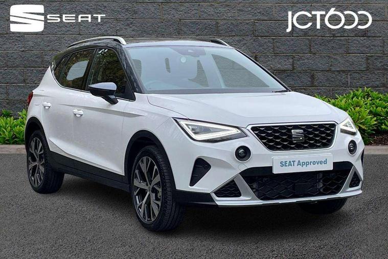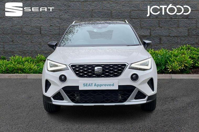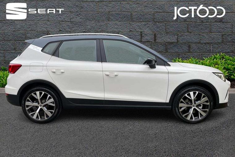 'Lights On' Reminder warning buzzer, 10" Digital cockpit, Digital clock, E-call, Electric speed sensitive power steering, Front parking sensor, Full link smartphone integration with mirror link, wireless apple carplay, Google android auto + USB Type C cable for apple and android devices, Lane keeping system, Low fuel warning light, Outside temperature display, Park assist system, Rear view camera, RPM counter, Trip computer, Wireless phone charger, 6 speakers, 9.2" colour touchscreen with navigation system, voice control and USB port (type c), Bluetooth interface for hands free and audio streaming, DAB digital radio and AM/FM radio, Steering wheel mounted audio controls, Anti theft roof antenna, Auto dimming interior rear view mirror, Automatic activation of hazard warning lights, Body coloured bumpers, Body coloured door handle inserts, Chrome roof rails and window surrounds, Electric front/rear windows, Electrically adjustable, heated and folding door mirrors, Front fog lights with cornering function and rear fog light, FULL LED automatic headlights with dynamic headlight range control, coming and leaving home, LED daytime running lights, Hidden exhaust pipe, LED rear tail lights and licence plate lights, Protective side mouldings, Rain sensing wipers, Rear side wing doors, Rear spoiler, Rear window wash/wipe, Roof colour door mirrors, Third brake light, Visible VIN plate, 2 cupholders, 3 seat bench in 2nd row, 60/40 split folding rear seat, Aircare filter, Black interior roof, Double boot floor, Driver sunvisor with covered mirror + card holder, Dual zone climate control, Front comfort seats, Front courtesy light with front reading lights, Front seat back storage pockets, Gear shift indicator, Heated front seats, Height adjustable front seats, Height/reach adjustable steering column, Illuminated air vent surrounds, Illuminated boot, Instrument lighting with brightness control, Interior ambient lighting, Interior light in footwell, central console and door panel, ISOFIX points in outer rear seats with top tether anchorage points, Leather steering wheel/gear knob/handbrake, Microsuede cloth upholstery, Passenger sunvisor with vanity mirror, Potentiometer, Single front passenger seat, Storage net on centre console, Two front and three rear height adjustable headrests, Interior chrome pack - Arona, Safe and driving pack (S) - Arona, Safety and driving pack (M) - Arona, Storage pack - Arona, 3 point seatbelts on all rear seats, ABS, Active front headrests, Child locks on rear doors, Driver and front passenger airbags with front passenger airbag de activation, front side and curtain airbags, Emergency Brake Assist (EBA) and front assist, Front and rear seatbelt reminder, Hill hold control, Multi-Collision braking, Tiredness recognition system, Traction control, Tyre pressure monitoring system, Alarm with back up horn with tow away protection, Deadlock, Electronic engine immobiliser, KESSY Keyless entry and go, Locking wheel bolts, Remote central locking, Titan black dashboard, 18" Performance Nuclear grey alloy wheels,