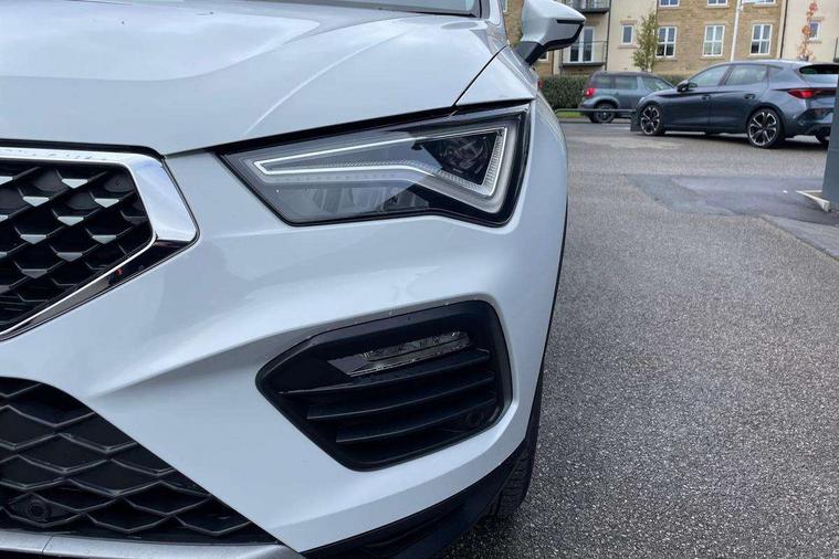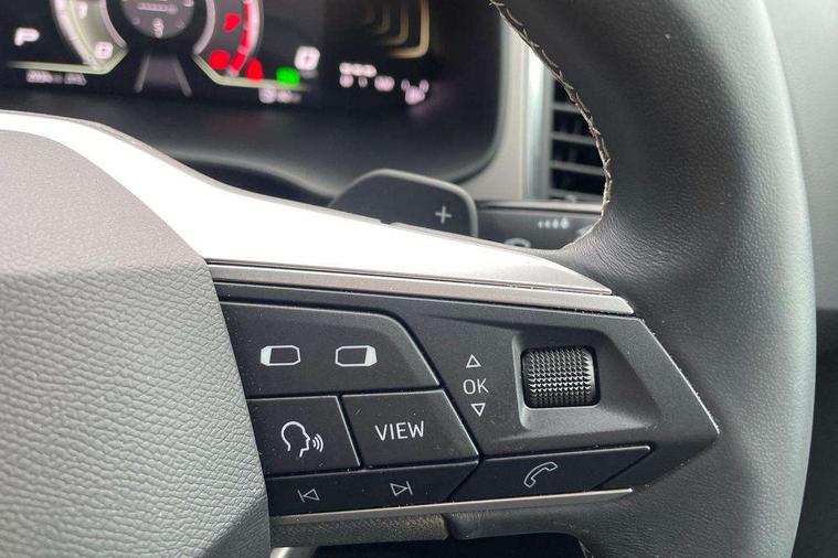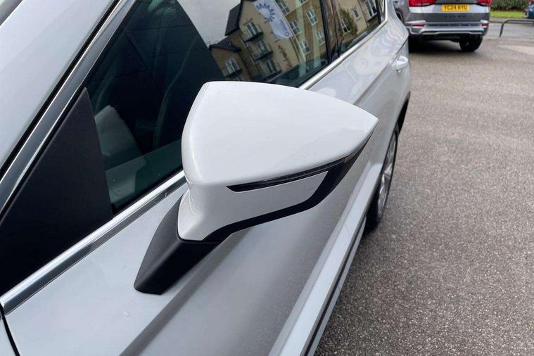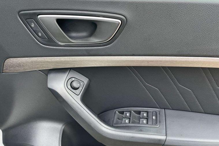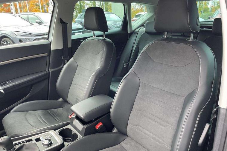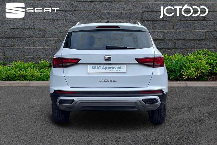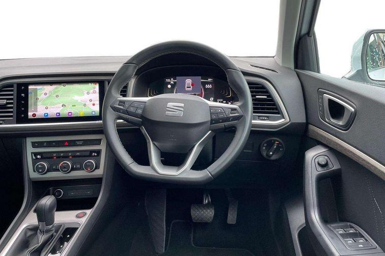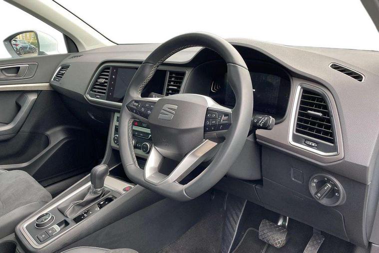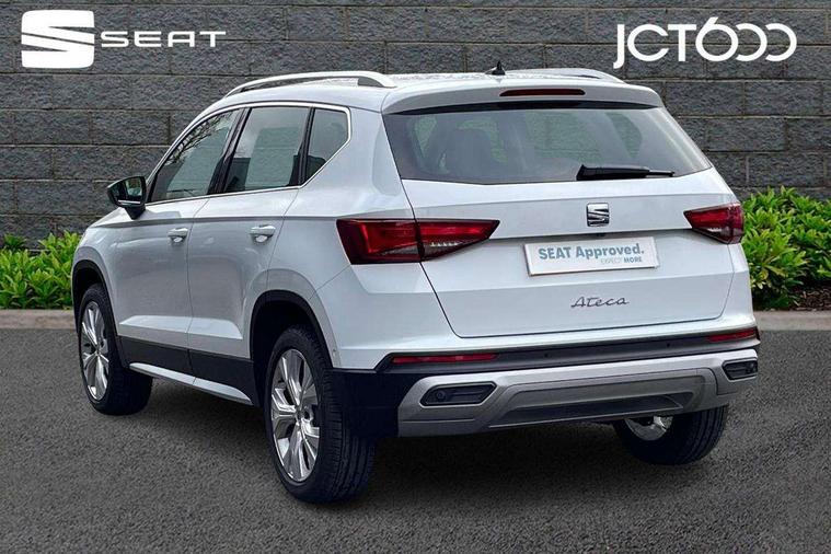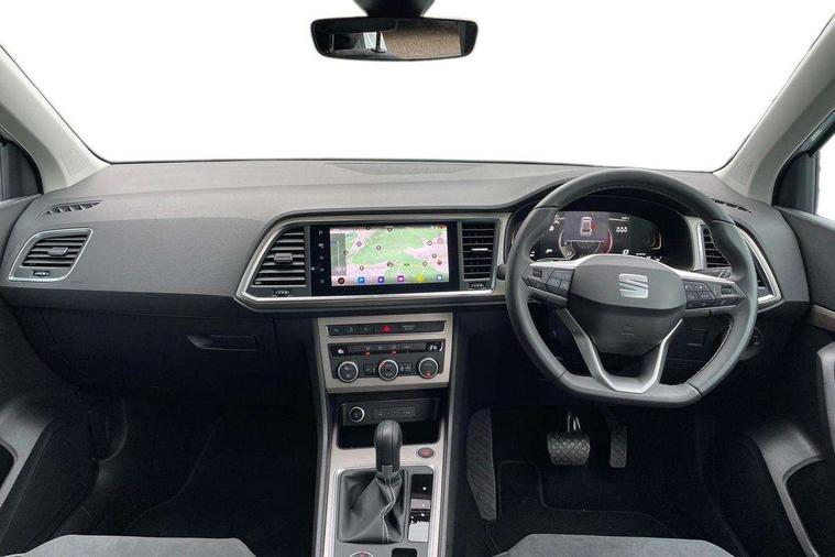 8" Digital cockpit, Colour multi-function on board computer display, E-call, Electric tailgate, Outside temperature gauge, Progressive power assisted steering, Rear view camera, SEAT drive profile with driving experience button - Normal, Sport, Eco and Individual mode, gearshift, steering and throttle response, Self parking functionality (includes front and rear parking sensors), Start/stop system, Trip computer, wired and wireless full link smartphone integration, Wireless phone charger, Steering wheel mounted audio/phone controls, Black wheel arch surrounds, Body colour bumpers, Chrome front grille frame, Chrome roof rails, Chrome side window trim, Dark tinted rear windows, Daytime running lights, Door mirrors with welcome light silhouette, Dynamic headlight range control with self adjusting whilst driving, Electric adjustable/heated/folding door mirrors, Front and rear electric windows, Front grille hot stamping, Full LED headlamps with lens and LED front fog lamps with cornering function, Heat reflecting windscreen, Illuminated aluminium front door sill, LED 3rd brake light, LED rear tail lights with dynamic indicators, Rear exhaust tailpipe, Rear fog lights, Rear side wing doors, Rear wash/wipe, Reflex silver side mouldings, Variable front intermittent wipers, 12v socket in front, 3 seat bench in 2nd row, 60/40 split folding rear seat, Dinamica upholstery with front comfort seats, Drawer under right front seat, Dual zone climate control, Front and rear head restraints, Front centre armrest, Front seat back storage pockets, Height adjustable driver and passenger seat with lumbar adjustment, ISOFIX points in outer rear seats with top tether anchorage points, Leather sports steering wheel and gear knob, Rear armrest and easy back seat release mechanism from boot, Single front passenger seat, Steering wheel mounted gearshift paddles, Convenience pack - Ateca, Interior lighting pack - Ateca, Navigation system pack with DAB - Ateca, Safety and driving pack (M) - Ateca, Safety and driving pack with attention and drowsiness assist - Ateca, 3x3 point rear seatbelts, ABS, Traction control system (TCS), Electronic stability control (ESC) and Electronic differential lock system (XDS), Airbags - Driver and front passenger airbag with deactivation, front side, two curtain and driver's knee airbags, Electric parking brake with auto hold function, Front and rear seatbelt reminder, Hill hold control, Manual rear child locks, Single tone horn, Tiredness recognition system, Tyre pressure monitoring system, Alarm, Keyless entry, Locking wheel bolts, Remote central locking, Chrome interior detailing, 18" Brillaint silver alloy wheels,