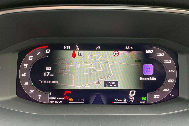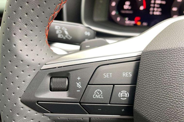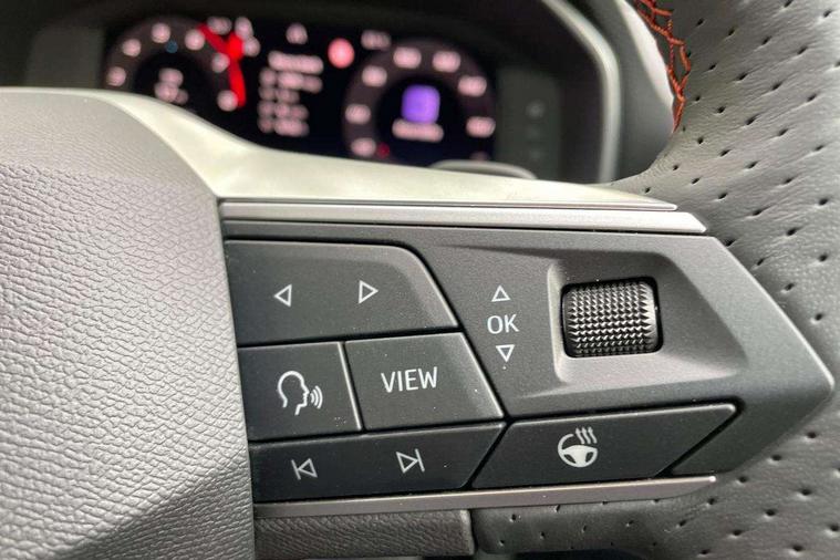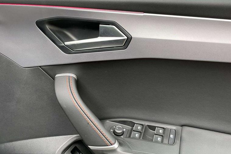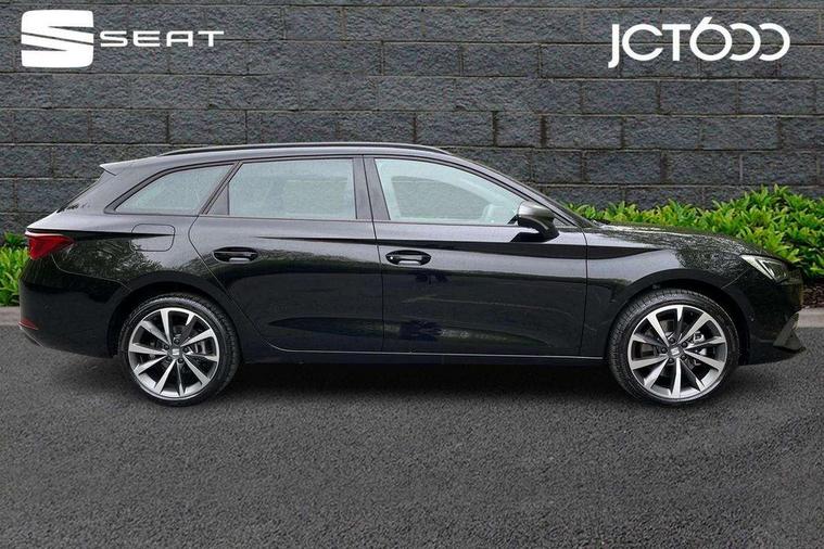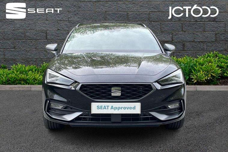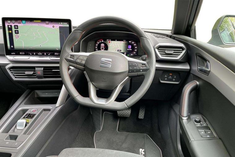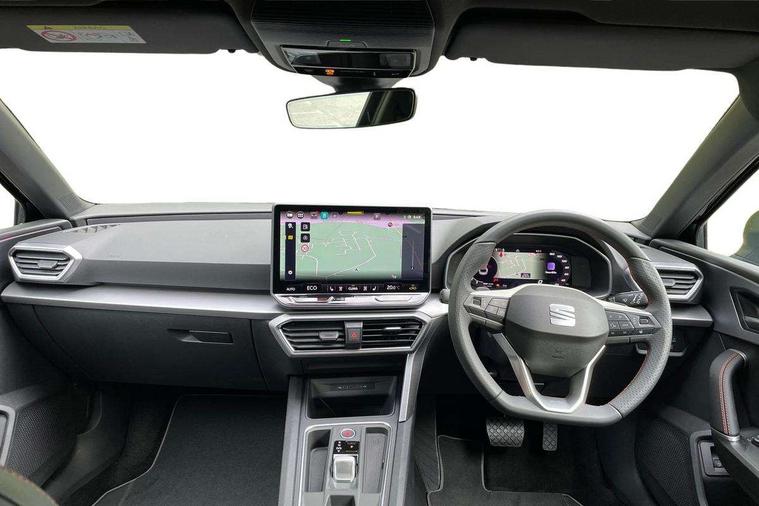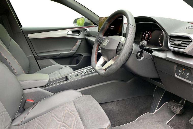 Digital cockpit with multifunction display, Driver attention alert with drowsiness warning, E-call, Front assist with forward collision warning braking reaction to vehicles, pedestrians and cyclists, Full link smartphone integration with Mirror Link, wireless Apple CarPlay and wired Google Android Auto, Intelligent speed assist, Lane assist, Lockable tailgate, Park assist (inc front/rear parking sensors), Power assisted speed sensitive electro-mechanical steering, Rear view camera, RPM, trip computer, outside temp gauge, instrument light brightness, low fuel warning light, lights on reminder, gearshift indicator, SEAT drive profile with 4 modes (Eco/Normal/Sport/Individual), throttle response and gearshift mode, Service interval indicator, Start/stop system with regenerative braking, 10 amp mode 2 charging cable, 16 amp mode 3 charging cable, XDS electronic differential lock and dynamic traction support, 2 front and 2 rear USB-C ports, 7 speakers, Auxiliary input socket, Auto dimming rear view mirror, Black roof rails, Body colour door handles, Body coloured bumpers, Dark tinted rear windows, Door mirror LED indicator lights, Dynamic headlight range control, Electric adjustable/heated/folding door mirrors with memory, Electric front/rear windows, FR sports bumper, Illuminated front door sill, LED front fog lamps, LED rear fog lamp, Matrix LED headlights and beams with variable light distribution, LED rear light and dynamic turn signals, Rear side wing doors, Rear wash/wipe, Separate daytime running light with automatic headlight control and coming home feature, Third brake light, Welcome light silhouette from exterior mirrors, Windshield wiper intermittent control with light/rain sensor, 12v power point in centre console, 3 seat bench in 2nd row, 60/40 split rear bench seat with armrest, Ambient lighting with glovebox, footwell and single monocolour, Black headlining, Dust/pollen filter, Electric driver lumbar support + passenger manual lumbar support, Front and rear height adjustable headrests, Front and rear reading lights X 4, Front centre armrest, Front seatback storage pockets, Heated front seats, Height/reach adjust steering wheel, Interior wraparound lighting (FR), ISOFIX points in outer rear seats with top tether anchorage points, Luggage tie-down hooks, Microsuede cloth upholstery, Power driver seat with memory and manual height adjustable passenger seat, Single front passenger seat, Sliding boot cover, Sunvisors with covered illuminated mirror, Three zone climate control, Media system plus with navigation - Leon, 3 point seatbelts on all rear seats, ABS, Brake control system - ESC and brake booster, Child proof door locks, Driver and front passenger airbags with front passenger airbag de-activation, front side and curtain airbags, Electronic parking brake, Extended safety system - seat belt tensioner, window closure and hazard lights, Hill hold control, Rear disc brakes, Seat belt reminder for front and rear seats, Tyre pressure monitoring system, Anti theft alarm system with interior monitoring in cab, backup horn and towing protection, KESSY Go (Keyless start), Locking wheel bolts, Wireless phone charging, Chrome interior detailing, 18" Performance machined alloy wheels with 92Y tyres, Emergency tyre repair kit, Tool kit,