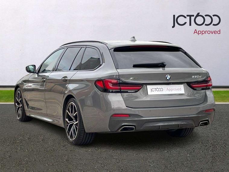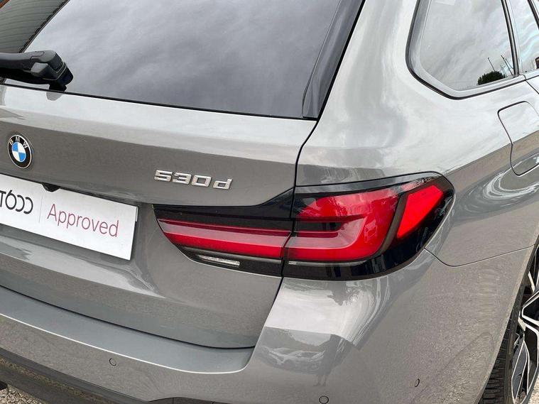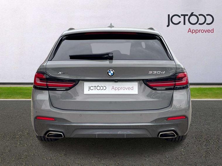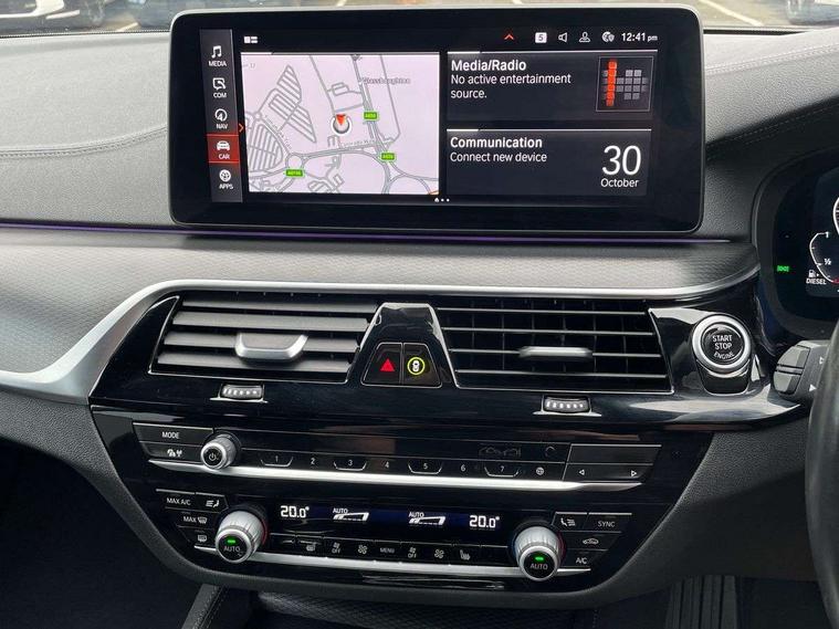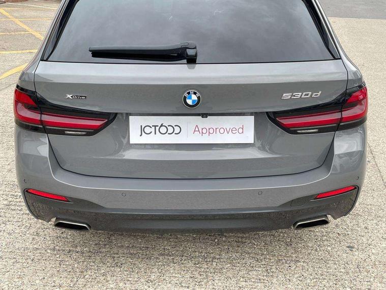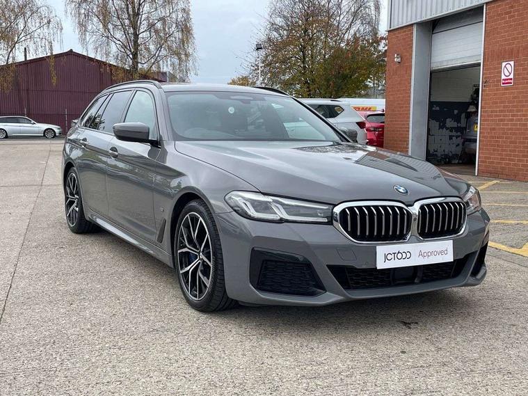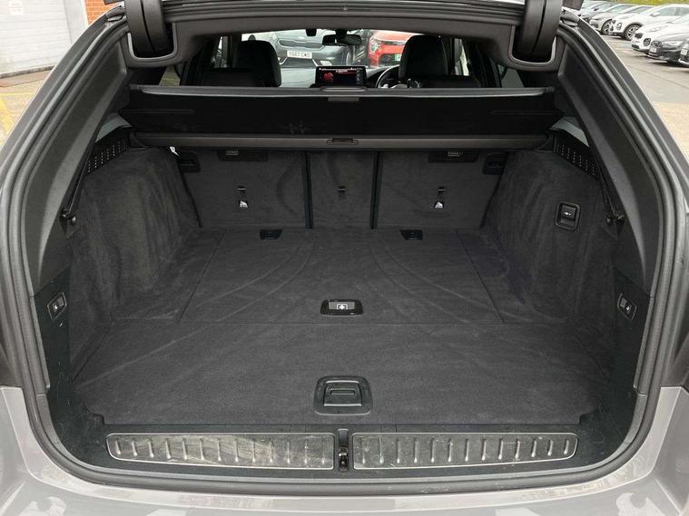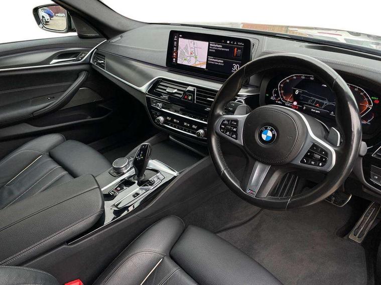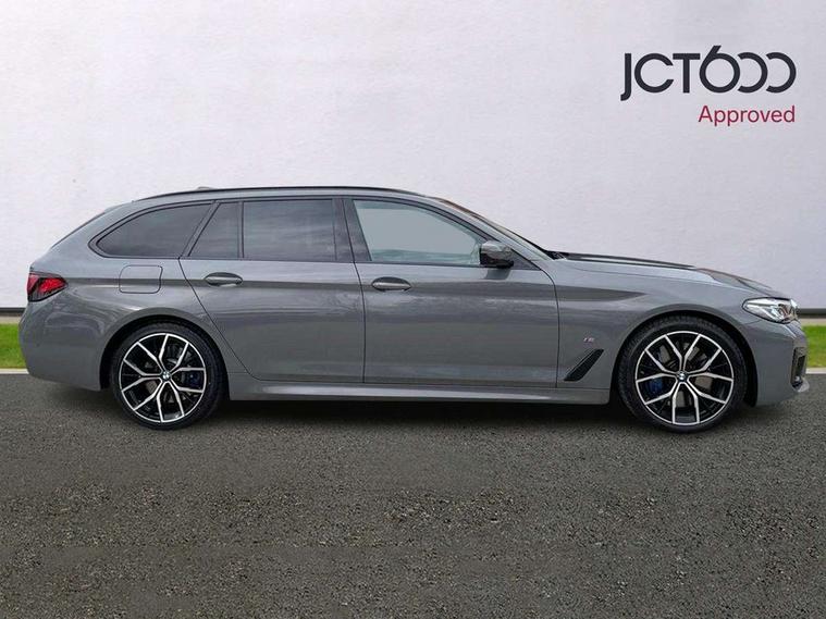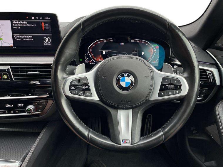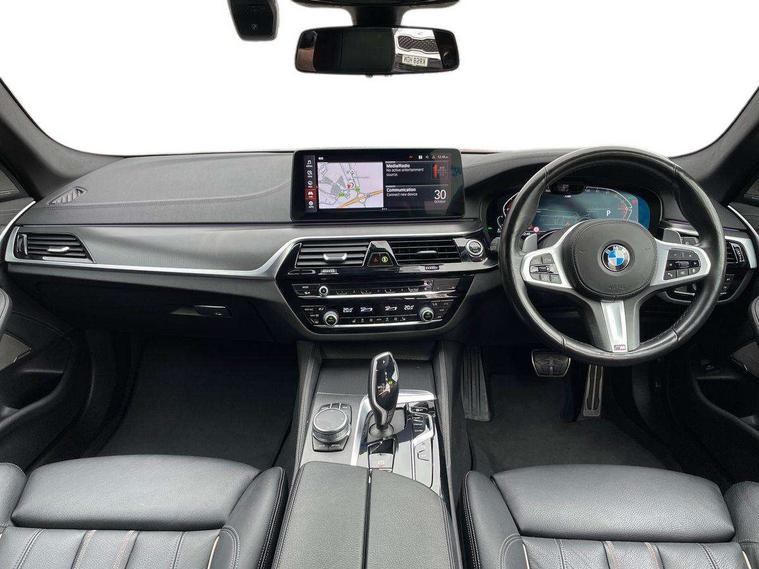 32GB hard disc drive (HDD) memory, Active Guard, BMW ConnectedDrive online services, BMW Live Cockpit Professional sat nav system with 12.3" instrument display and high resolution control display, BMW Teleservices, Brake pad wear indicator, Cruise control with brake assist, Driving experience switch, Electric boot lid - electrically opening/closing rear tailgate, Electric Power Steering (EPS) with Servotronic, iDrive touch controller with shortcut buttons, Intelligent emergency call, Multifunctional instrument panel, Oil sensor for level and grade, On board computer inc. average speed, fuel consumption, liquid crystal Info display, journey computer, outside temperature display, personal profile, On-board diagnosis - OBD, Powered by Operating System 7.0, Service interval indicator, Speed limiting function, Stop/start button, 48V Mild hybrid technology, Diesel particulate filter, Drive performance control with ECO PRO comfort + sport mode, Engine cover with twin turbo designation, M sport suspension, Steptronic sport transmission with gearshift paddle switches on steering wheel, DAB Digital radio, Favourite buttons, Acoustic glazing, All round anti-corrosion system, Automatic windscreen wipers and automatic headlight, Automatically dimming rear view mirror, BMW Individual high gloss shadow line includes exterior mirror frame, window frame surround, B pillar finish, air breather in high gloss black, BMW Individual high gloss shadow line roof rails, Body colour door handles, Body coloured bumpers, Door handle illumination, Dynamic brake lights with LED technology, Electric front and rear windows with fingertip open/close + anti-trap facility and comfort closing function, Electrically adjustable and heated exterior mirrors includes integrated direction indicators and automatic parking function, Folding exterior side mirror with auto- dimming, Follow me home headlight function, Heated windscreen washer jets, High gloss black active air stream kidney grille, Independent opening for tailgate window, LED daytime running lights, LED third brake light, M designation on front side panels, left and right in chrome, Trapezoidal visible exhaust tailpipes, xDrive designation on tailgate, 12V power socket in front and rear, 40/20/40 split folding rear seats with additional mechanism in luggage compartment, Armrest - front and rear integrated door trim, centre console includes storage compartment, rear centre includes 2 cupholders, Child seat ISOFIX attachment with rear outer seats includes top tether, Cup holders (2 front and 2 rear), Front and rear footwell lights, Front reading lights, Height and length adjustable steering column and activation via lateral lever on the steering column, Lockable glove compartment with light, M door sill finishers, M specific pedals, M specific velour floor mats, Multifunction controls for leather steering wheel, Rear headrests, Retractable luggage compartment dividing net, Three spoke sport M leather steering wheel, Ambient lighting pack - 5 Series, Connected package professional - 5 Series, M Aerodynamic pack - 5 Series, Airbags - driver/front passenger, rear and side, first and second row seats head airbags, front passenger seat airbag deactivation + knee airbag, Anti-lock braking system (ABS), Automatic Stability Control (ASC), Brake assist function, Brake energy regeneration, Cornering brake control (CBC), Crash sensor activating central locking release, hazard warning lights, fuel cut off and interior lighting, Deformation zones - front and rear with door reinforcements and bumpers up to 2.5 mph, DSC - Dynamic Stability Control, Dynamic brake control, Dynamic Traction Control - DTC, Electromechanical parking brake with automatic drive away release and auto hold function, Electronic brake force distribution, Engine drag torque control, Front and rear brake discs with interior ventilation, Front head restraints with anti-whiplash, Hill start assist, M Sport brakes in high gloss blue painted brake callipers with M designation, Mechanical child proof lock on rear doors, Passive protection for pedestrians, Side impact protection, Three point seat belts for all four seats, Two tone horn, Tyre pressure indicator, Warning triangle and first aid kit, Alarm system (Thatcham 1) with remote control and electronic engine immobiliser, Locking wheel bolts,