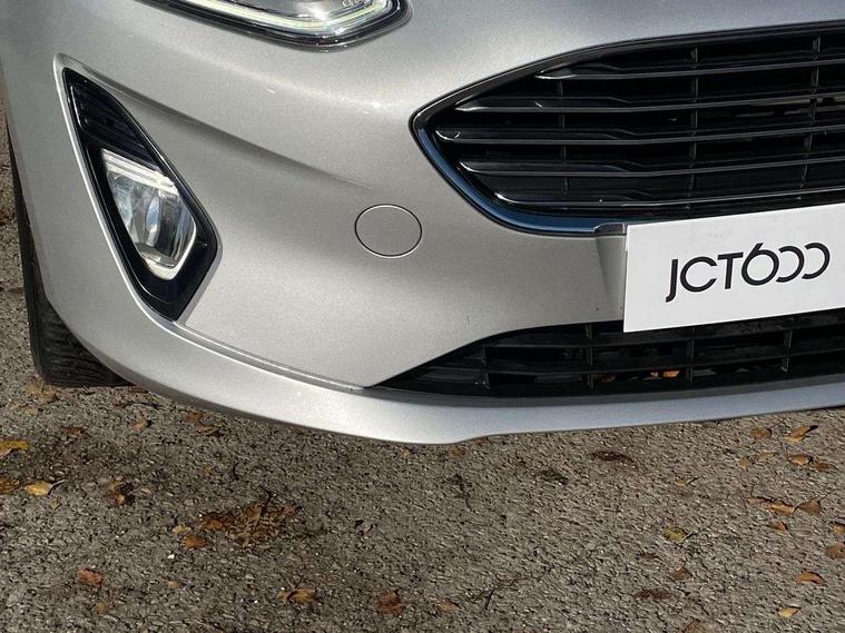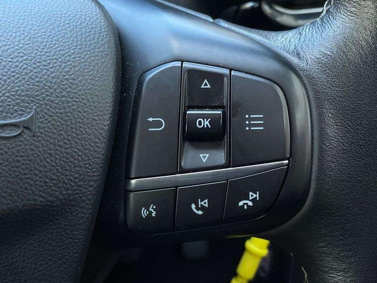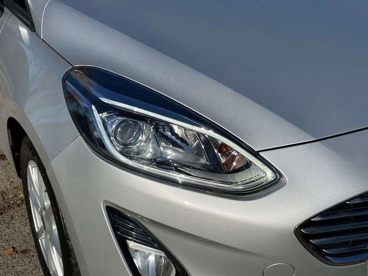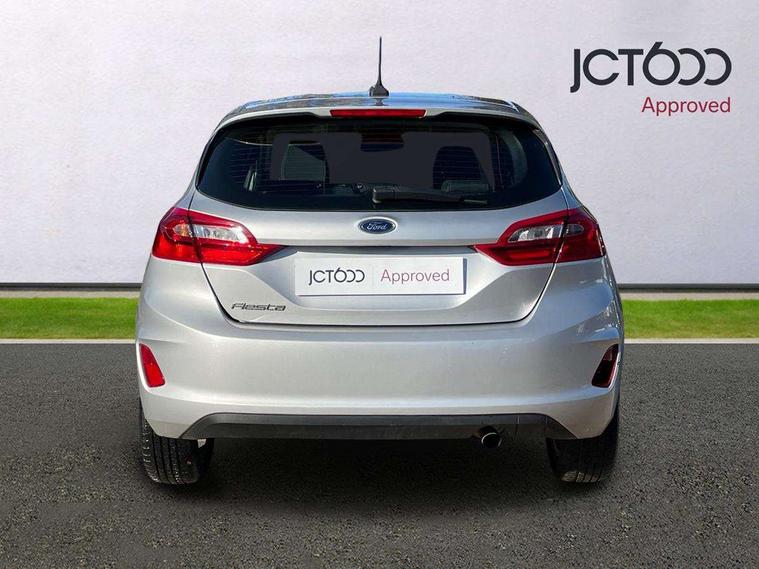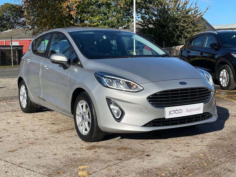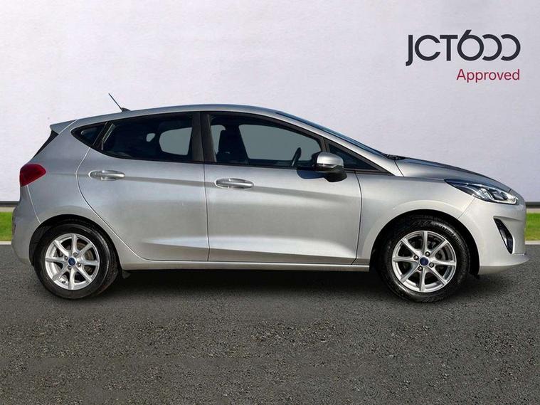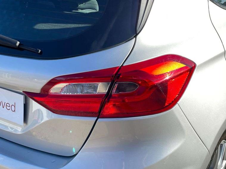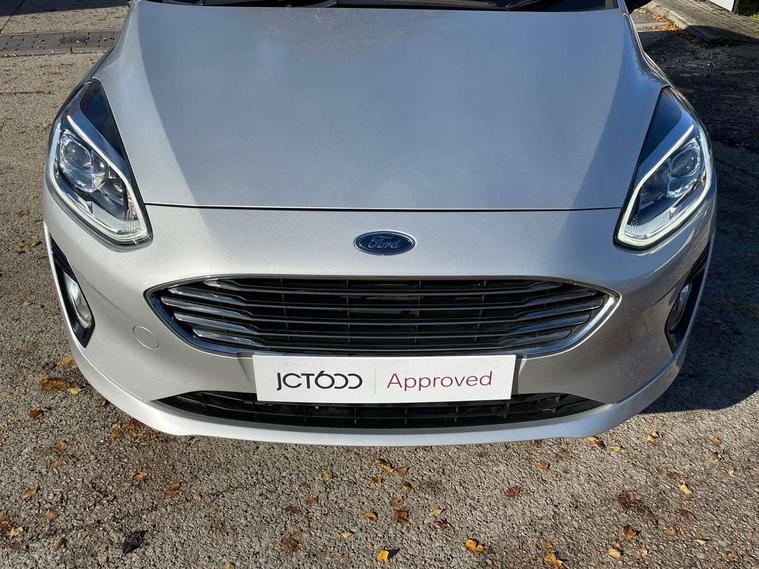 Bluetooth system, Electric power steering, Ford easy fuel, Trip computer, 2 USB ports, Auxiliary input socket, DAB Digital radio, Steering wheel mounted controls, Automatic headlights, Body colour bumpers, Body colour door handles, Body colour electric adjustable heated door mirrors with integral indicators, Body colour rear spoiler, Chrome beltline trim, Cornering front fog lights, Electric front windows/one touch facility, Halogen projector style headlights with static cornering lights + LED daytime running lights, Quickclear heated windscreen, Rear wiper, Tinted glass, Upper front grille chrome surround, 12V Accessory socket in centre console, 3 spoke leather trimmed steering wheel with audio control, 60/40 split folding rear seat, Adjustable head restraints, Boot carpet, Chrome inner door handles, Cloth upholstery, Footwell illumination, Front map reading lights, Front seat and rear pockets, Height adjustable driver's seat, Illuminated glovebox, Leather gear knob, Leather trimmed handbrake handle, Load area light, Luxury woven headliner, Manual air conditioning, Overhead console with sunglasses holder, Pollen filter, Rake/reach adjustable steering wheel, Rear centre head restraint, NCAP Pack - Fiesta, 3 point seatbelts on all rear seats, ABS+EBA, Curtain airbags, Driver and passenger airbags, Drivers knee airbag, Electronic stability control with hill start assist, Front passenger airbag deactivation, Front side airbags, Seatbelt warning, Tyre pressure monitoring system, MyKey system, Remote central locking & engine immobiliser, Thatcham Cat.1 alarm,