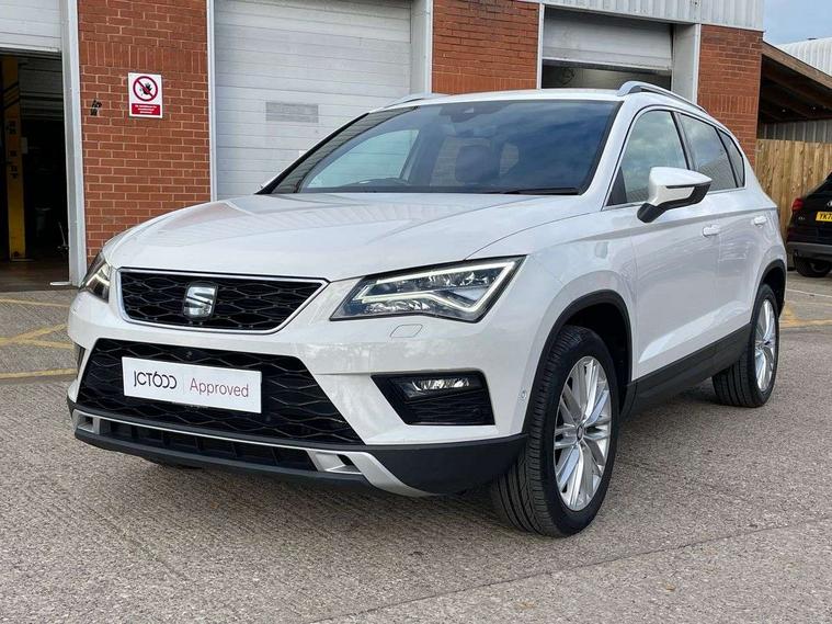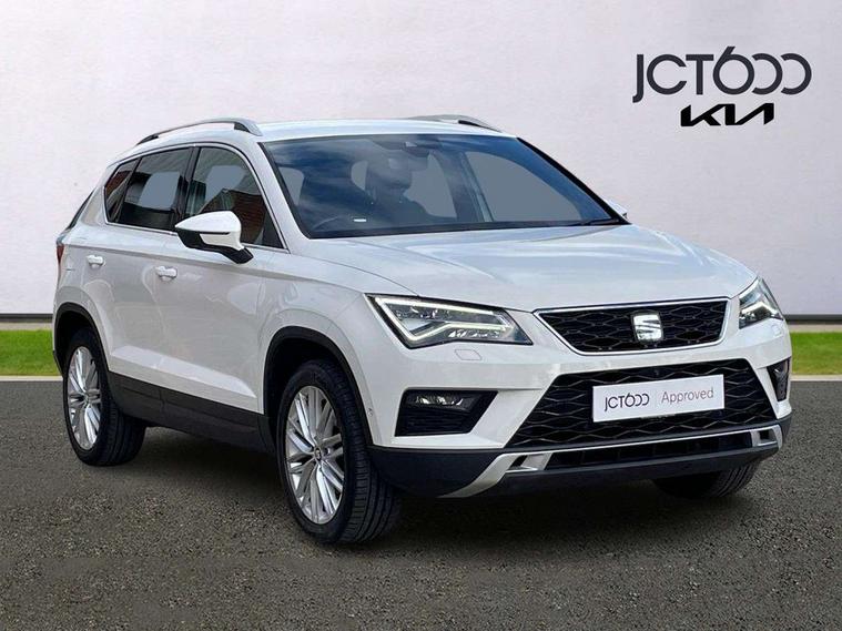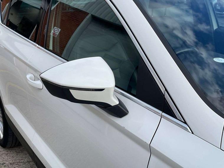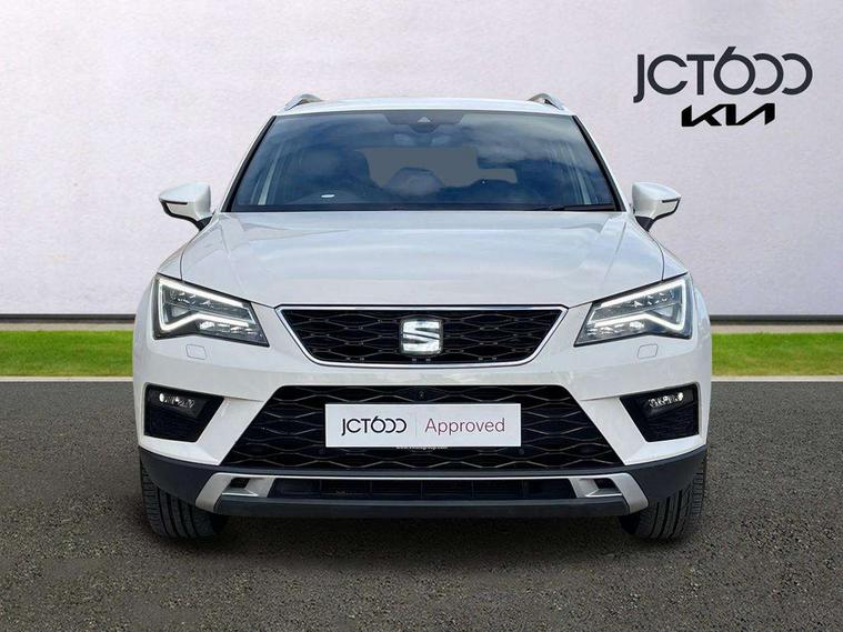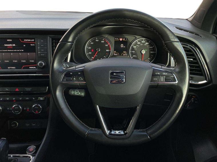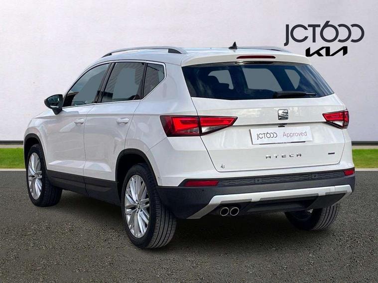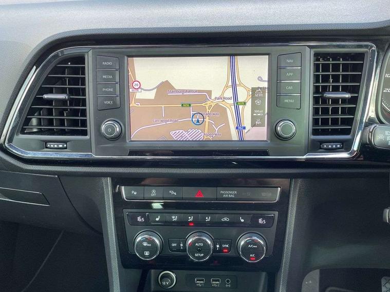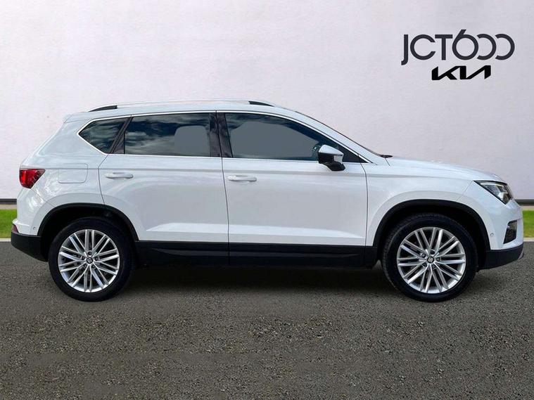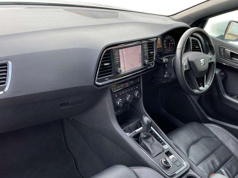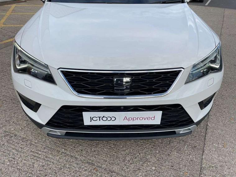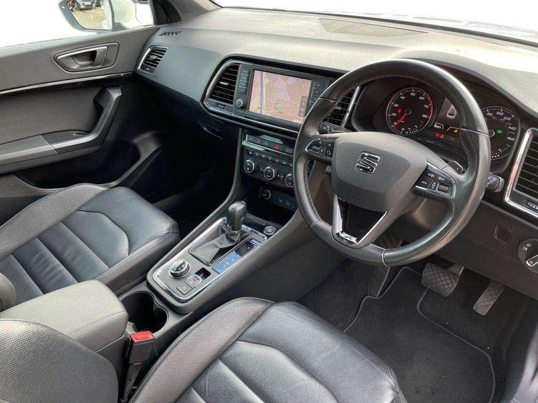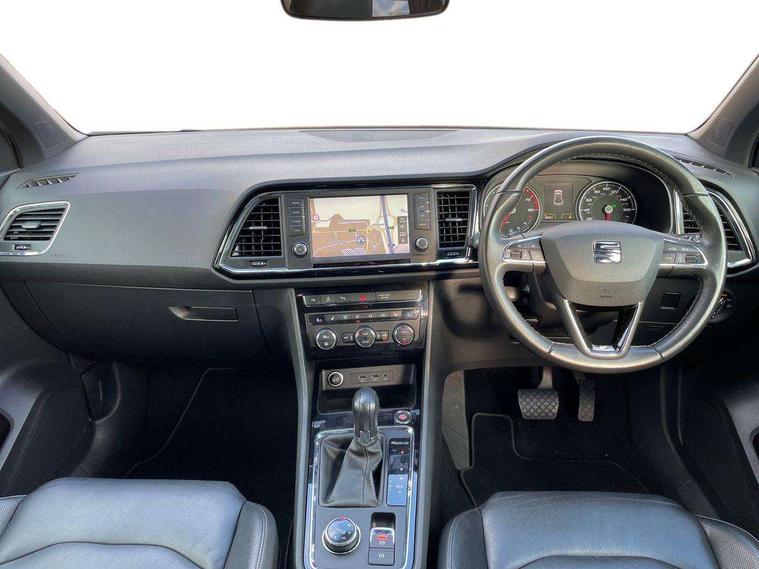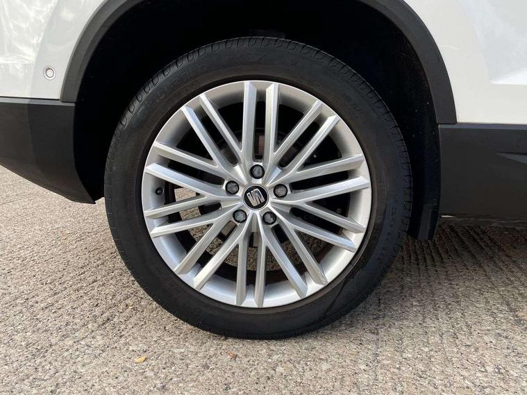 'Lights On' Reminder warning buzzer, Apple car play/Android Auto, Driver alert system, Low fuel warning light, Multi function display, Outside temperature gauge, Progressive power assisted steering, Rear parking sensor, Rear view camera, Remote fuel flap release, SEAT Drive profile, SEAT logo boot release, Trip computer, Comfort suspension, XDS electronic differential lock, 2 USB sockets in rear, Mirror link app interface, Steering wheel mounted audio/phone controls, Aluminium front door sills, Aluminium roof rails, Body colour bumpers, Body colour door handles, Body colour door mirrors, Chrome side window trim, Chromed centre radiator grille surround, Dark tinted rear windows, Electric folding door mirrors, Electrically adjustable and heated door mirrors, Front and rear electric windows, High gloss black grille, LED daytime running lights, LED front fog lights with static cornering light function, LED Headlights, LED tail lights, Rear wash/wipe, Twin chromed exhaust pipes, Welcome lighting, 12V power point front, 3 height adjustable rear headrests, 4 Lashing eyes in boot, 60/40 split folding rear seat, Active head restraints, Adjustable front armrest with storage compartment, Advanced multicolour ambient light with LED interior light and LED illuminated glovebox, Black roof lining, Card holder, Driver seat lumbar adjustment, Driver/passenger lumbar adjustment, Driver/passenger sunvisors with illuminated vanity mirrors, Dual zone climate control, Footwell illumination, Front cupholders x 2, Front reading lights, Front seat back storage pockets, Height adjustable front headrests, Height adjustable passenger seat, Illuminated boot, Isofix child seat preparation, Leather steering wheel and gear knob, Leather upholstery, Rear armrest, Rear central air outlet, Rear reading lights, Sports seats, Steering wheel gearshift paddles, Convenience pack - Ateca, Seat Media System Plus pack - Ateca, Winter Pack - Ateca, 3x3 point rear seatbelts, ABS, Auto hold function, Automatic post collision braking, Curtain airbags, Driver/Front Passenger airbags, Drivers knee airbag, Electronic parking brake, ESP+EBA, Front and rear seatbelt reminder, Front assist including city emergency braking, Front passenger airbag deactivation, Front side airbags, Hill hold control, Predictive pedestrian protection, Tiredness recognition system, Traction control, Tyre pressure monitoring system, Immobiliser, Keyless entry and go and connectivity hub with wireless charger, Locking wheel bolts, Remote central locking, Volumetric alarm with back up horn, Chrome effect dashboard facia,