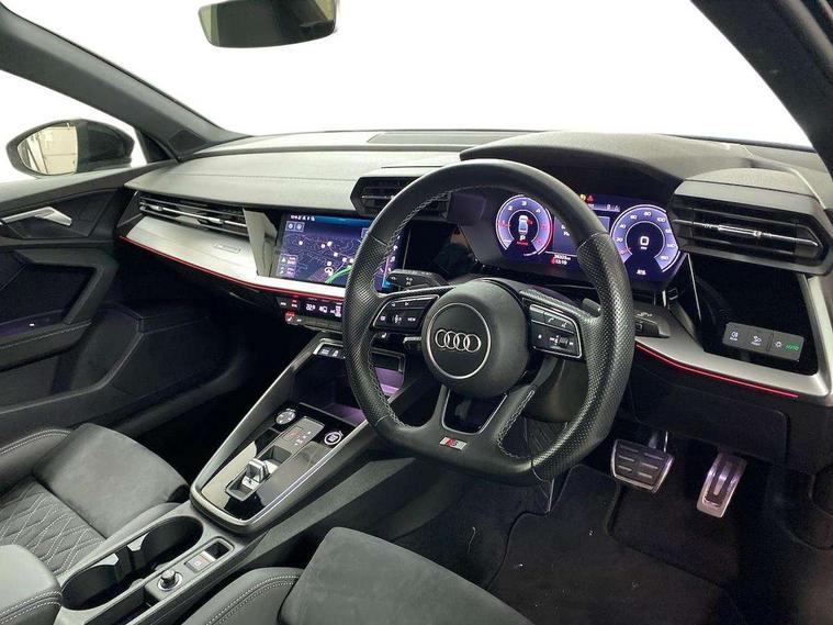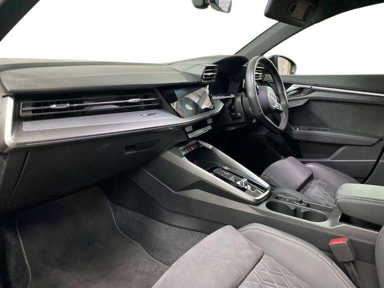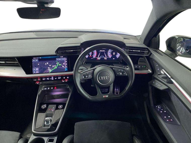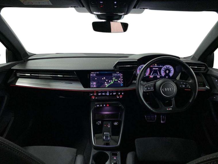 Audi connect emergency call and service, Audi drive select (Auto, Comfort, Dynamic, Efficiency and Individual), Audi smartphone interface, Audi virtual cockpit plus - 12.3" dynamic digital instrument cluster, Automatic start/stop system with recuperation, Bluetooth interface, Collision avoidance assistant, Electromechanical power speed sensitive steering, Lane departure warning system, MMI Navigation Plus with high resolution 10.1" colour touch screen display, Service indicator, Voice control system with natural language interaction, Diesel particulate filter, Sports suspension, 2x USB Type C ports (for charging and data transfer), 6 passive loudspeakers, CD player, DAB Digital radio, 3rd brake light, Acoustic glass windscreen, Audi matrix LED headlights, LED rear lights, dynamic front and rear indicators and headlight cleaning system, Auto dimming frameless rear view mirror, Electrically adj heated/folding + automatically dimming exterior mirrors with memory + automatic kerb side function for passenger side exterior mirror, Front electric windows, Illuminated door sills with aluminium inserts at the front with S logo, Integrated LED indicators in door mirrors, LED daytime running lights, Light and rain sensors, Model and engine designation badges at rear, Privacy glass - dark tinted rear window, rear door and side windows, Rear boot, Rear electric windows, Rear side wing doors, S roof spoiler, 12V socket and storage compartment in front centre console, 3 seat bench in 2nd row, 4 way electrically adjustable lumbar support for driver and front passenger, 40/20/40 split folding rear seat bench with cupholder, Black cloth headlining, Dual zone electronic climate control, Electrically adjustable front seats with memory function for driver's side and exterior mirrors, Front and rear centre armrest in leather, Front and rear headrests, Front/rear floor mats, Heated front seats, Height and reach adjustable steering wheel, Illuminated vanity mirror, Interior lighting - glove compartment light and right hand side, Luggage compartment floor covering, Manual boot compartment lid, Single front passenger seat, Stainless steel pedals and front footrest in black, Aluminium interior elements pack - A3 Saloon, Black styling pack - A3/S3, Dinamica microfibre/mono.pur 550 artificial leather pack - A3 Saloon, Extended ambient lighting pack - A3/S3 Saloon, LED interior lighting pack - A3 Saloon, 3x3 point rear seat belts, Driver and front passenger airbag with passenger airbag deactivation, Electronic Stabilisation Control (ESC) including ABS, ASR and EDL, First aid kit with warning triangle and 2 safety vests, Front side airbags with head airbags and interaction airbag, Hill hold assist, Pre-sense front with pedestrian and cyclist detection, Seatbelt monitoring, Tyre pressure loss indicator, Anti theft alarm, Anti-theft wheel bolts, Electronically operated child locks, Immobiliser, Remote control central locking, Aluminium air vent surrounds, Aluminium trim elements, Dark spectrum aluminium inlays, accent surfaces in the dashboard and centre console in platinum grey silk effect paint finish, 19" 5 arm trapezoid design alloy wheels in matt grey with diamond cut finish,