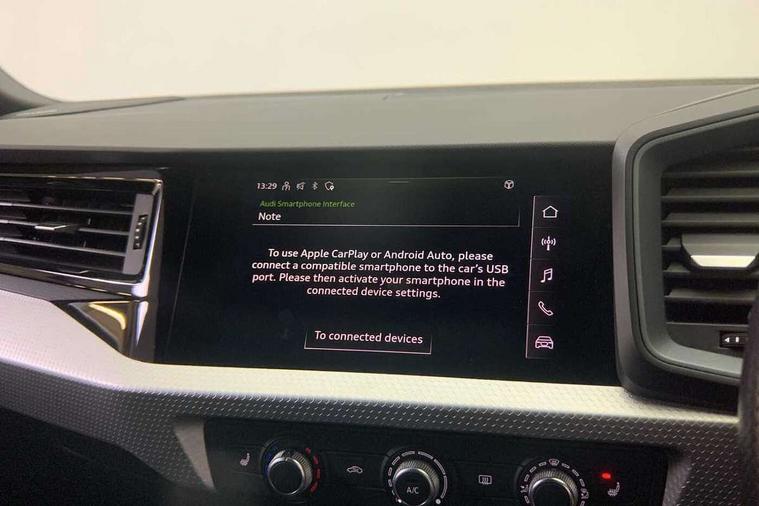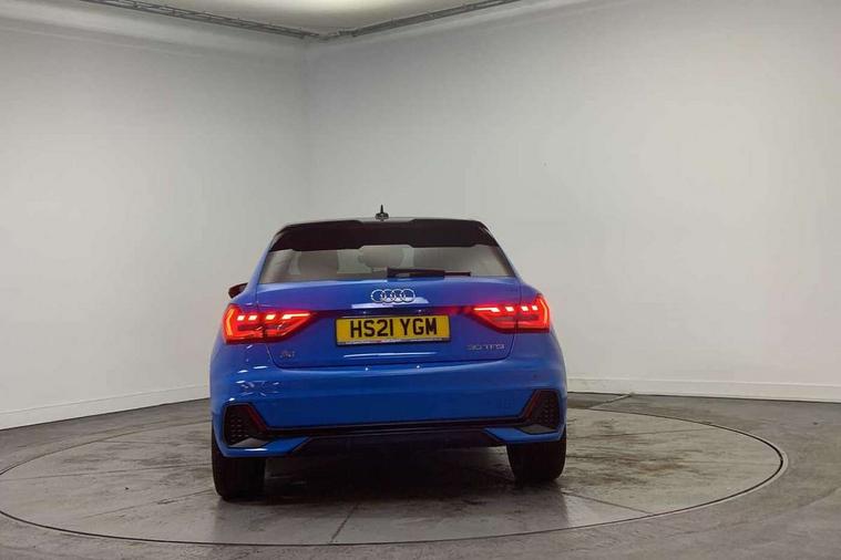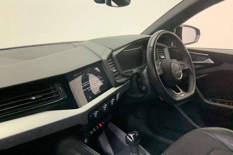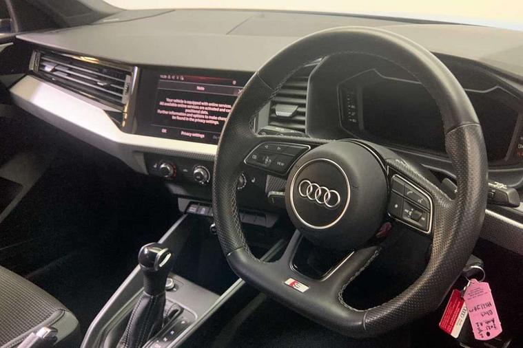 10.25" Digital instrument cluster display classis style instrument dials + speed, odometer, time, outside temperature, telephone menu + fuel level warning, Audi connect safety emergency and service including E-call, Audi drive select - power steering assistance + engine + gear shift 3 preset modes (auto, dynamic, efficiency and an Individual mode), Audi smartphone interface with connect compatible smartphone via USB directly MMI display + Nav, music, third party apps controlled via MMI controller, Automatic start/stop system, Bluetooth interface, Cruise control, Driver's information system, Electromechanical power steering, Lane departure warning system, Service interval indicator, Speed limiter, Voice control system, Washer fluid level indicator, Sports suspension, 1 x SDXC card reader, 2 x USB type C connection points, DAB Digital radio, MMI radio plus with 8.8" colour MMI display screen and MMI touch, Auto dimming rear view mirror, Black door mirrors, Black side skirts, Body coloured bumpers, Contrast roof - Mythos black, Door sill trims with aluminium inlays and logo, Electric front and rear windows, Electrically adjustable, heated, folding door mirrors with integrated LED side indicator, Front side air inlets in grained matt black and C frame in titanium black, Heat insulating glass windscreen and side windows, Heated rear windscreen, LED headlights with LED rear lights + dynamic rear indicators + headlight adjustment and high beam, turning light + LED daytime running lights, Radiator protective grille frame in matt aluminium silver, Rain and light sensors, Rear diffuser strip in matt titanium black, Rear fog lights, Rear wiper, Side front spoiler lips in grained matt black, 12V socket in centre console with two cup holders, 3 rear seats with headrests, 3 spoke flat bottomed multi-function plus leather steering wheel with S badging, grips in preforated leather, contrast stitching and paddle shift, 40:60 Split folding rear seat or folded fully, Black cloth headlining, Driver and passenger seat with manual height adjust with forward and backwards adjustment, Front and rear black floor mats with contrast stitching in fine silver, Front head restraints, Height and reach adjustable steering wheel, ISOFIX child seat mounting for front passenger and outer rear seats including top tether attachment point of outer rear seats, Leather gear knob with aluminium trim, Luggage compartment light with front and rear reading lights, Manually adjustable lumbar support in front seats, Stainless steel pedals, Black styling pack - A1 Sportback Black Edition, LED interior lighting pack - A1, Luggage compartment pack - A1, 3x3 point rear seatbelts, Audi pre-sense front with pedestrain and cyclist recognition, Brake assist function, Driver and front passenger airbag with front side and head airbags, Electronic Stability Control including ABS, EBD, ASR and EDL, Front passenger airbag deactivation switch, Hill hold assist, Seatbelt height adjustment for front seats, Seatbelt monitoring, Tyre pressure warning light, Warning triangle and first aid kit, Anti theft alarm, Anti theft wheel bolts and loose wheel warning, Immobiliser, Remote central locking with 2 foldaway keys, Aluminium trim for control switches, air vents and digital instrument cluster, Silver grey inlays polygon structure in diamond paint finish, Structured grey accent areas including air vents, door handle recesses and centre console in quartz paint finish, 18" 7 spoke rotor design alloy wheels in gloss anthracite black, diamond cut finish,