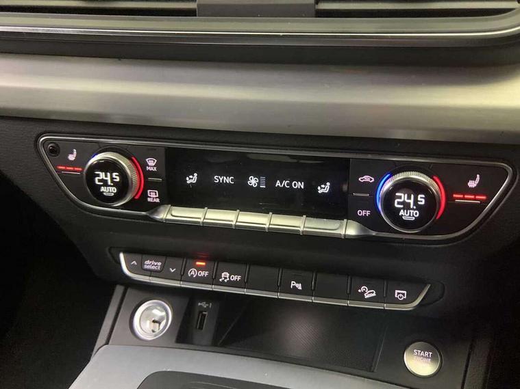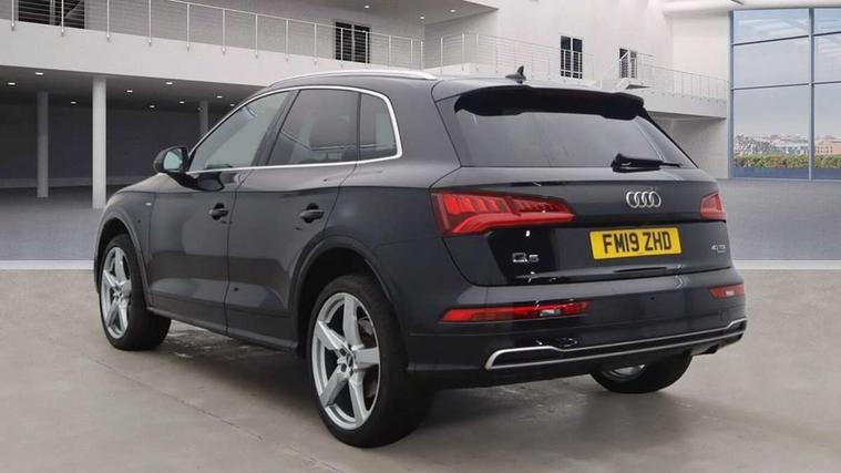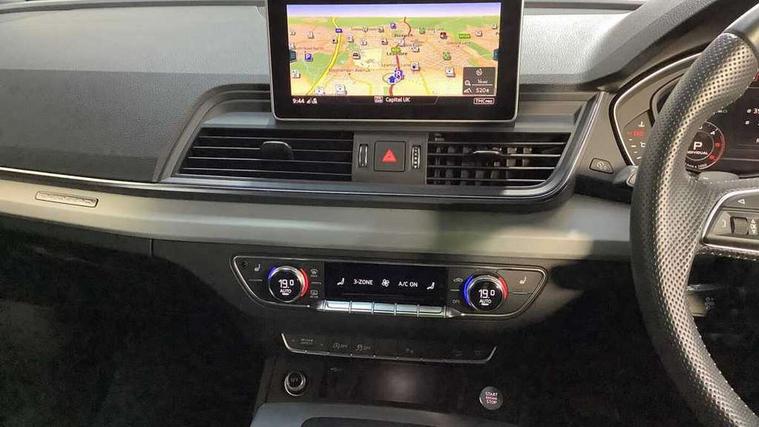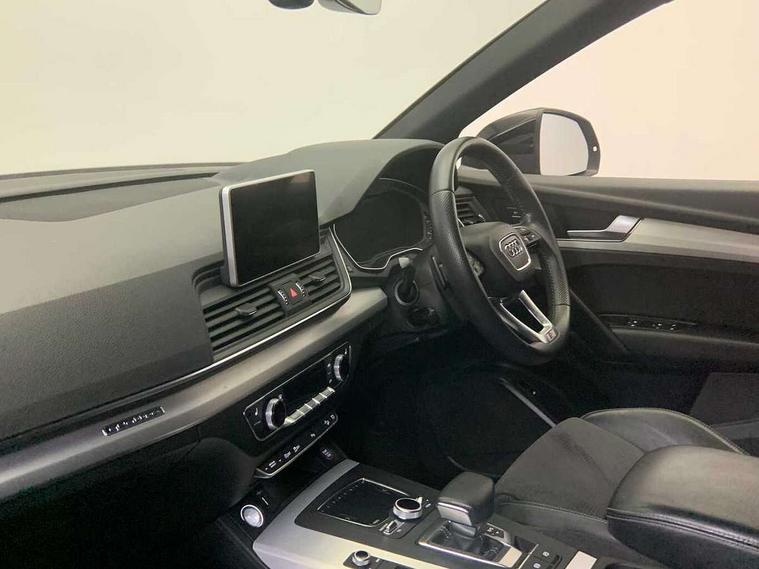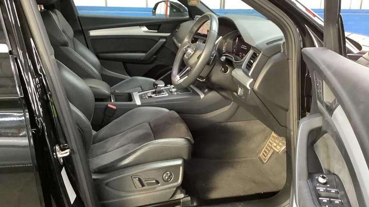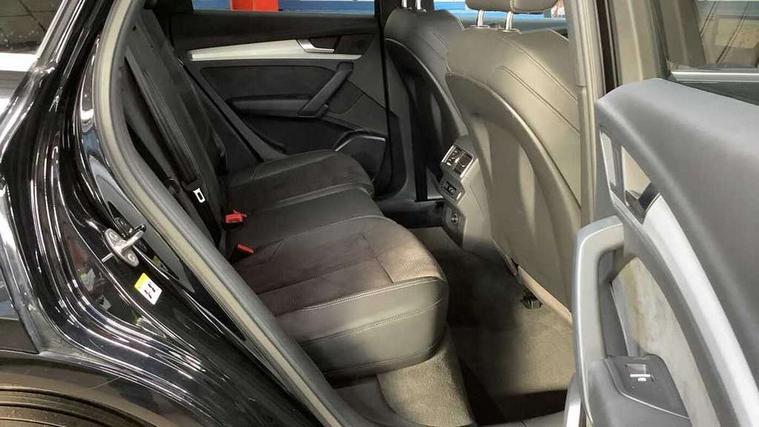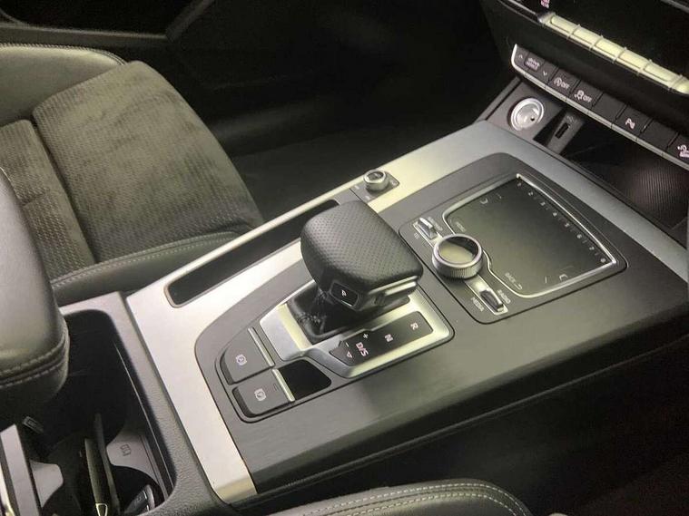Matt brushed aluminium inlays, High gloss pack - Q5, LED interior light pack - Q5, Non Smokers pack, Anti theft alarm, Anti-theft wheel bolts, Keyless Go access/ignition system, Remote central locking, 2x SD card slot, CD player, DAB Digital radio, MMI radio plus with 7" colour MMI screen and MMI controller, 3 point seatbelts on all seats, 6 airbags - Driver, front passenger, curtain and side airbags, Electromechanical parking brake, Electronic stabilisation control including ABS, ASR and EDL, Front passenger airbag deactivation, Hill descent control, Hill hold assist, Multi collision brake assist, Pop-up bonnet for pedestrian protection, Pre sense city, Seat belt force limiter, Seatbelt monitoring, Tyre pressure warning, Warning triangle and first aid kit, Acoustic windscreen, Air inlets in matt titanium black with blades in matt aluminium silver, Aluminium roof rails, Auto dimming rear view mirror, Automatic headlight levelling, Body colour bumpers, Body colour door mirrors, Body colour rear diffuser with matt aluminium silver surrounds, Body colour S Line side skirts, Body colour underbody protection, Chrome exhaust tailpipe, Electric adjustable/heated/folding door mirrors, Front and rear electric windows, High beam assistant, LED headlights with LED rear lights + dynamic rear indicators, Light and rain sensor for auto activation of lights and windscreen wipers, Loading sill protector in stainless steel, Privacy glass with front acoustic glazing, Rear wiper, S Line badges on the front wings, S Line front bumper, S Line rear bumper, S Line rear spoiler, Twilight grey matt radiator grille with matt aluminium horizontal chrome struts, 2 x USB charging port with aux input socket, 3 rear headrests, 3 zone climate control, 40:20:40 split folding rear seat with rear centre armrest, Black cloth headlining, Contrast stitching on seats, steering wheel and gear lever gaiter, Front centre armrest, Front sport seats with S embossed logo, Front sports seats, Front/rear floor mats, Heated front seats, Height adjustable front head restraints, Height/reach adjustable steering column, Illuminated door sill trims with S logo, ISOFIX child seat mounting and top tether, Luggage compartment carpet, Manual seat adjustment with 4-way electric lumbar support, Perforated leather gearknob, Removable luggage compartment floor, Stainless steel pedals, Sunvisors with vanity mirrors, Tool kit, Trunk roller cover, 7" Colour driver information system, Audi connect infotainment services, Audi connect safety and service (e-call), Audi drive select, Audi parking system plus with front and rear sensors, Audi smartphone interface, Automatic start-stop system with coasting functionality and efficiency programme, Electro - mechanical power assisted steering, MMI Navigation, Mobile telephone preparation - bluetooth interface, Power tailgate, Service interval indicator, Voice control system, Diesel particulate filter, Dynamic suspension, Quattro on demand,