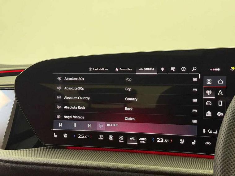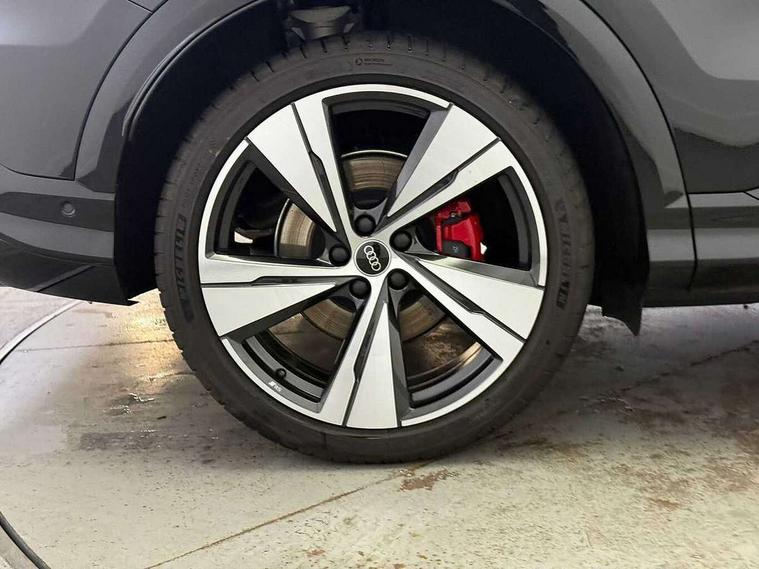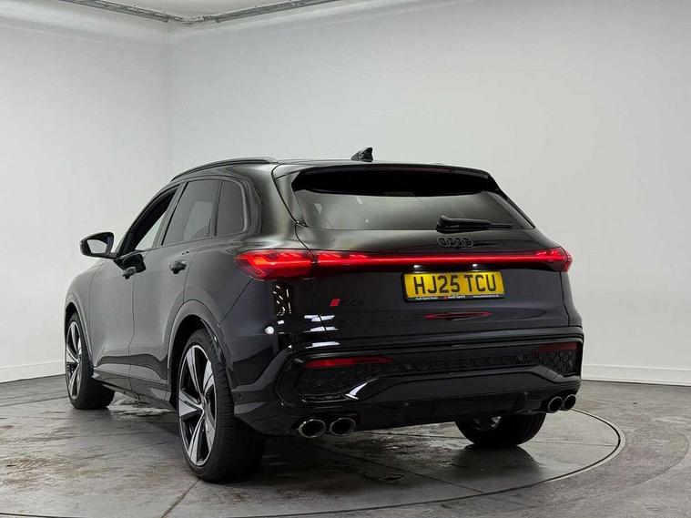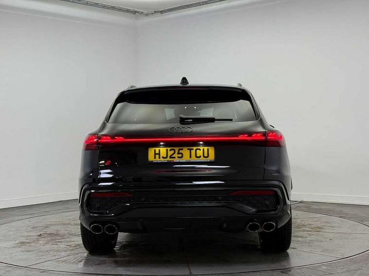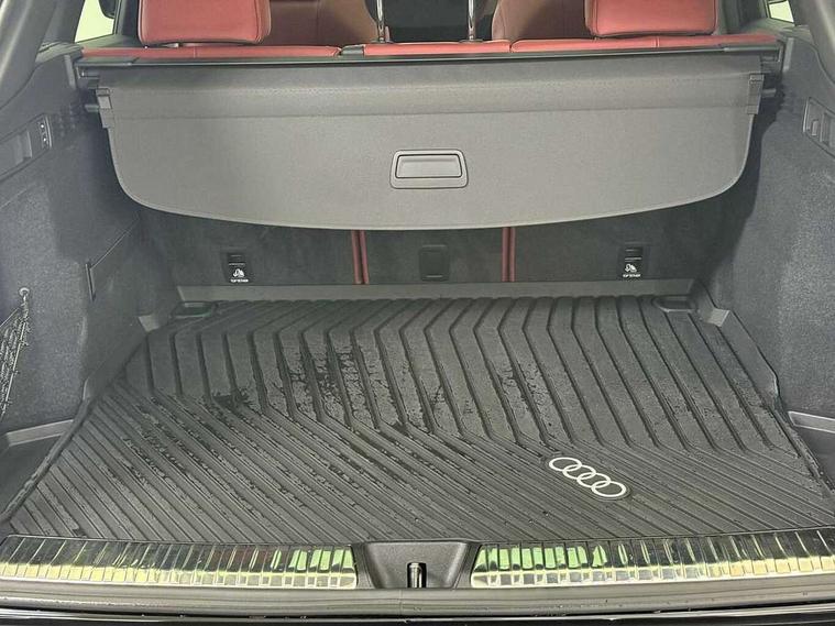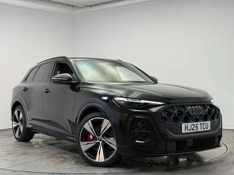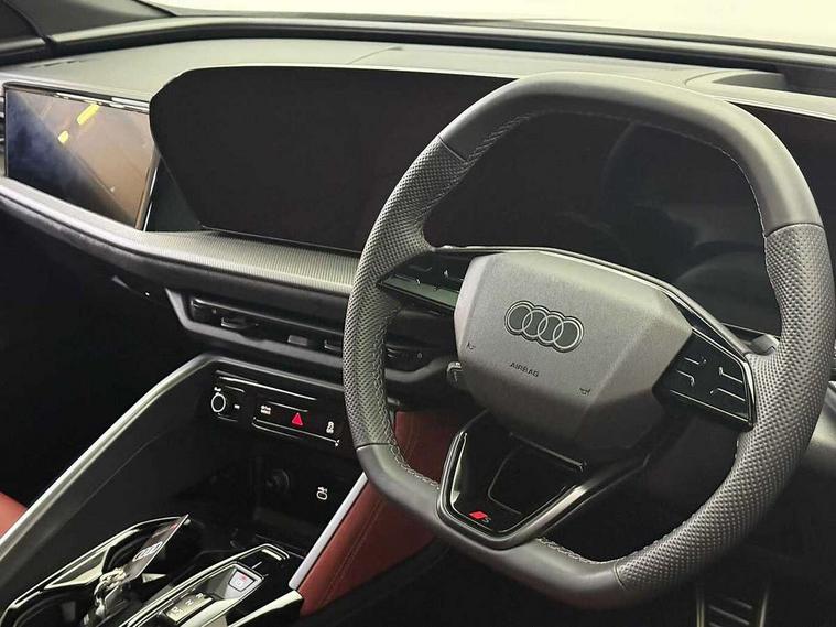 Adaptive cruise assist plus with steering intervention, Advanced driver attention alert, Audi application store, Audi connect emergency call and service, Audi digital key, Audi drive select, Audi smartphone interface, Audi virtual cockpit plus with 11.9" OLED colour display, Camera based traffic sign recognition, Fatigue monitor, Front cross traffic intersection assist, Garage door opener, Lane change assistant with exit warning system, rear cross traffic alert and rear turn assist, Lane departure warning with emergency assist, MMI 10.9" front passenger touch display, MMI navigation plus with high resolution 14.5" OLED touchscreen colour display, Park assist plus, Parking system plus with 360 display, PAS, Reversing camera, Swerve assist and turn assist, Top view camera, Traffic sign based speed limiter, S adaptive air suspension, 2 USB-C ports in both the front and rear, DAB Digital radio, Smartphone compartment with wireless charging, Acoustic glass for front door windows, Active digital light signatures - Six additional combinations of active daytime running light signature, Auto dimming rear view mirror, Black door mirrors, Black roof rails, Coming/leaving home lighting function, Contrast bumpers in mythos black metallic paint finish, Digital OLED tail lights including communication light, Electrically adjustable heated and folding + automatically dimming exterior mirrors, Entry LED with red and white rhombus S logo projection, Exhaust tailpipes in dark chrome, Front and rear electric windows, Front door sill trims with aluminium inlays, illuminated with 'S' logo, Headlight cleaning system, Heated rear window, High beam assist, High gloss window surrounds, Inlay and front air inlets in matt anthracite chrome, Logo projection light in exterior mirrors, Matrix LED headlights, Memory function for door mirrors, Privacy glass, Projection light for rear window, Radiator grille in phantom black, Rear and side windows with heat insulating glass, Rear honeycombe grille in matt black with inlay in matt anthracite chrome, Rear side wing doors, Rear wash/wipe, Red S rhombus badging with 'S' lettering on rear, S exterior styling, Towbar preparation, Windscreen with acoustic glazing, 3 rear head restraints, 3 seat bench in 2nd row, 3 spoke leather steering wheel with multi-function buttons with touch control, flattened on top and bottom, with S badging and contrast stitching, 40:20:40 split folding rear seat bench with centre armrest and cup holders, Comfort centre armrest, Deluxe 3 zone electronic climate control, Electric steering wheel adjustment, Electrically adjustable front seats with memory function for driver's side, Front and rear floor mats, Front seat ventilation, Front sport seats with integrated head reastrains, Headlining in black cloth, Heated front seats, Heated outer rear seats, Heated steering wheel, i-Size child seat mounting on the front passenger side and outer rear seats, i-Size and top tether on the outer rear seats, Interior trim in aluminium look, Luggage compartment lid, electrically opening and closing, Perforated fine nappa leather with diamond stitching incl. ventilation and massage function for front seats, Pneumatically adjustable lumbar support with massage function for front seats, Single front passenger seat, Softwrap in Dinamica, Stainless steel pedals and footrest, Steering wheel grips in perforated leather and shift paddles, Ambient lighting package plus - Q5, Black styling package plus - Q5, Sound and Vision pack - Q5, Storage and luggage compartment pack - Q5, Vanadium pack - Q5, 3x3 point rear seatbelts, ABS, Acoustic vehicle alerting system, Convenience key with safelock, Driver and front passenger airbag with passenger airbag deactivation, Electric child safety locks, First aid kit with warning triangle and high visibility vests, Front emergency brake assist, Front side airbags with head airbag system and front interaction airbag, Hill hold assist, Occupant detection in rear seat area, Proactive passenger protection system for front, sides and rear, Red brake calipers, Side airbags in front and rear with head airbag system and front interaction airbag, Tyre pressure loss indicator, Anti theft alarm, Anti-theft wheel bolts, Remote control key with SAFELOCK and keyless go, Black dashboard with contrast stitching, Carbon micro twill structure inlay, Steel grey seat stitching, Upper and lower interior elements in dinamica microfiber, 21" 5 arm slit black metallic, gloss turned finish Audi Sport alloy wheels, Tyre repair kit,