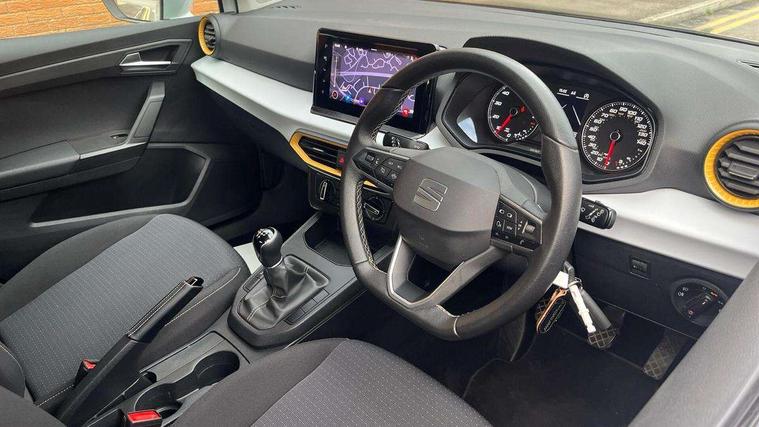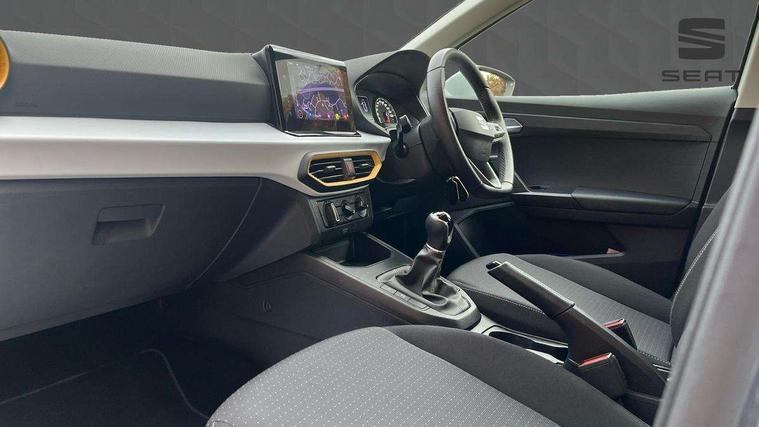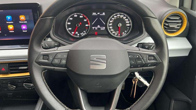 'Lights On' Reminder warning buzzer, 8" Digital cockpit, 9.2" touchscreen navigation system with type C USB socket, Voice control and DAB/AM/FM radio, Auto start and stop system, Bluetooth audio streaming with handsfree system, Cruise control, Digital clock, E-call, Full link smartphone integration with mirror link, wireless apple carplay, Google android auto + USB Type C cable for apple and android devices, Lane assist, Low fuel warning light, Outside temperature gauge, Power Steering, Seat connect with safety, service, remote and online, SEAT logo boot release, Speed limiter, Trip computer, Comfort suspension, Auxiliary input socket, Radio/MP3 player, SD card slot, Steering wheel mounted controls, Anti theft roof antenna, Body colour bumpers, Body colour door handles, Body colour door mirrors, Dimming interior rear view mirror, ECO LED automatic headlights and LED daytime running lights, Electric front windows, Electric headlight adjustment, Electrically adjustable door mirrors, Front/rear fog lights, Halogen tailights, Rain sensor, Rear side wing doors, Rear wiper, Third brake light, 3 seat bench in 2nd row, 60/40 split folding rear seat, Air conditioning with dust and pollen filter, Chrome interior detailing and grey headlining, Cloth upholstery, Comfort seats, Front courtesy lights, Front cupholders x 2, Front reading lights, Gear shift indicator, Glovebox, Height adjustable front and rear headrests (five), Height adjustable front seats, Height/reach adjust steering wheel, Illuminated boot, Instrument lighting with brightness control, Isofix, Leather multifunction flat bottomed sports steering wheel, Passenger sunvisor, Single front passenger seat, Sunvisors with mirror and driver side card holder, 3 point seatbelts on all 3 rear seats, ABS, Active front headrests, Child locks on rear doors, Electronic stability control, Energy recovery system, Front assist forward collision warning and autonomous emergency braking, Front driver and passenger side airbags with curtain airbag and front passenger airbag deactivation, Hill hold control, Multi-Collision braking, Seat belt reminder for front and rear seats, Tiredness recognition system, Tyre pressure monitoring system, Electronic engine immobiliser, Locking wheel bolts, Remote central locking + deadlocks, 16" Design machined alloy wheels in Nuclear grey, Emergency tyre repair kit,