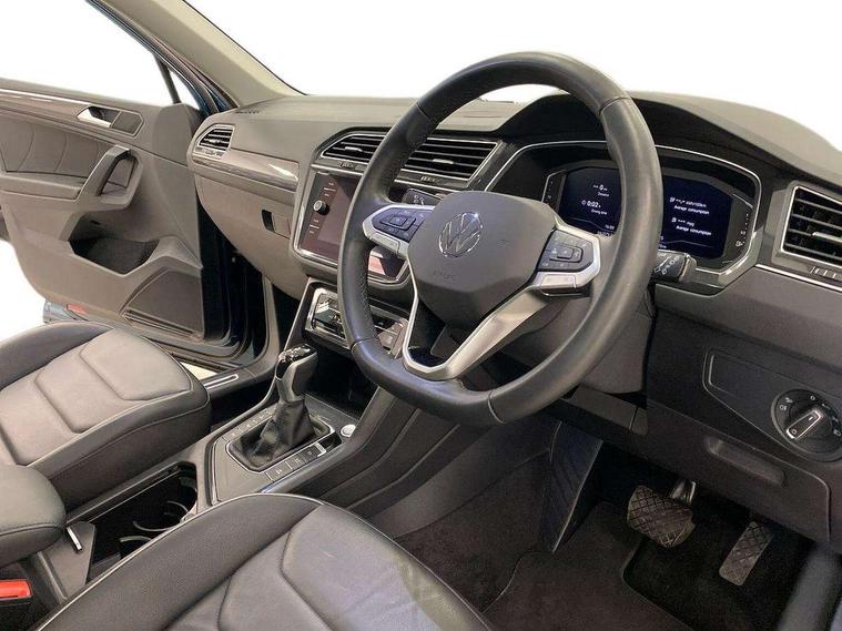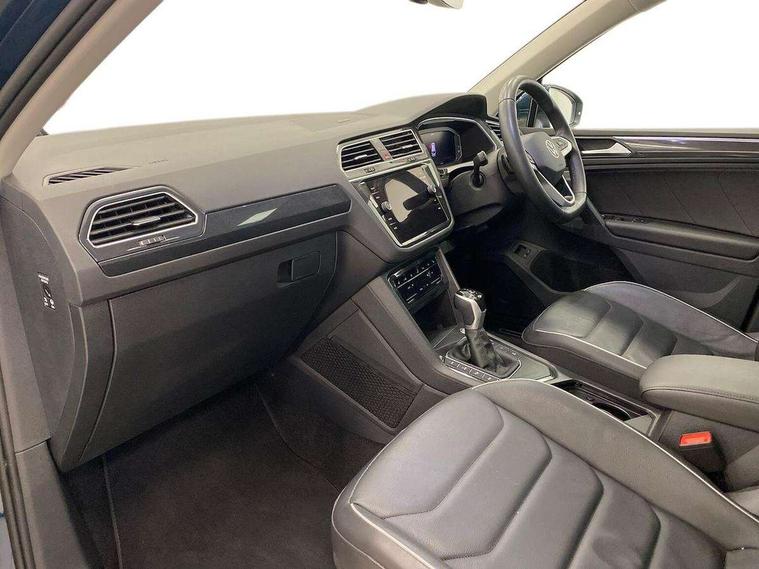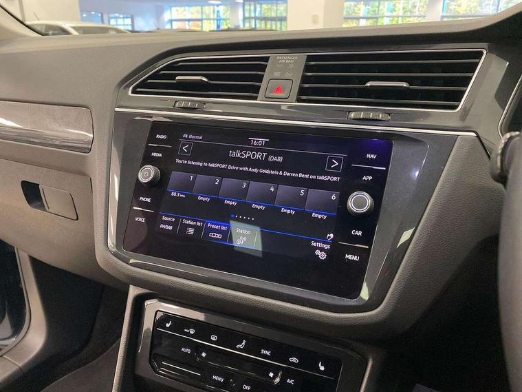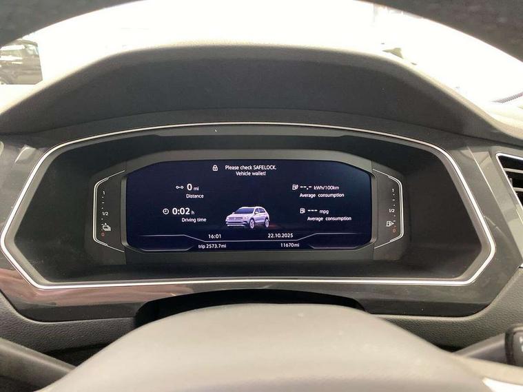 Adaptive cruise control ACC stop and go including speed limiter, App-Connect incl. App-Connect Wireless for Apple CarPlay and Android Auto, Bluetooth phone integration system, Distance control assist, Driver alert system, Driver profile selection, Dynamic road sign display, eCall emergency call system, Electromechanical speed sensitive power steering, Engine start/stop button, Lane keeping system Lane Assist, Lights on warning, Motorised electric tailgate operated via key fob, drivers door and foot movement under tailgate, Multifunction front facing camera, Outside temperature display, Premium multifunction display with multi colour display, Remote control boot opening, Rev counter, Revision / skills operating concept travel assistant, Service interval indicator, Speed limit display, Start/stop system with regenerative braking, Tailgate/trunk lid unlocking from outside, Trip computer, Warning sound and light for doors and tailgate open, Battery regeneration during braking, Charging cable Mode 3 Type 2 / 3 (16A), XDS electronic differential lock for improved traction and handling, 4 X 20 watt output, 8 Speakers, Diversity antenna for FM reception, Radio, SD card slot, Simultaneous pairing of 2 compatible mobile devices, SMS functionality - read, compose and send SMS messages using touch-screen display, Title and cover art display, USB C ports, Aluminium door sill protectors, Auto dimming interior rear view mirror, Automatic headlight control system, Body colour door handles, Body coloured bumpers, Body coloured door mirrors with integrated indicators, Coming/leaving home lighting function, Dynamic headlight range control, Front and rear electric windows, Heated rear window, High level 3rd brake light, IQ light-Adv high beam, Dynamic light assist for LED matrix headlamp+LED separate DRL+DCL, dark red rear LED tech, Poor weather light+ cornering light, Laminated safety glass windshield, heat and sound insulating, LED rear number plate lights, Privacy glass for rear side windows and rear window, Rain sensor windscreen wipers, Rear exhaust tailpipe, Rear fog lamp, Rear side wing doors, Rear windscreen washer and wiper with interval delay, Side and rear windows in heat insulating glass, Tilting and sliding panoramic sunroof with rear panoramic sunroof, Trailer Stability Programme, Windscreen wipers/ intermittent wipe + 4 position delay, 12V outlet in center console rear and in luggage compartment, 12V outlet in front and tray, 2 cup holders in front, 2 LED front reading lights, 2 LED rear reading lights, 3 bench rear seats in 2nd row, 3 rear headrests, 4 load lashing points, 40:20:40 split folding rear seats, Air Care Climatronic 3 zone automatic climate control with enhanced air filter and controls in the rear, Backrest release for left front seat, Climate control unit rear with touch function, Door and side trim panel in foam film and woven fabric, Front centre armrest, Front footwell illumination, Front seats head restraints (x-adjustment), Height adjustable front seats, Height/reach adjust steering wheel, Instrument lighting white adjustable panel illumination, Interior light with delay, Isofix Preparation 2 Rear child seats, Leather gear knob, Lockable cooled glovebox, Luggage compartment lighting, Luggage net, Rear bench seat asymetrically split folding, longitudinally movable and folding with load-through hatch and center armrest, Remote unlocking for rear seat backrest, Removable luggage cover, Removable rear headrests, Safety optimised front head restraints, Single front passenger seat, Sliding/reclining rear seats, Standard rear seat release, Storage compartment in driver's door, Storage compartment in passenger's door, Storage compartment in rear doors, Storage compartments in luggage area left and right, Storage tray on dashboard, Sun visors with illuminated vanity mirrors, Top front comfort seats, Variable boot floor, height adjustable and removable, Easy open and close pack with safelock - Tiguan, Park assist pack - Tiguan, 3 point seat belt for centre rear seats, 3 point seat belts with seat belt pretensioners for the outer rear seats, Active bonnet, Curtain airbags for front and rear passengers, Driver/Front Passenger airbags, Drivers knee airbag, Electronic parking brake with auto hold, Electronic Stability Control with driver steering recommendation, ABS, ASR, EDL, EDTC and trailer stabilization, Front assist with autonomous emergency braking (for Adaptive Cruise Control ACC up to 130 mph), Front disc brakes, Front passenger airbag deactivation, Front side airbags, Height adjustable front 3 point seatbelts + pretensioners, Hill hold control, Manual child proof rear door locks, Pedestrian monitoring system, Power assisted brakes, Proactive passenger protection system in combination with front assist, Rear disc brakes, Rigid safety cell with front and rear crumple zones, Two tone horn, Tyre pressure loss indicator, Warning sound and light for front seat belts if unfastened, Anti theft alarm system with interior monitoring, backup horn and towing protection, Anti theft wheel bolts, Central locking system with safelock radio remote control and 2 remote control folding keys, Electronic engine immobiliser, Tool kit, Tyre mobility kit Includes 12V compressor and tyre sealant,